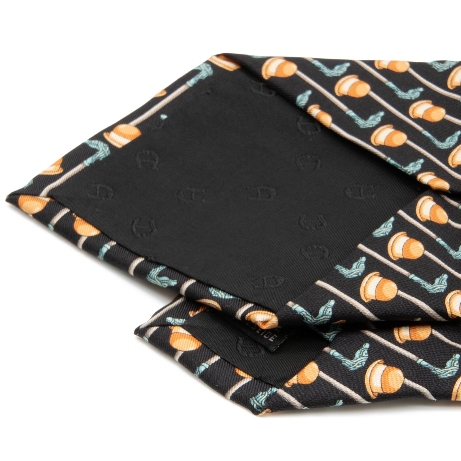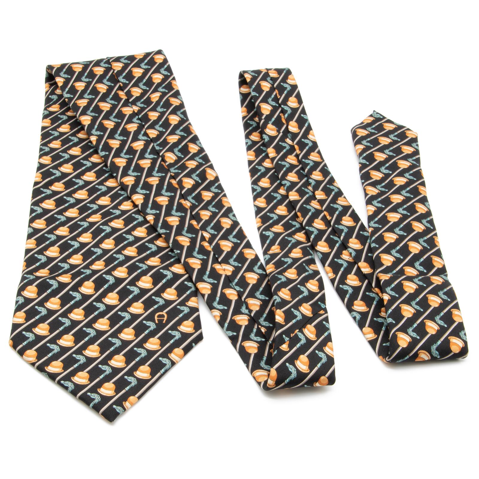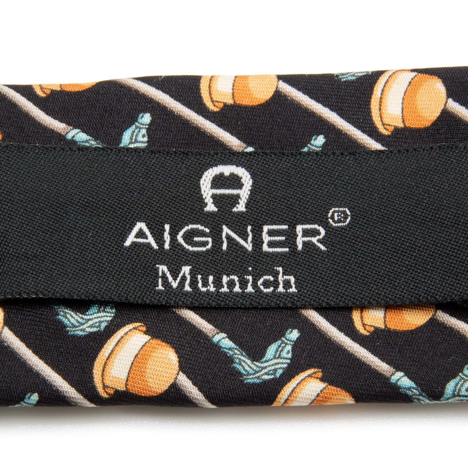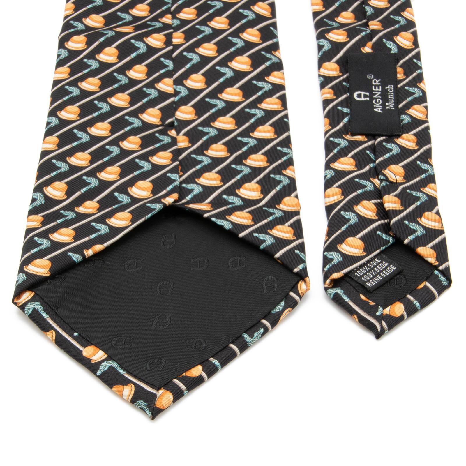 送料無料 AIGNER アイグナー ネクタイ ワイドタイ 新品 シルク 黒 水色 グレー ブランド 杖 帽子 珍しい おしゃれ イタリア製 綺麗 N003