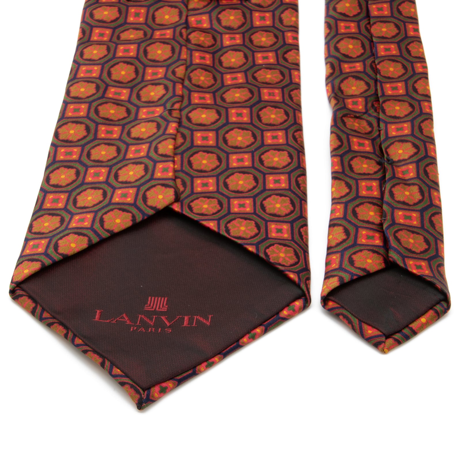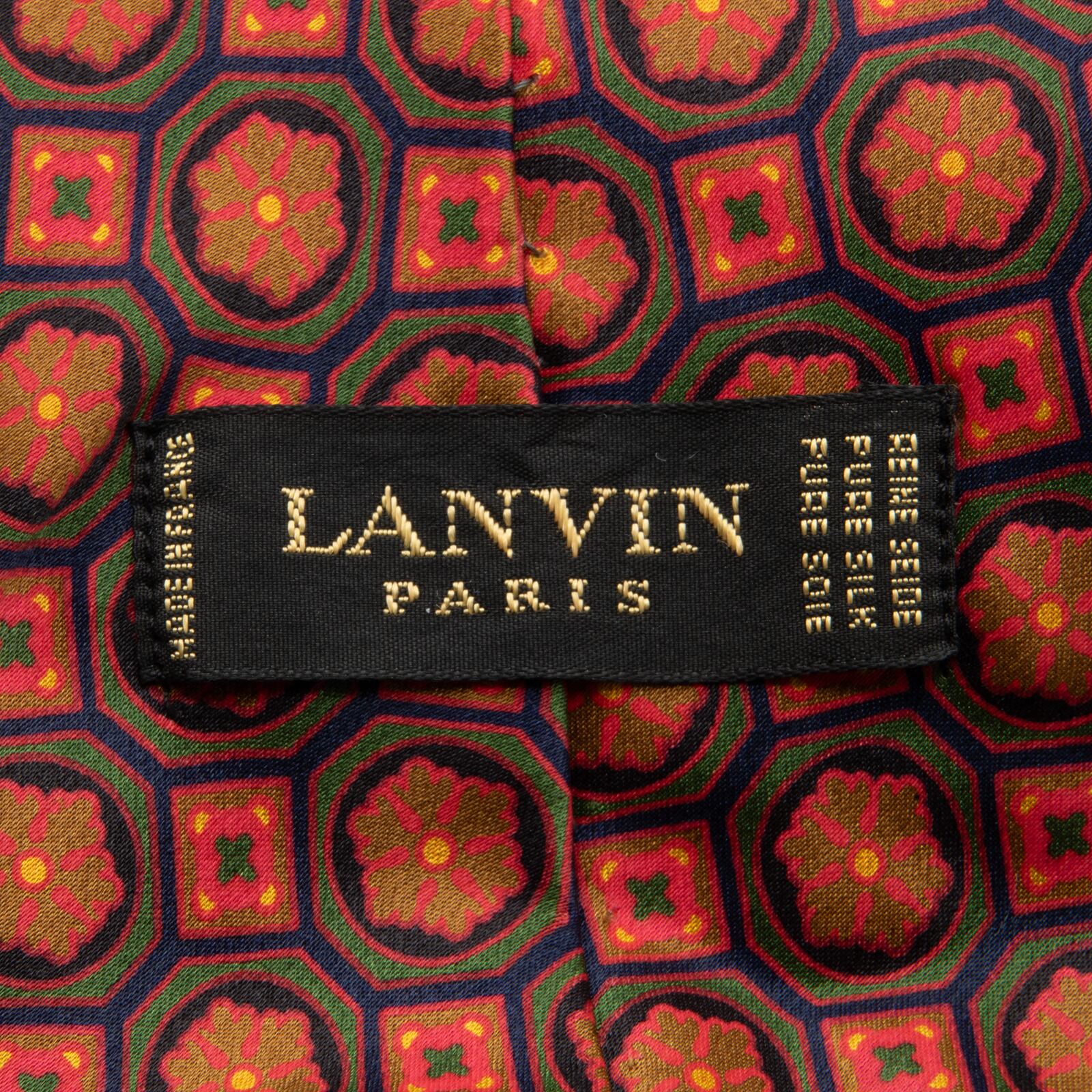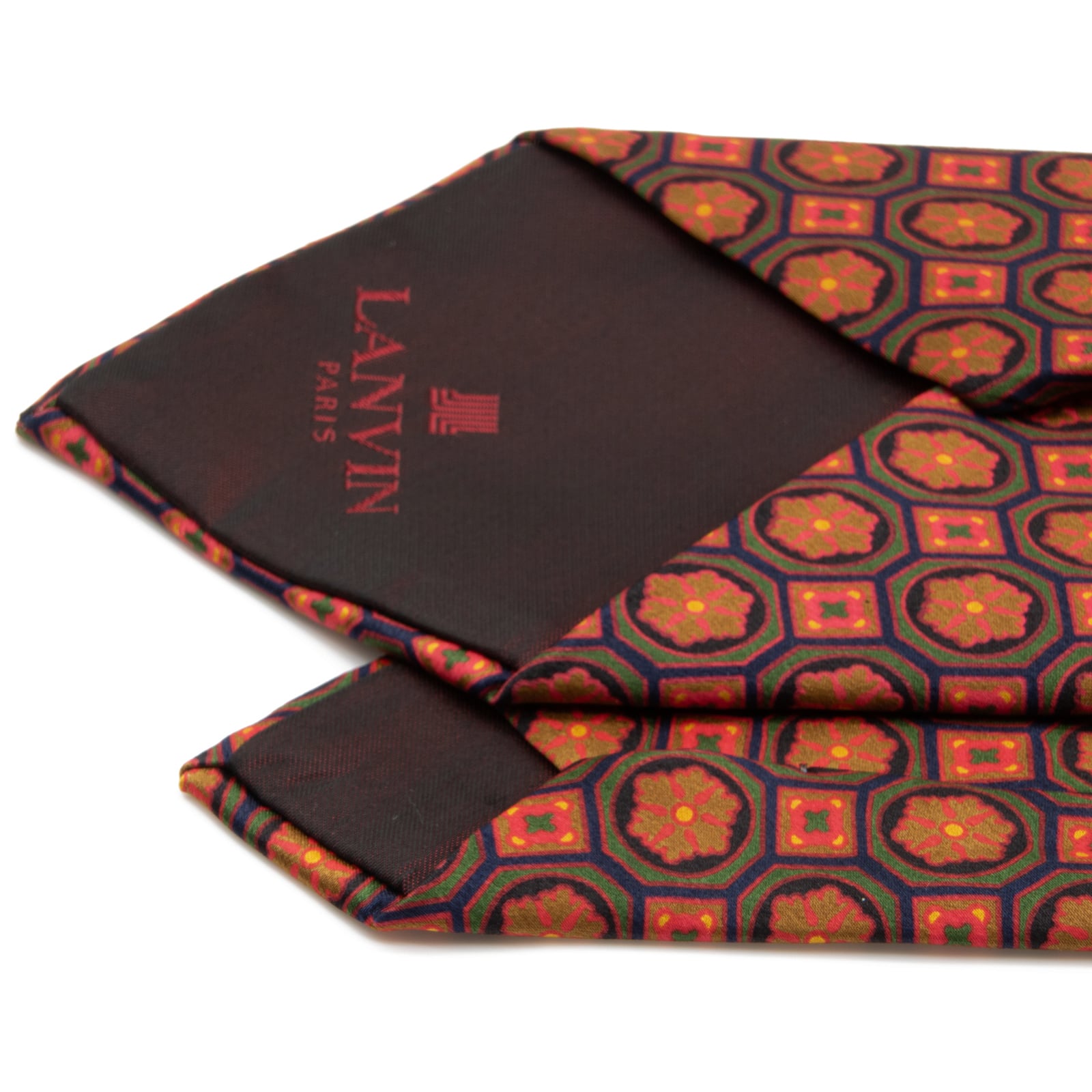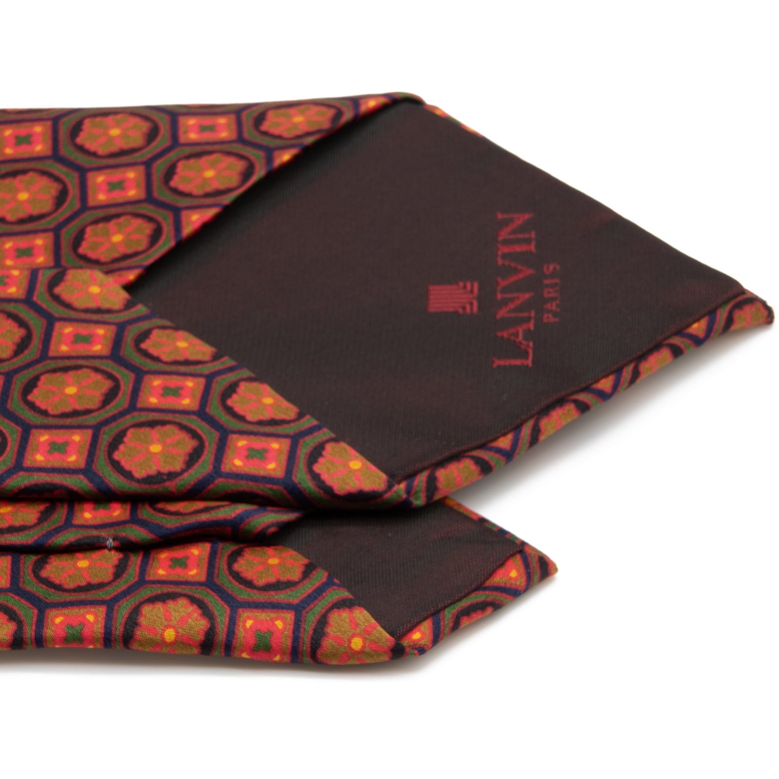 送料無料 ランバン ネクタイ 新品 シルク 赤 スカーレット ネイビーブルー 緑 ビジネス ブランド 花 フラワー 珍しい フランス製 綺麗 N004
