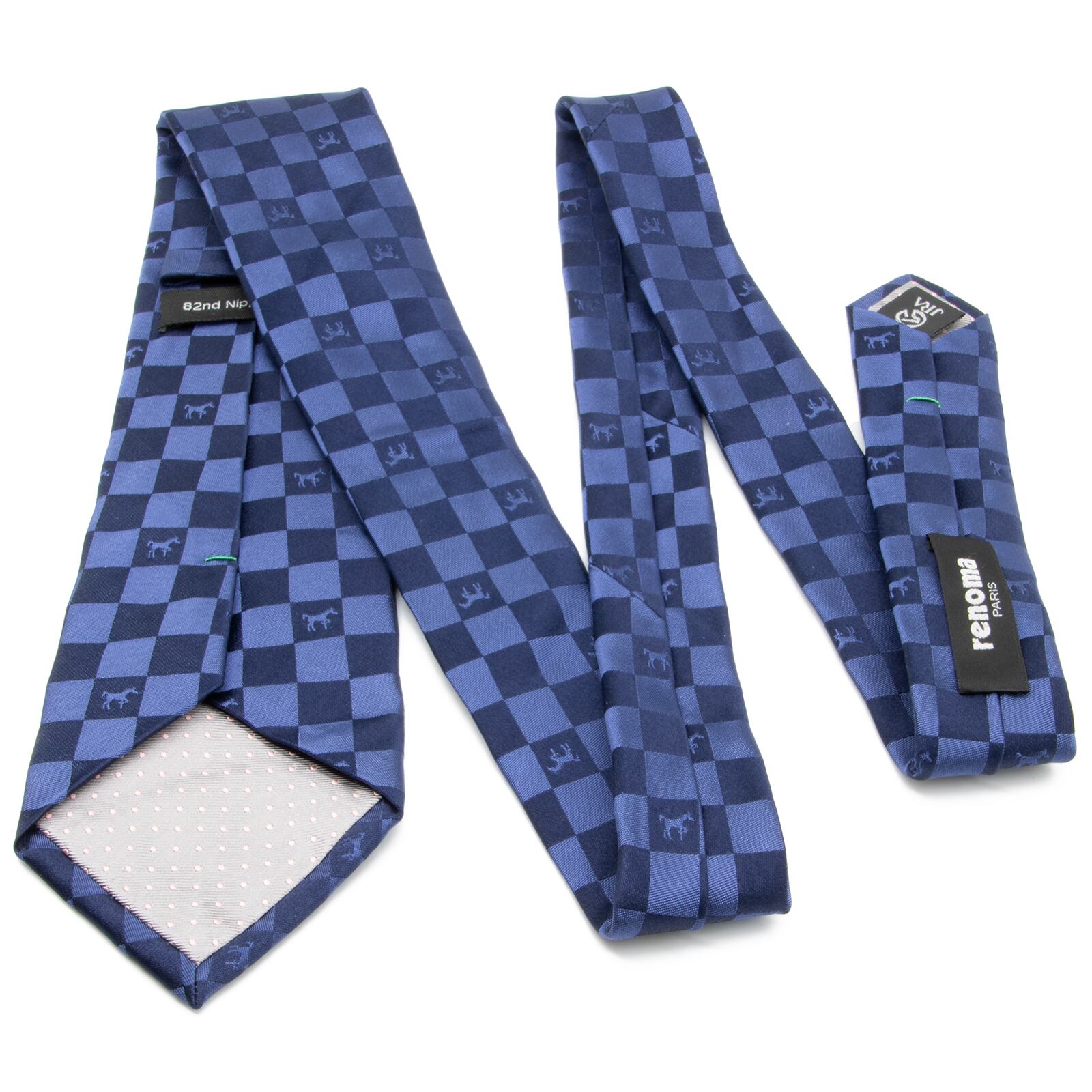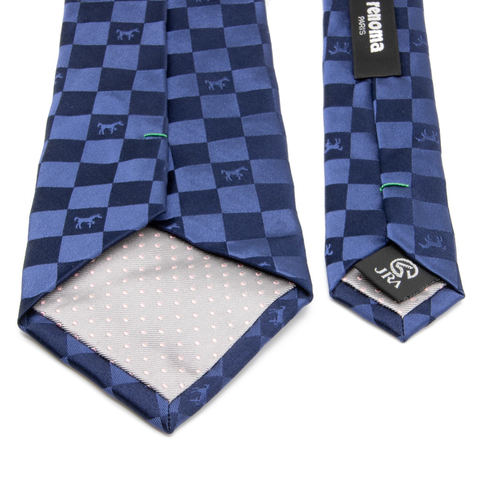 送料無料 レノマ ネクタイ ジャガードタイ 新品 シルク 青 ビジネス ブランド JRA 日本ダービー 馬 ホース 四角 マーク 珍しい 綺麗 N082