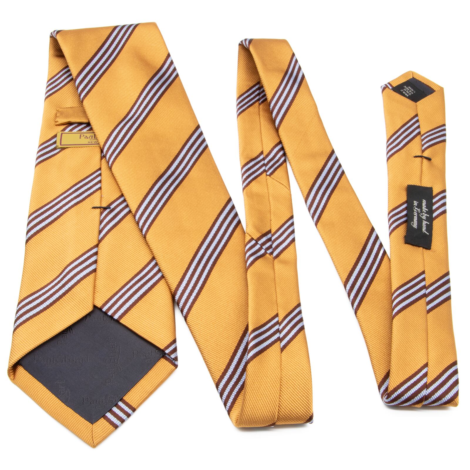 送料無料 ポールスチュアート ネクタイ 新品 ジャガードタイ オーカー 茶色 水色 ビジネス ブランド ストライプ シンプル ドイツ製 N593