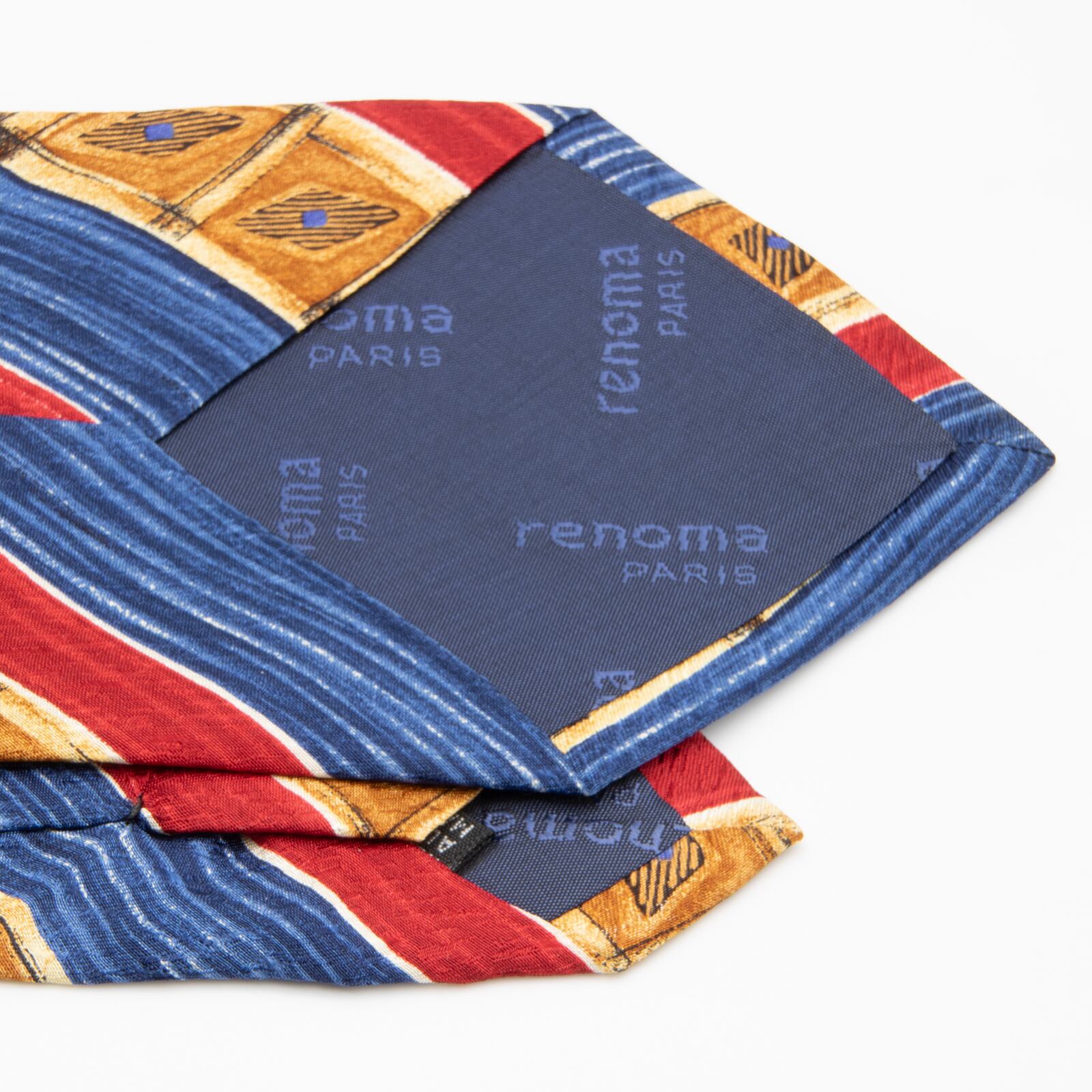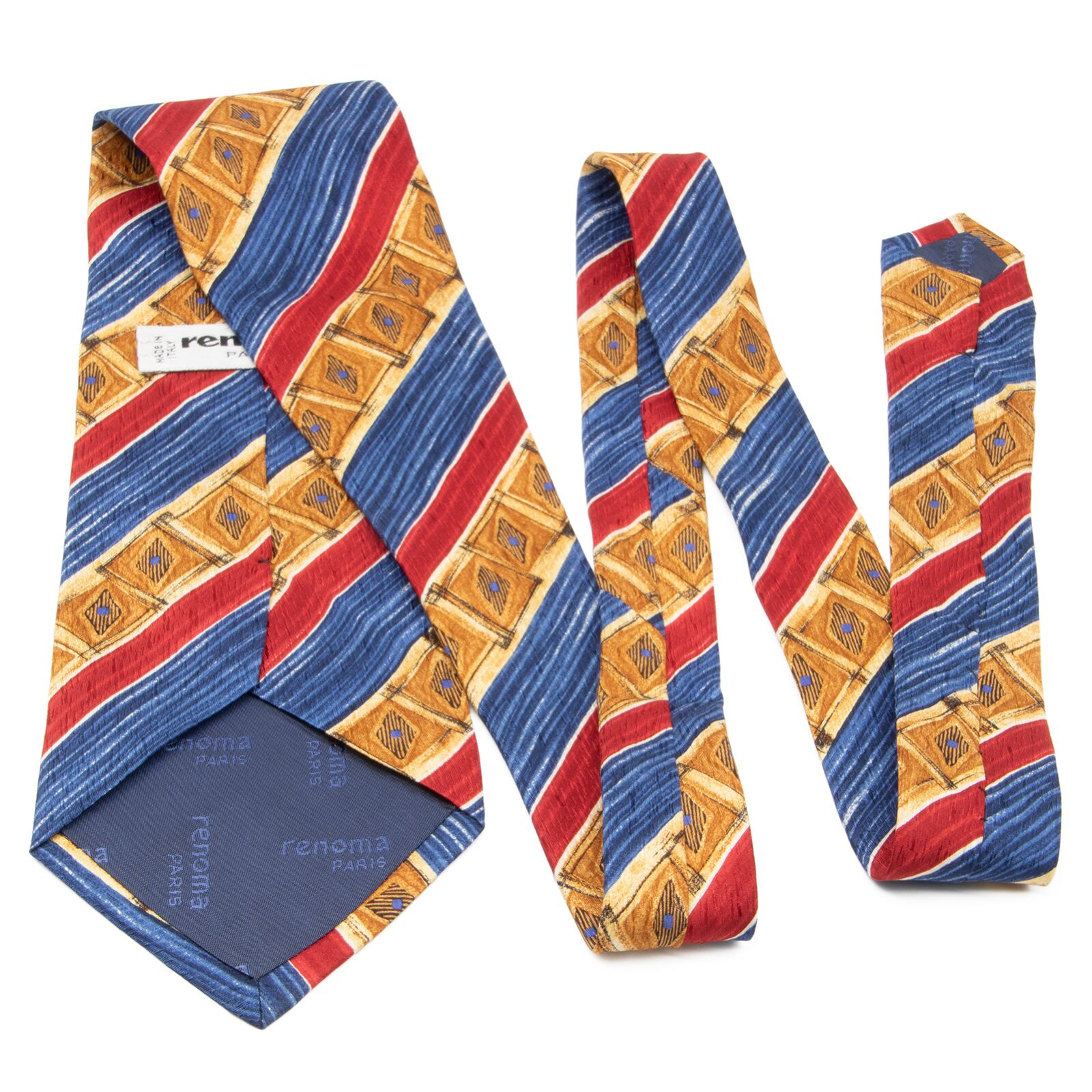 送料無料 レノマ ネクタイ 新品 ワイドタイ シルク 青 ブルー 赤 レッド 黄色 珍しい パターンストライプ ブランド イタリア製 綺麗 N664