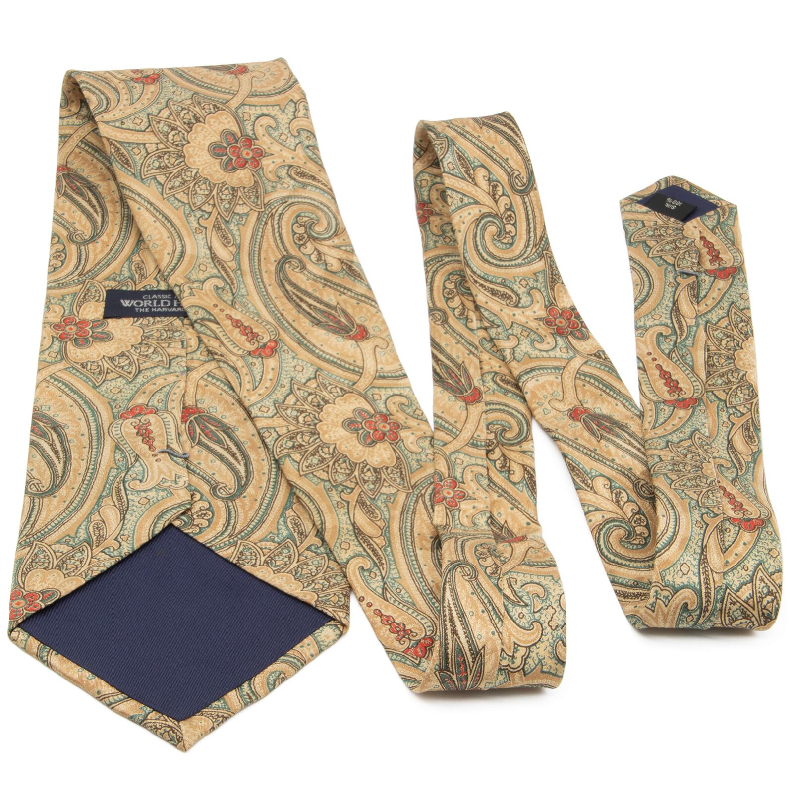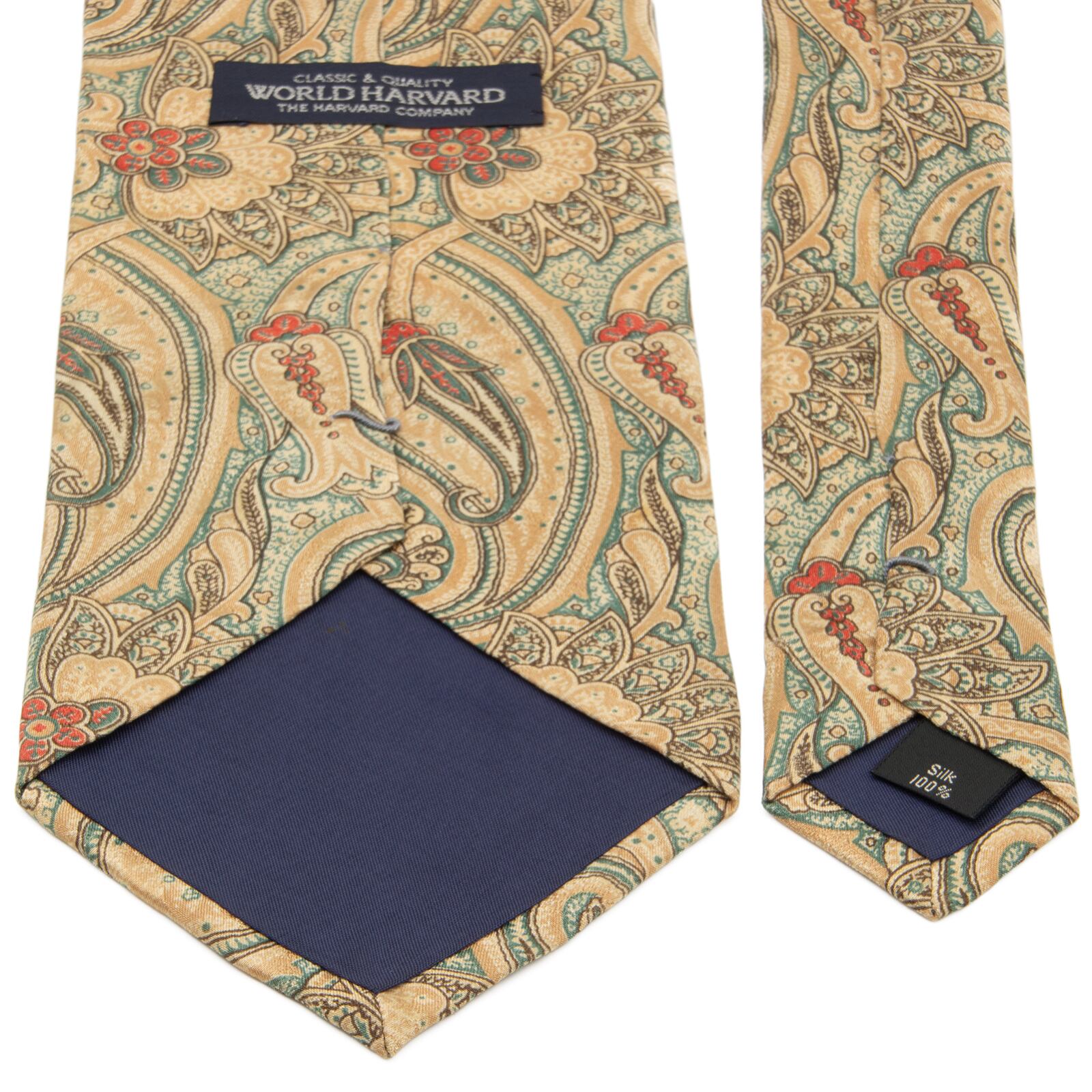 送料無料 ワールドハーバード ネクタイ 新品 ワイドタイ シルク 黄色 ブロンド 青緑色 赤 レッド ペイズリー 珍しい 花 ブランド 綺麗 N666