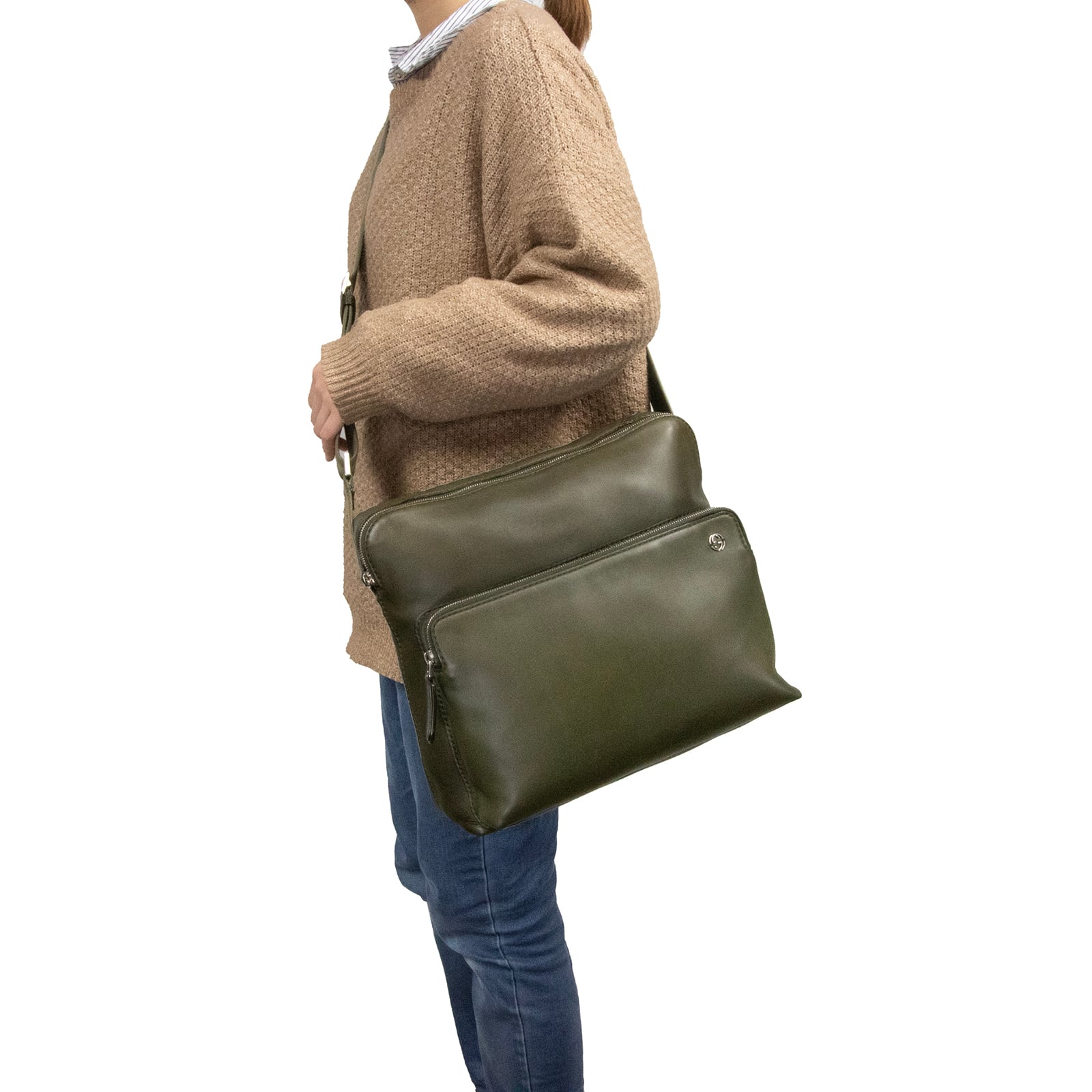 本物 送料無料 グッチ ショルダーバッグ メッセンジャーバッグ メンズ レディース 緑 珍しい 斜め掛け GGロゴ 本革 レザー 鞄 バック L165