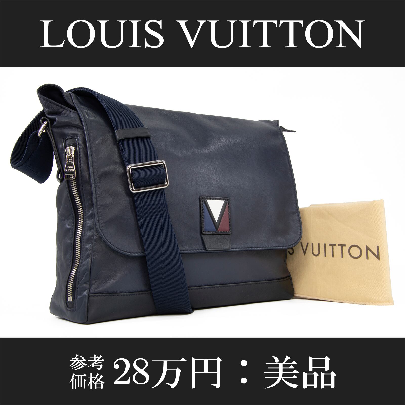 本物 送料無料 ヴィトン ショルダーバッグ メンズ レディース Vライン 青 ネイビーブルー 斜め掛け ロゴ マーク 革 レザー 鞄 バック L167