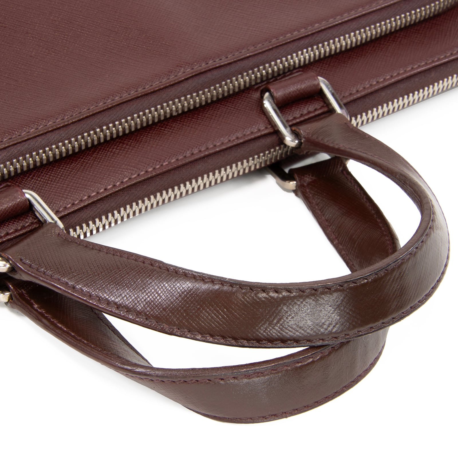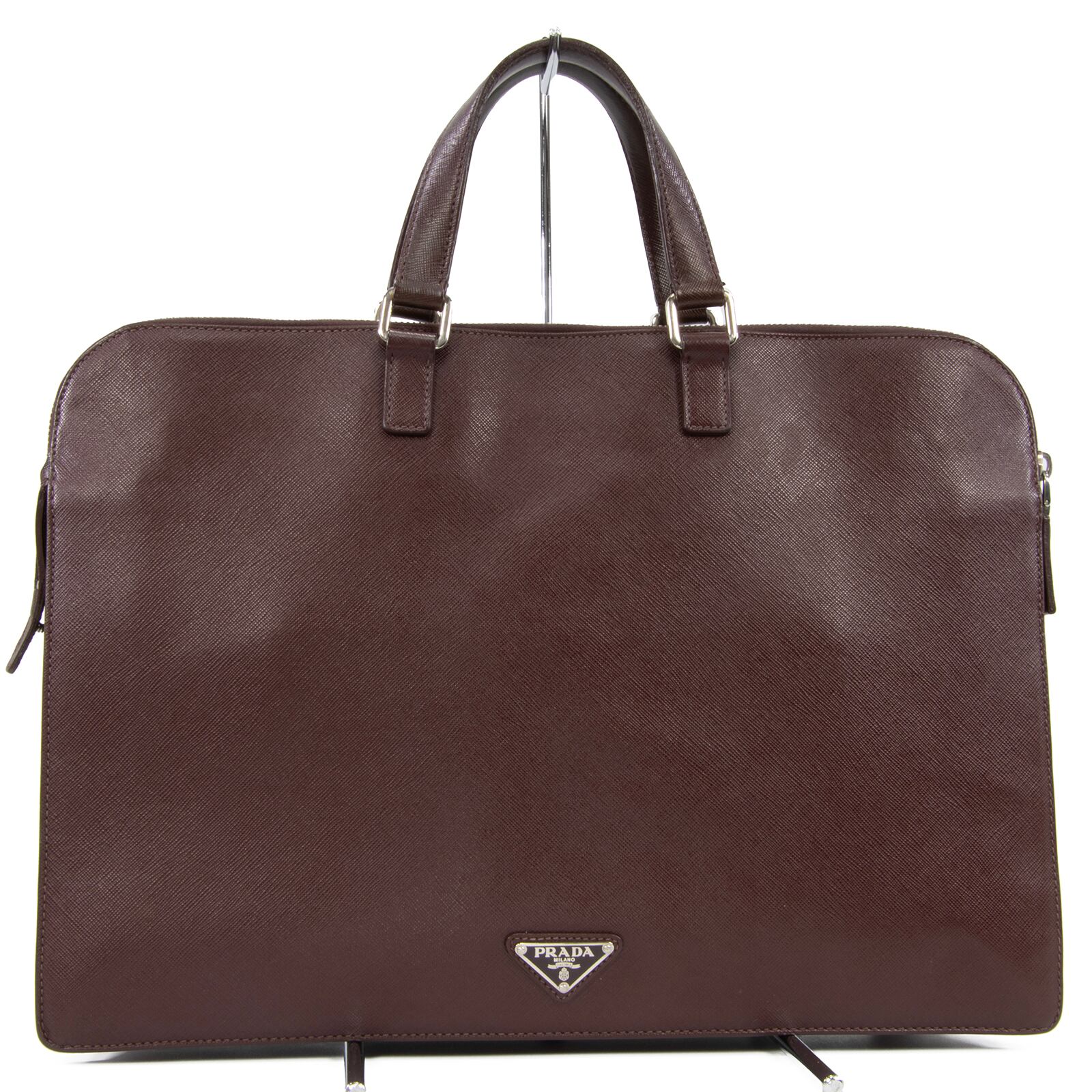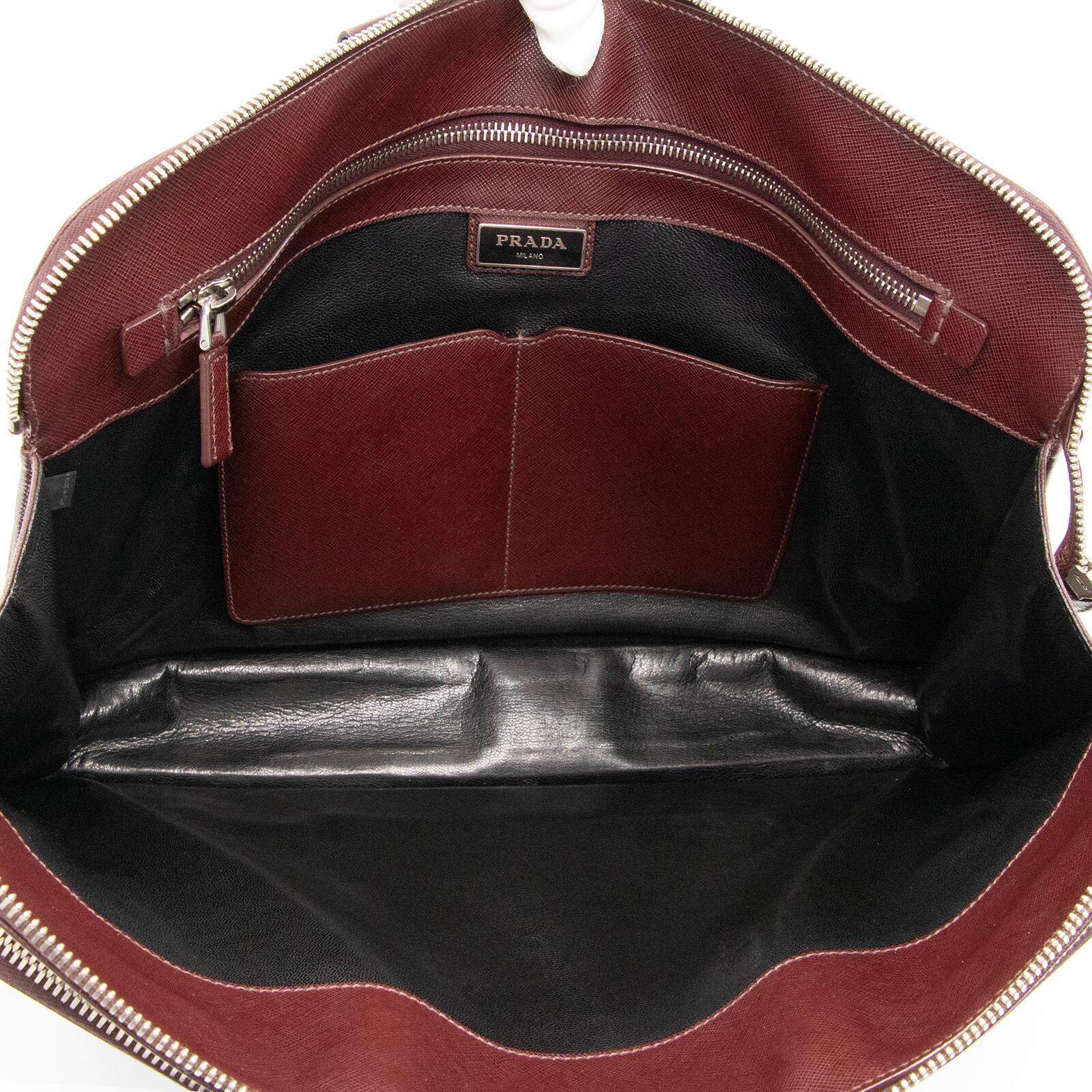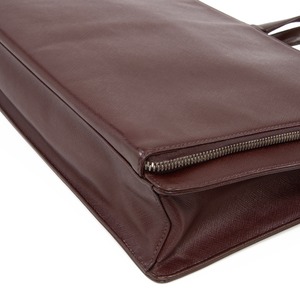 本物 送料無料 プラダ ハンドバッグ ビジネスバッグ メンズ サフィアーノレザー ボルドー 珍しい 自立可能 ロゴ 革 レザー 鞄 バック E381