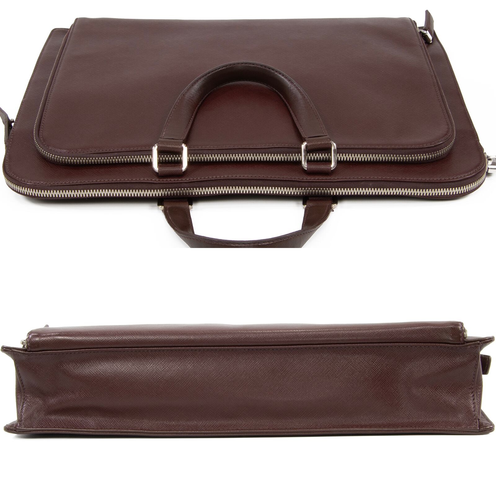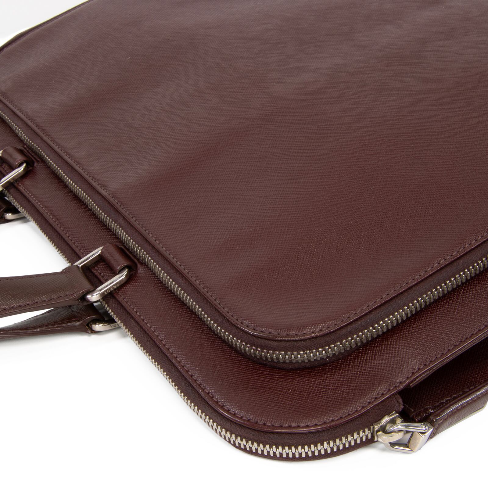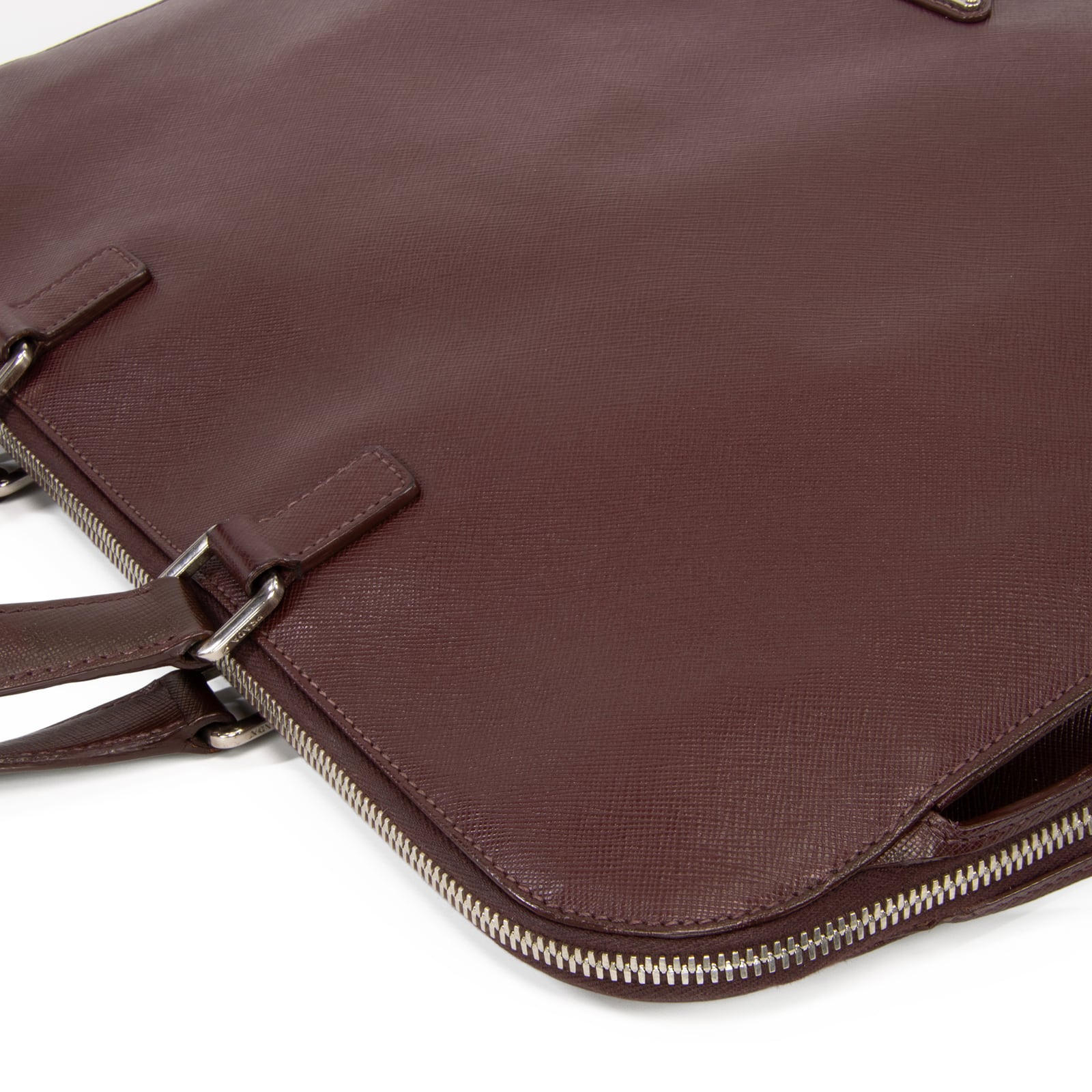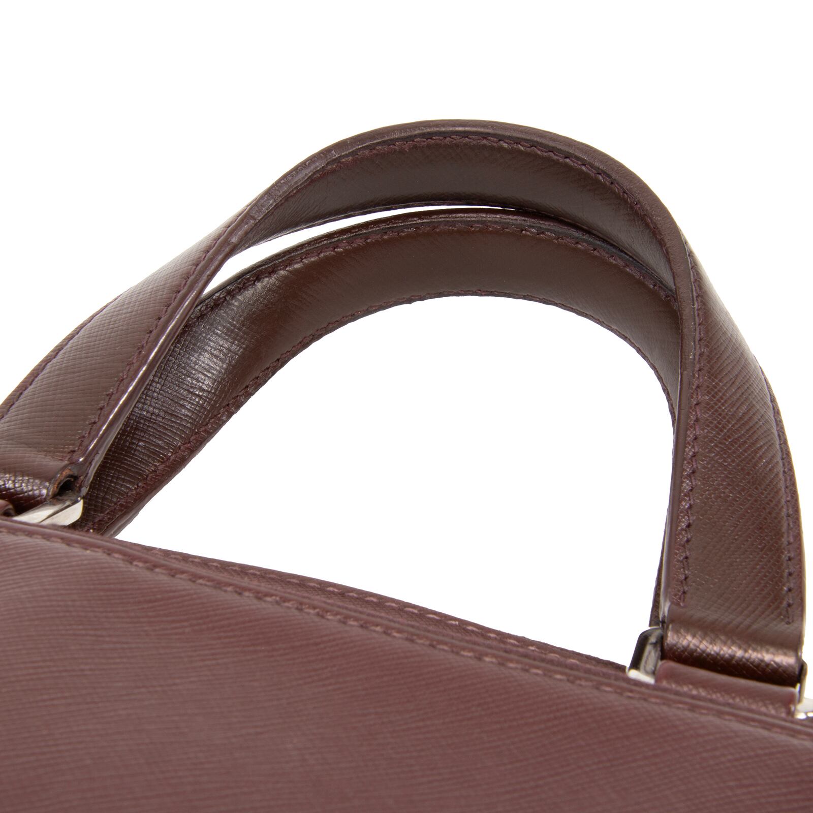 本物 送料無料 プラダ ハンドバッグ ビジネスバッグ メンズ サフィアーノレザー ボルドー 珍しい 自立可能 ロゴ 革 レザー 鞄 バック E381