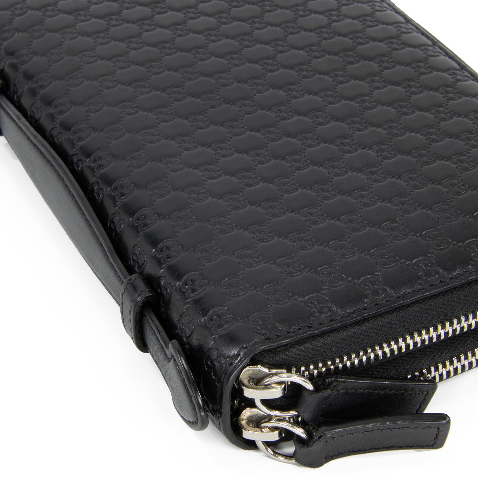 本物 送料無料 グッチ 長財布 ダブルファスナー メンズ レディース マイクログッチシマ 黒 人気 GGロゴ マーク 大容量 本革 レザー C210