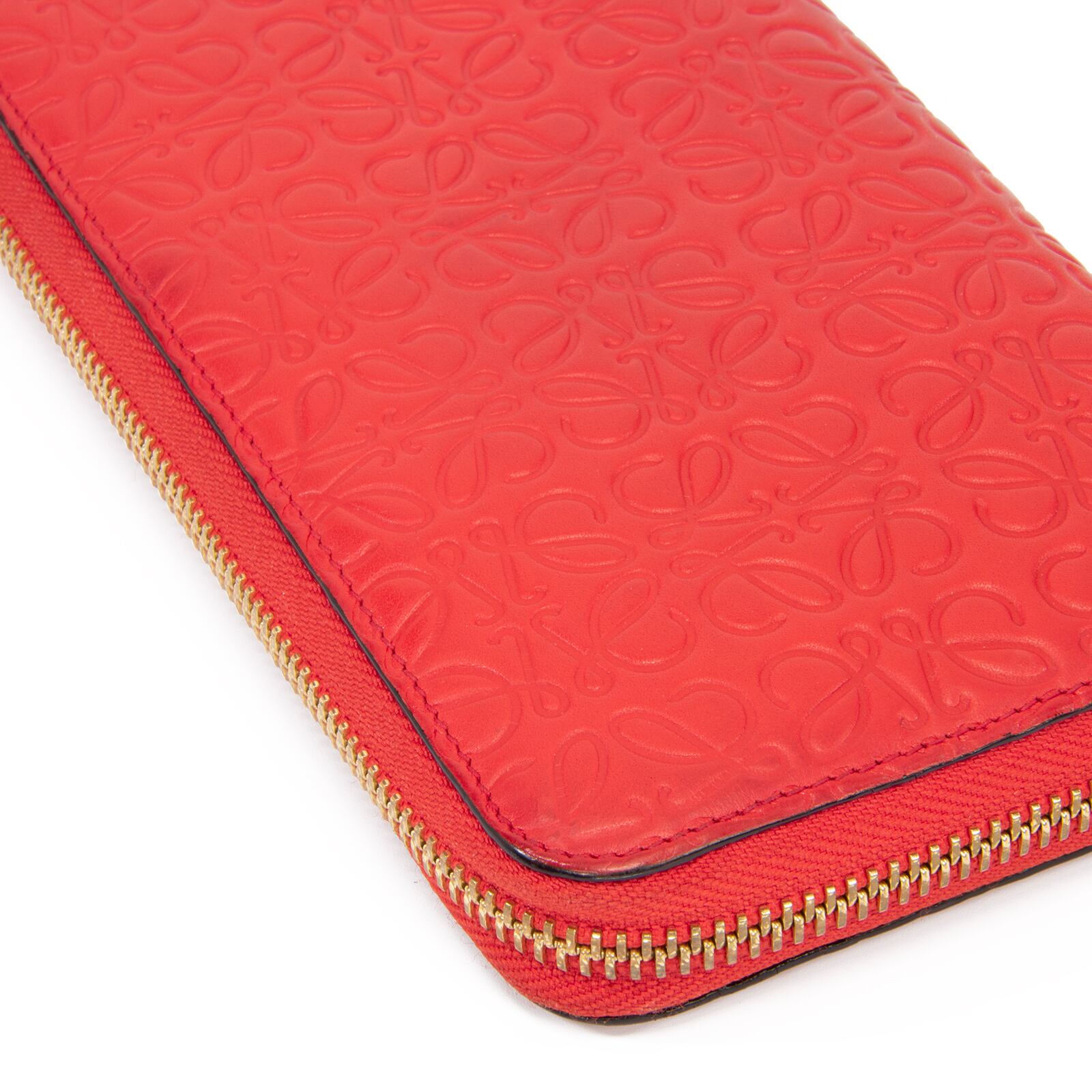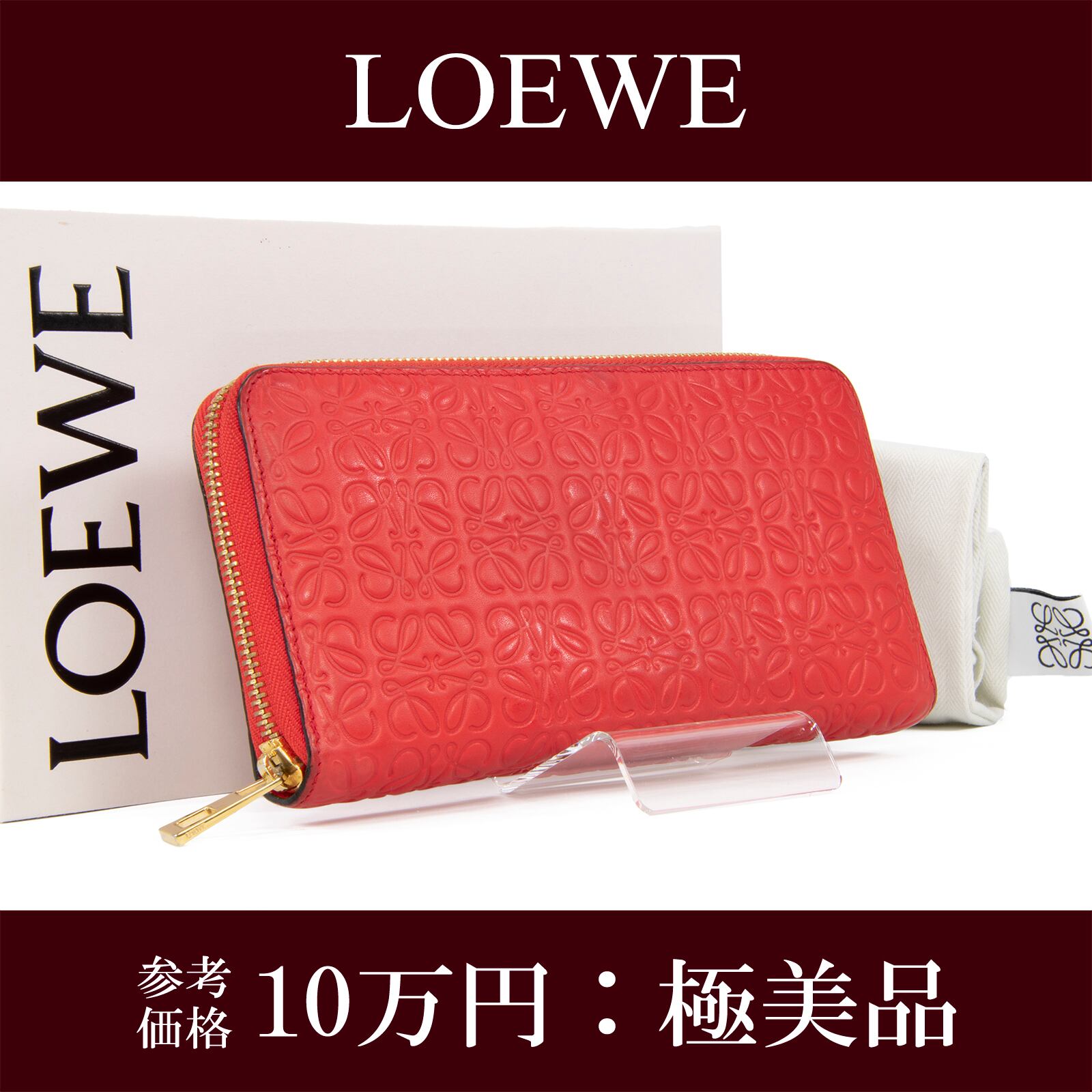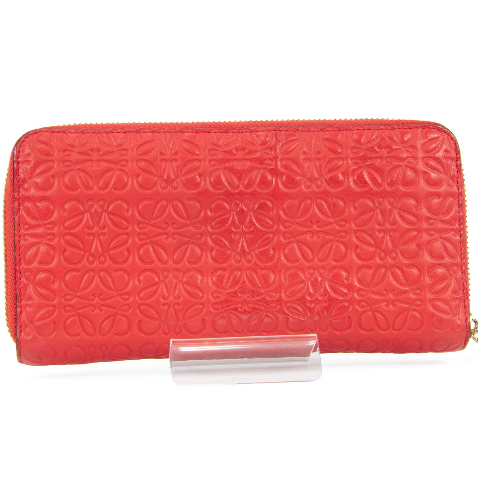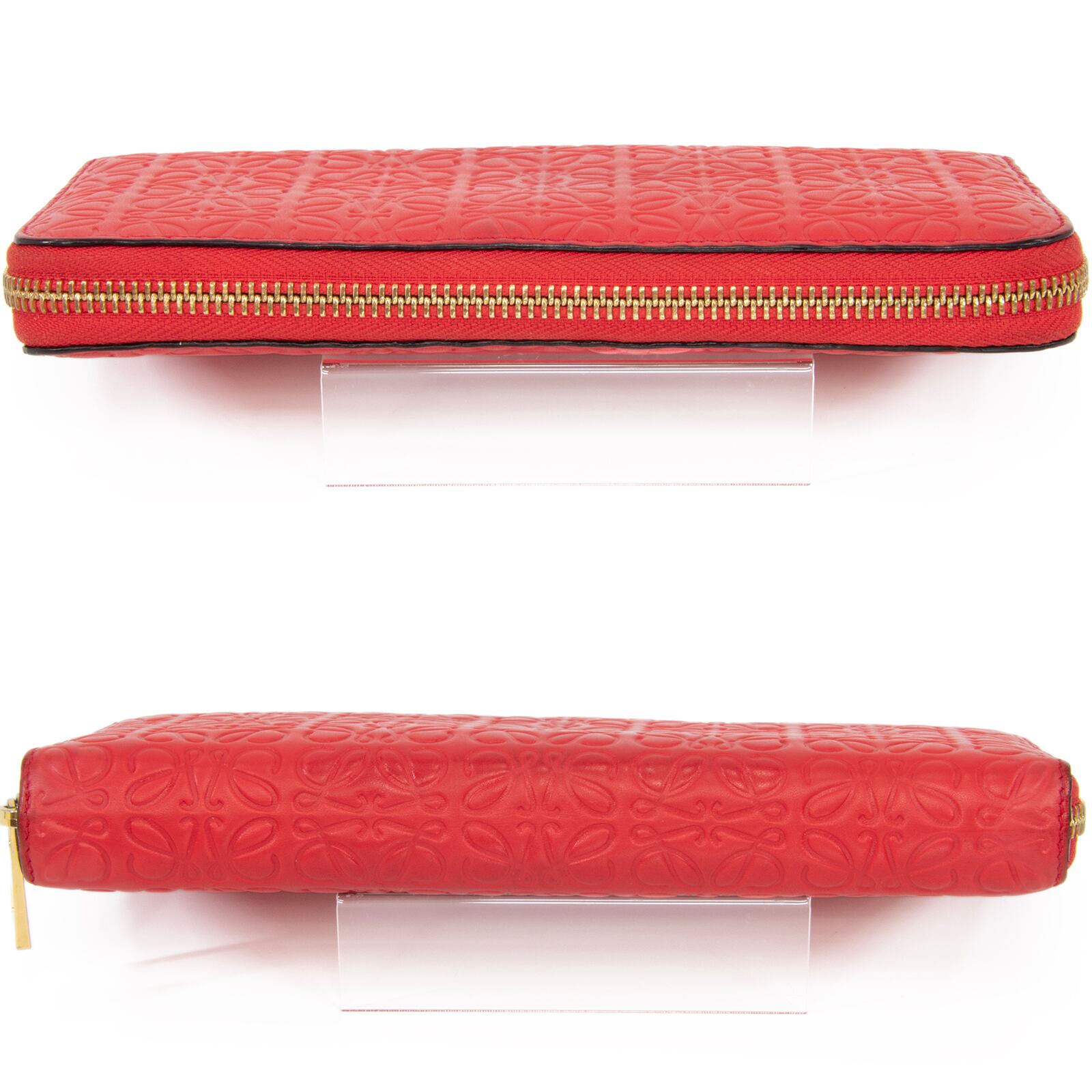 本物 送料無料 ロエベ 長財布 ラウンドファスナー メンズ レディース リピート 赤 レッド 人気 アナグラム ロゴ マーク 本革 レザー H070