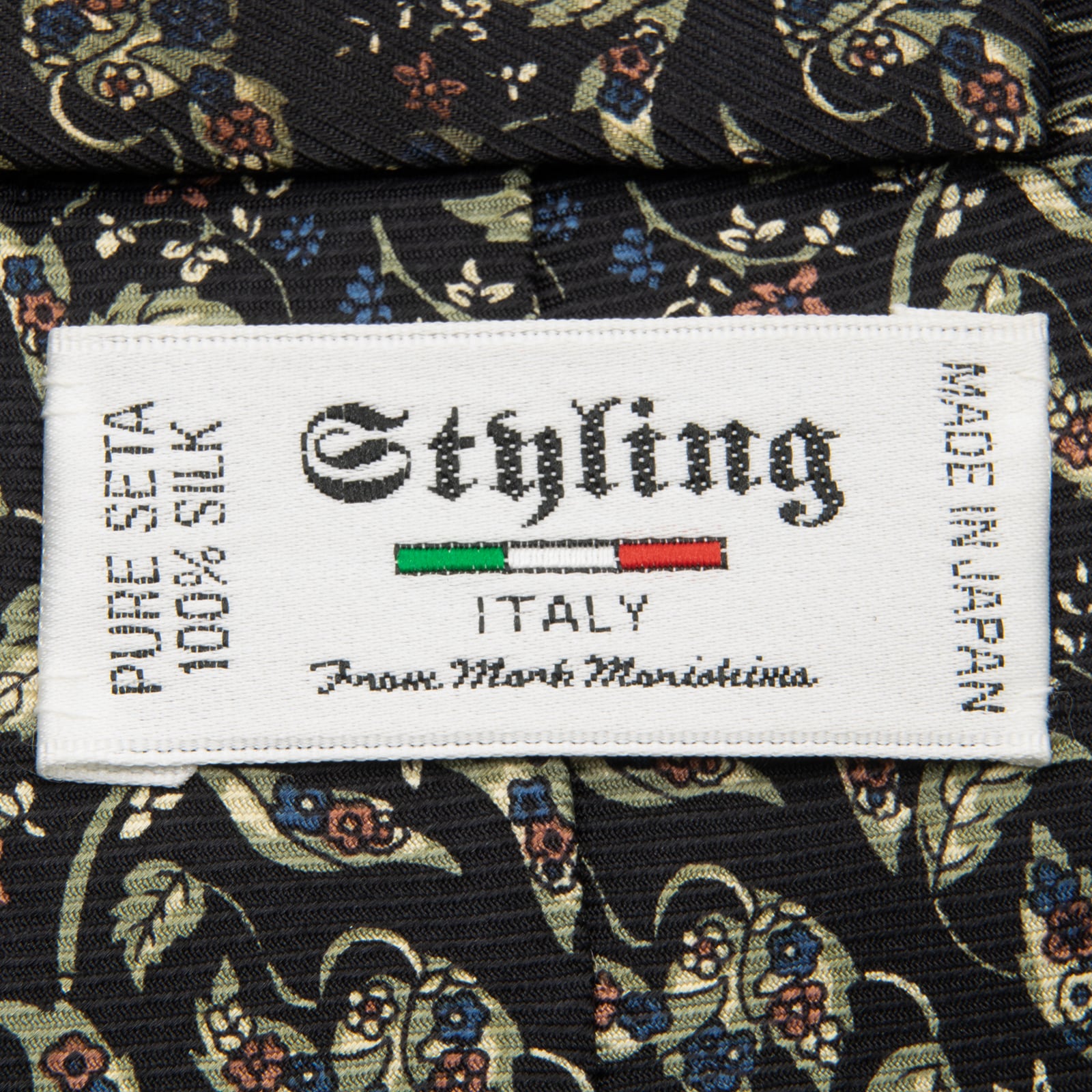 送料無料 エスリング ネクタイ 新品 シルク 黒 緑 アイボリー ネイビーブルー 総柄 花 フラワー 植物 ブランド 珍しい おしゃれ 綺麗 N541