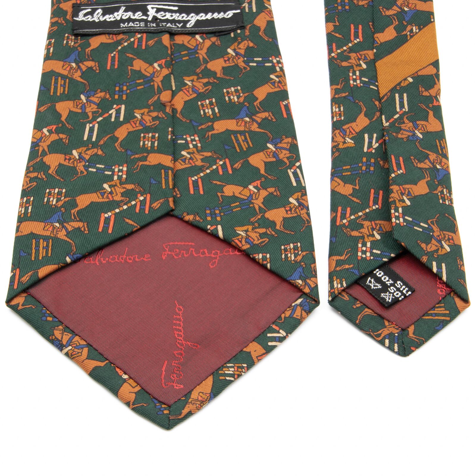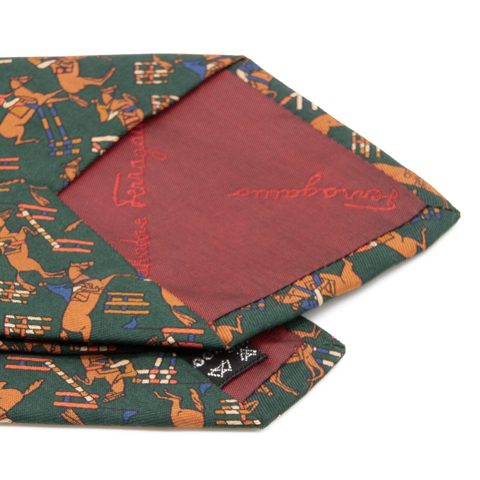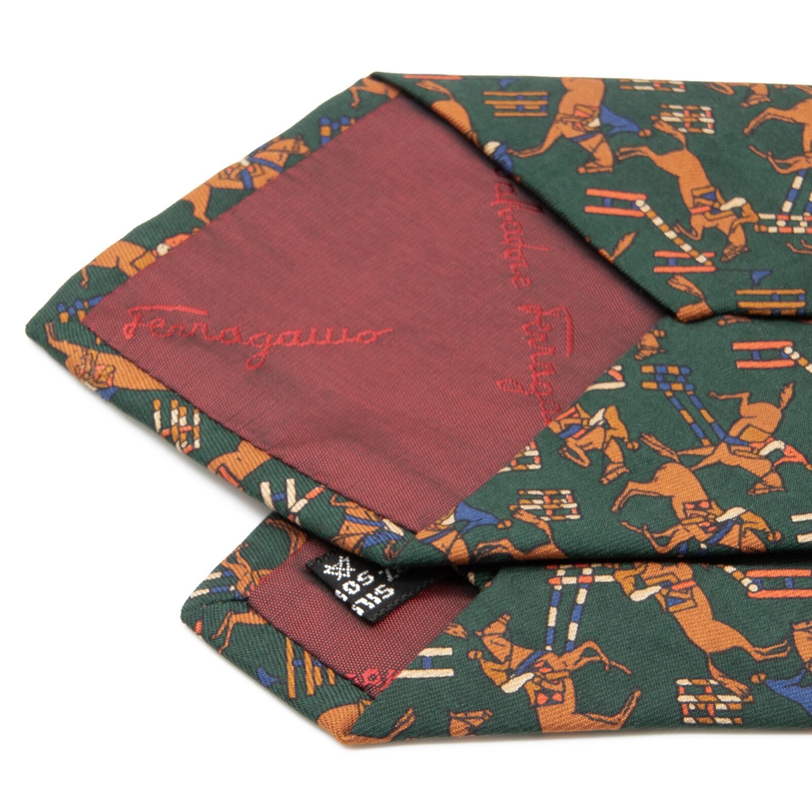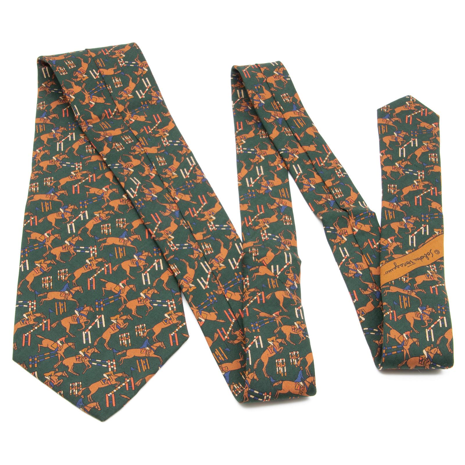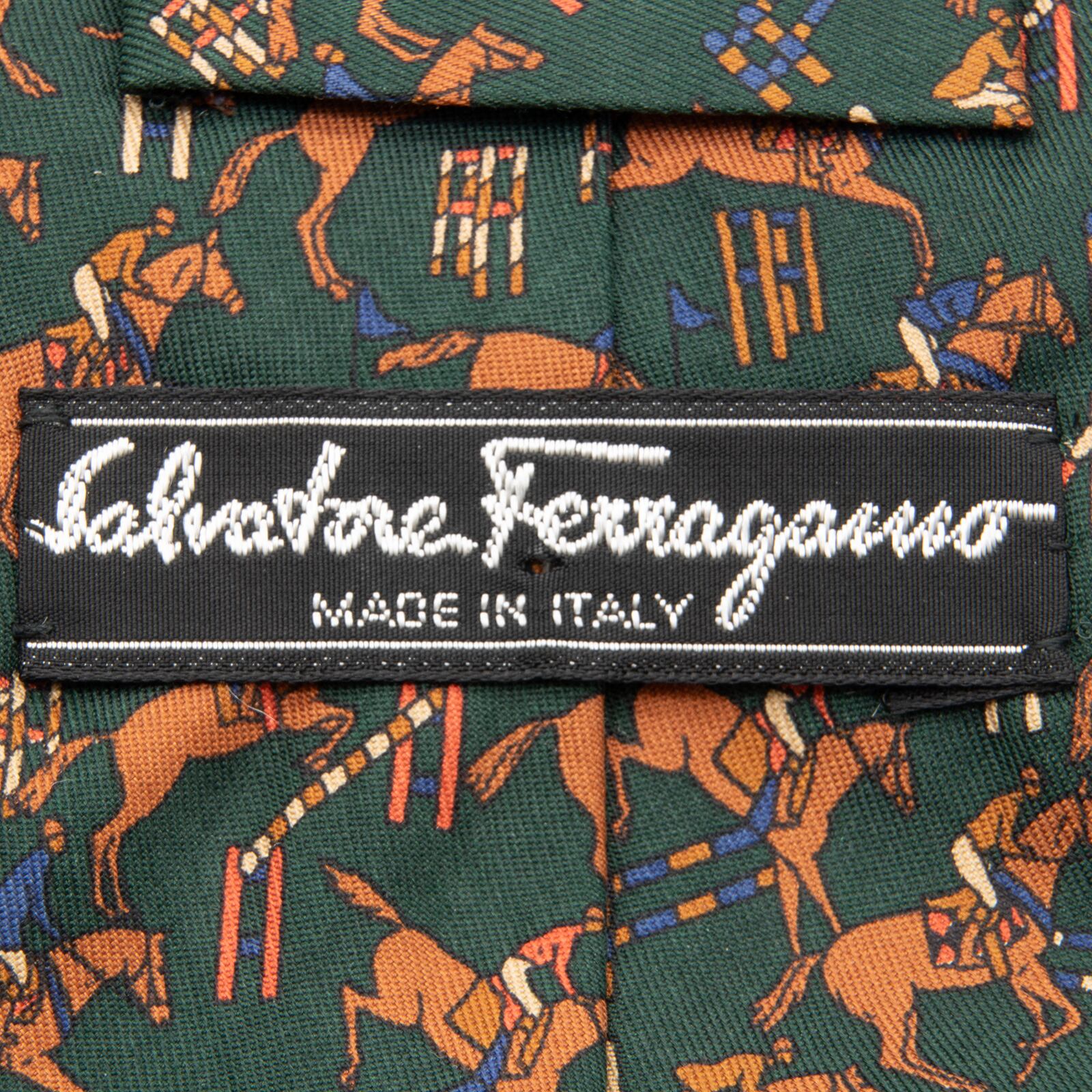 送料無料 フェラガモ ネクタイ 新品 グリーン ブラウン ブルー レッド アイボリー 珍しい 乗馬 ホース アニマル 総柄 イタリア製 綺麗 N570