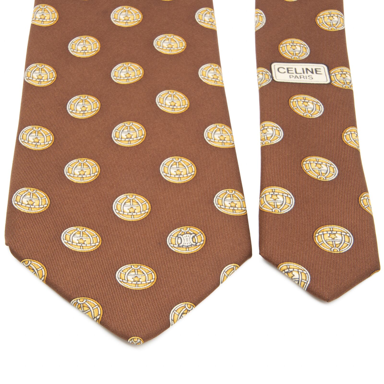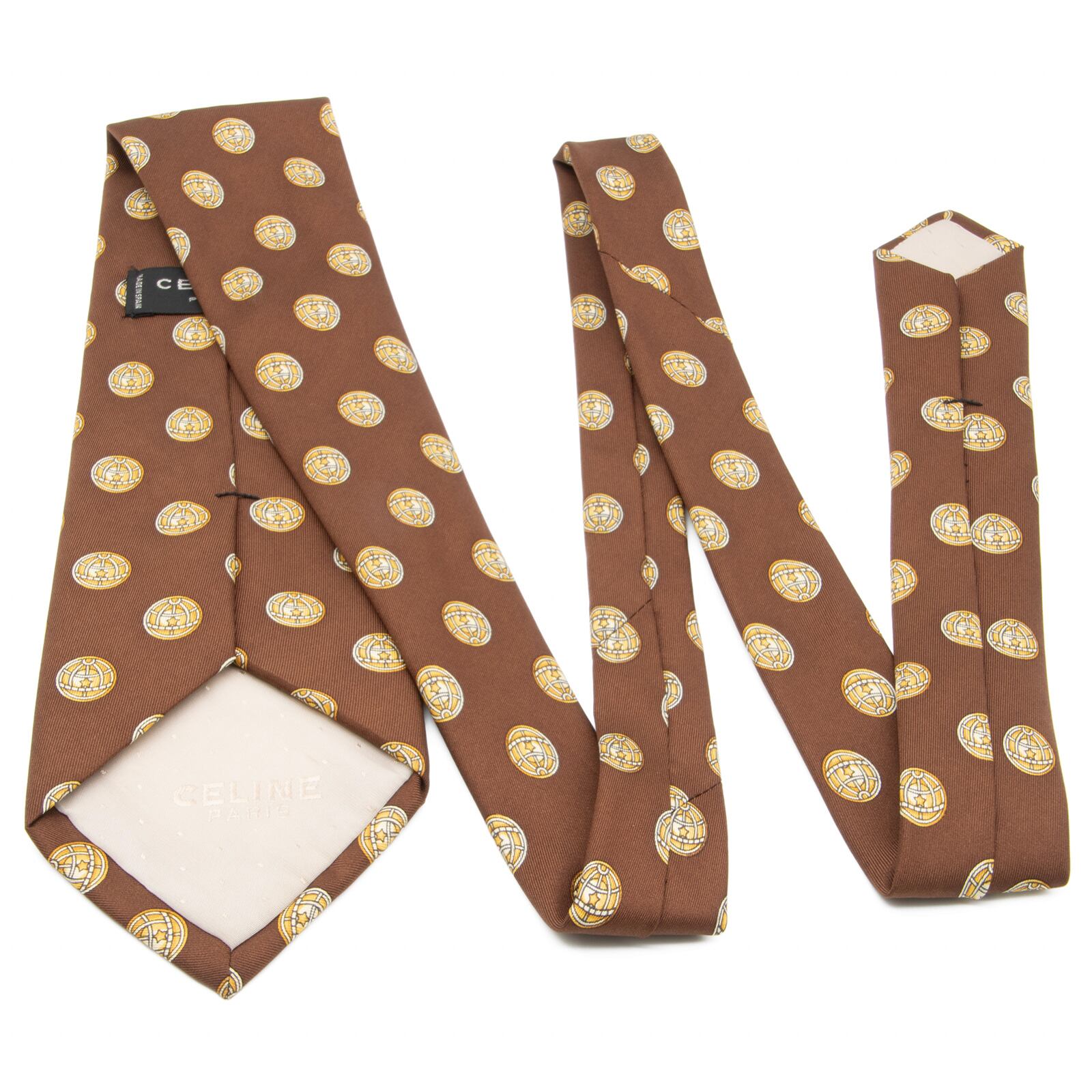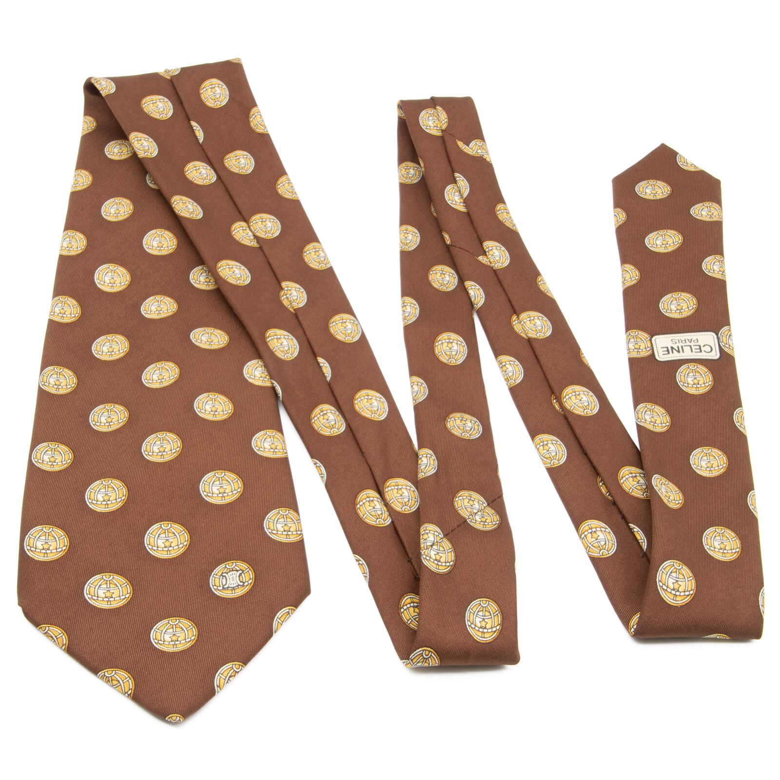 送料無料 セリーヌ ネクタイ シルク ブラウン ホワイト 黄色 珍しい マカダム ブラゾン ロゴ マーク 星 スター 総柄 ブランド 綺麗 N575