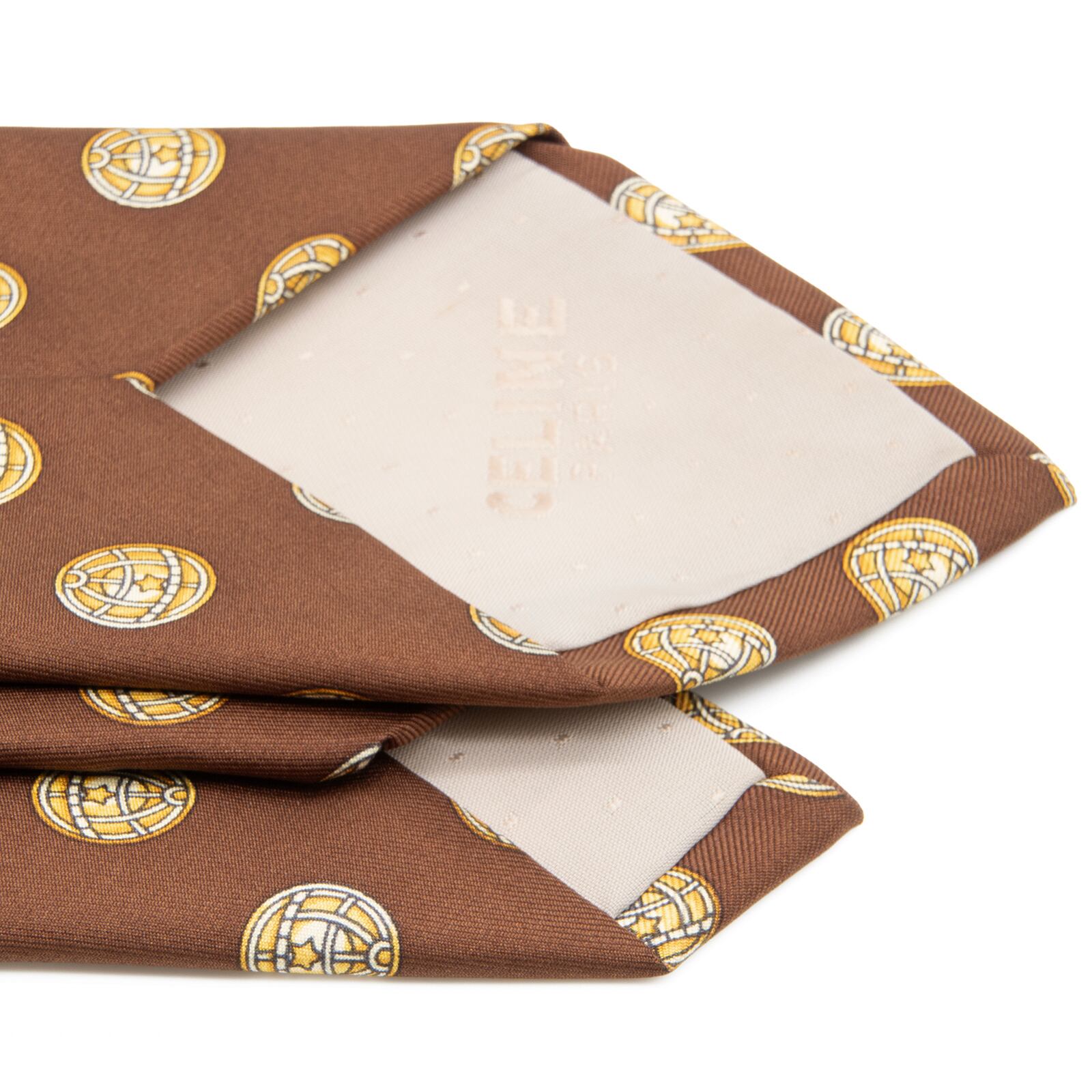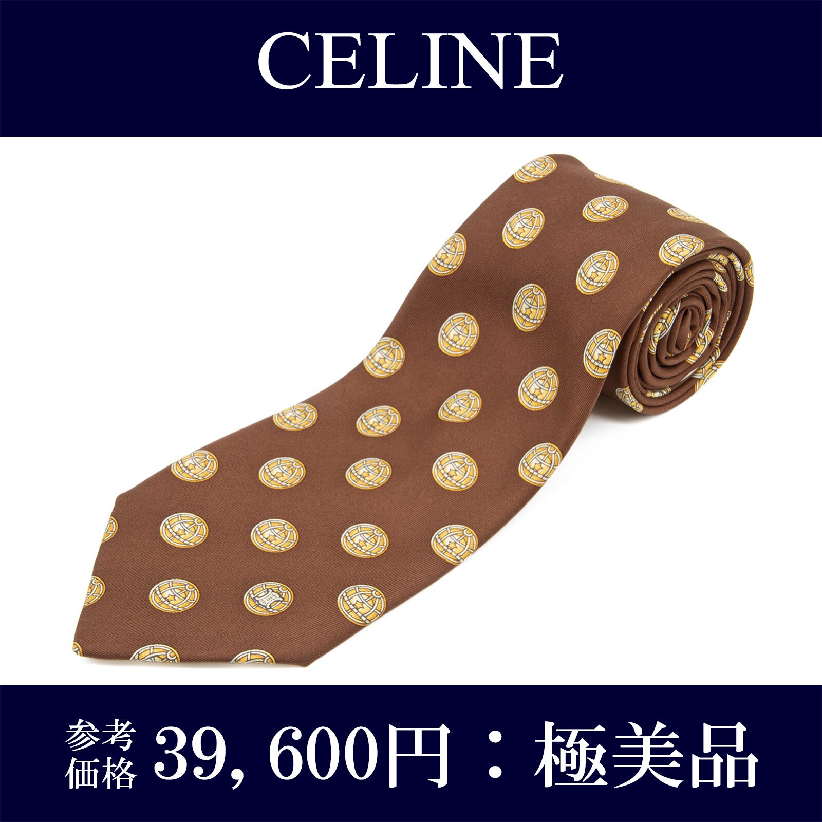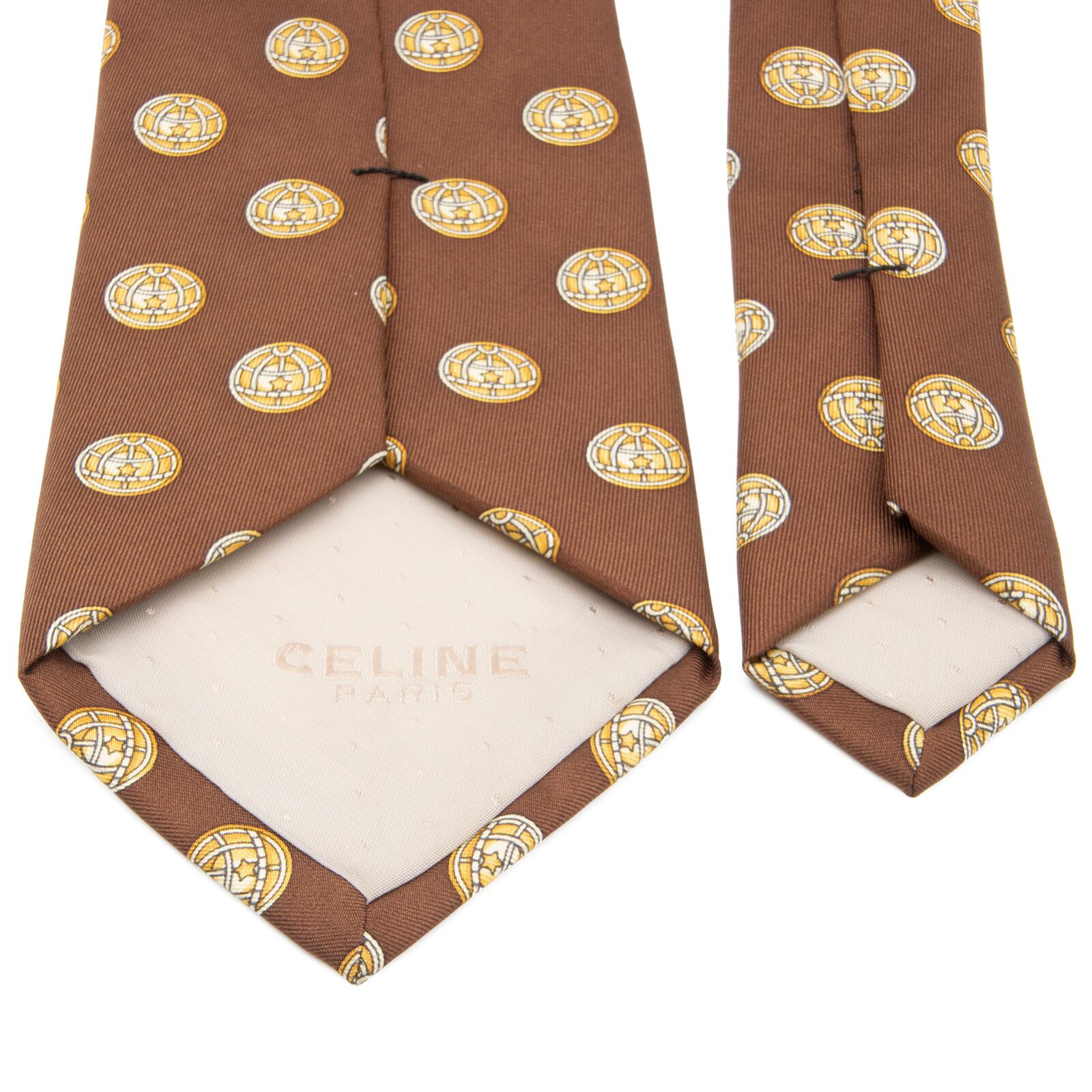 送料無料 セリーヌ ネクタイ シルク ブラウン ホワイト 黄色 珍しい マカダム ブラゾン ロゴ マーク 星 スター 総柄 ブランド 綺麗 N575