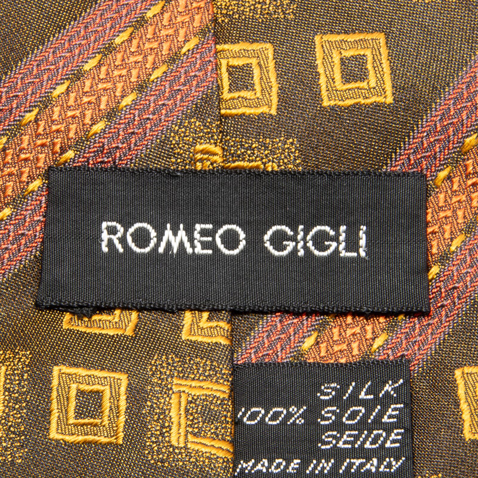 送料無料 ロメオジリ ネクタイ 新品 ジャガードタイ オーカー イエロー 赤 オレンジ ブランド ストライプ 四角 光沢 イタリア製 綺麗 N547