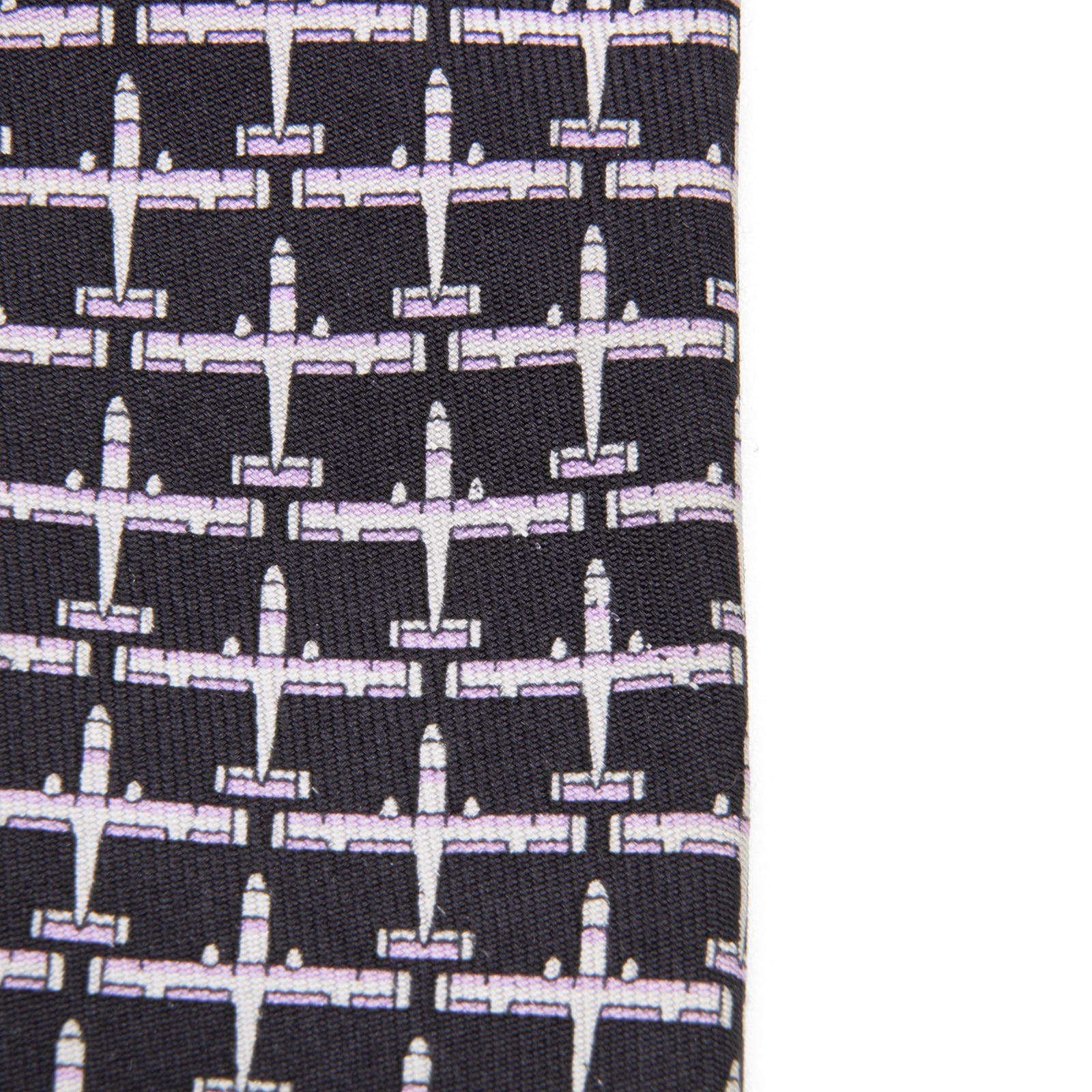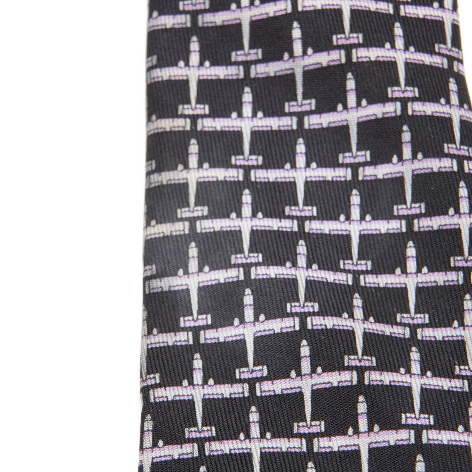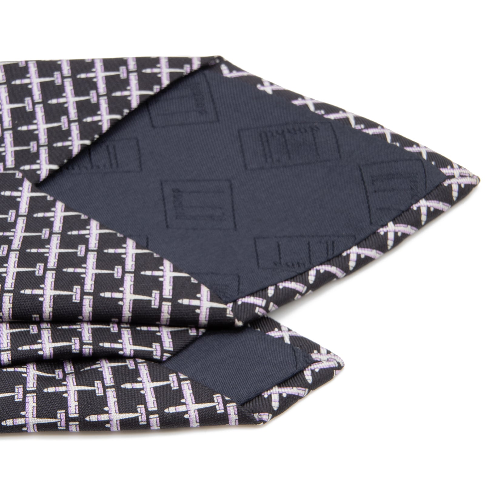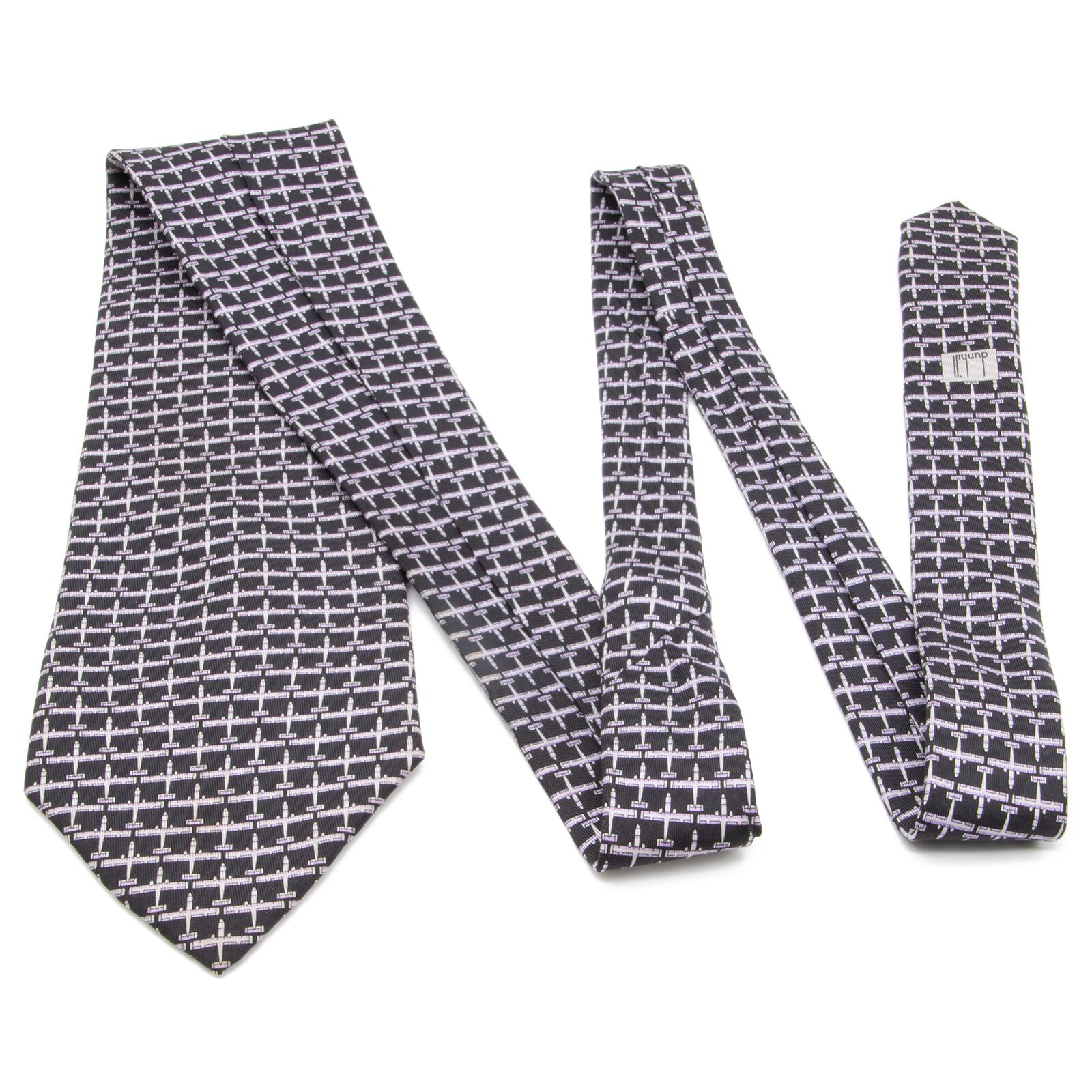 送料無料 ダンヒル ネクタイ ワイドタイ シルク バイカラー 黒 ブラック 紫色 パープル 珍しい 飛行機 おしゃれ ブランド フランス製 N312