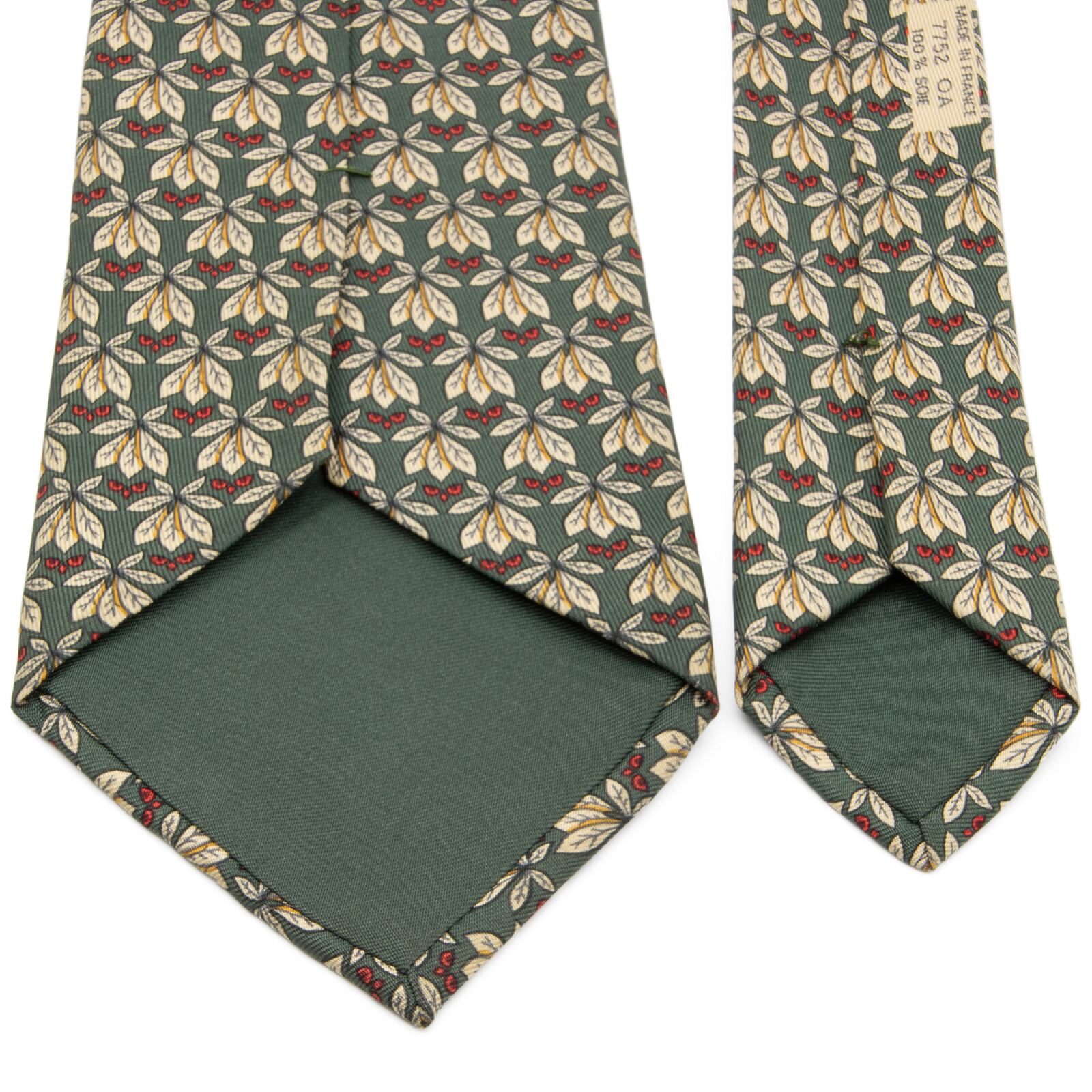 送料無料 エルメス ネクタイ レギュラータイ シルク 緑色 グリーン ベージュ 赤 レッド 珍しい 葉 動物 鳥 フクロウ フランス製 綺麗 N640