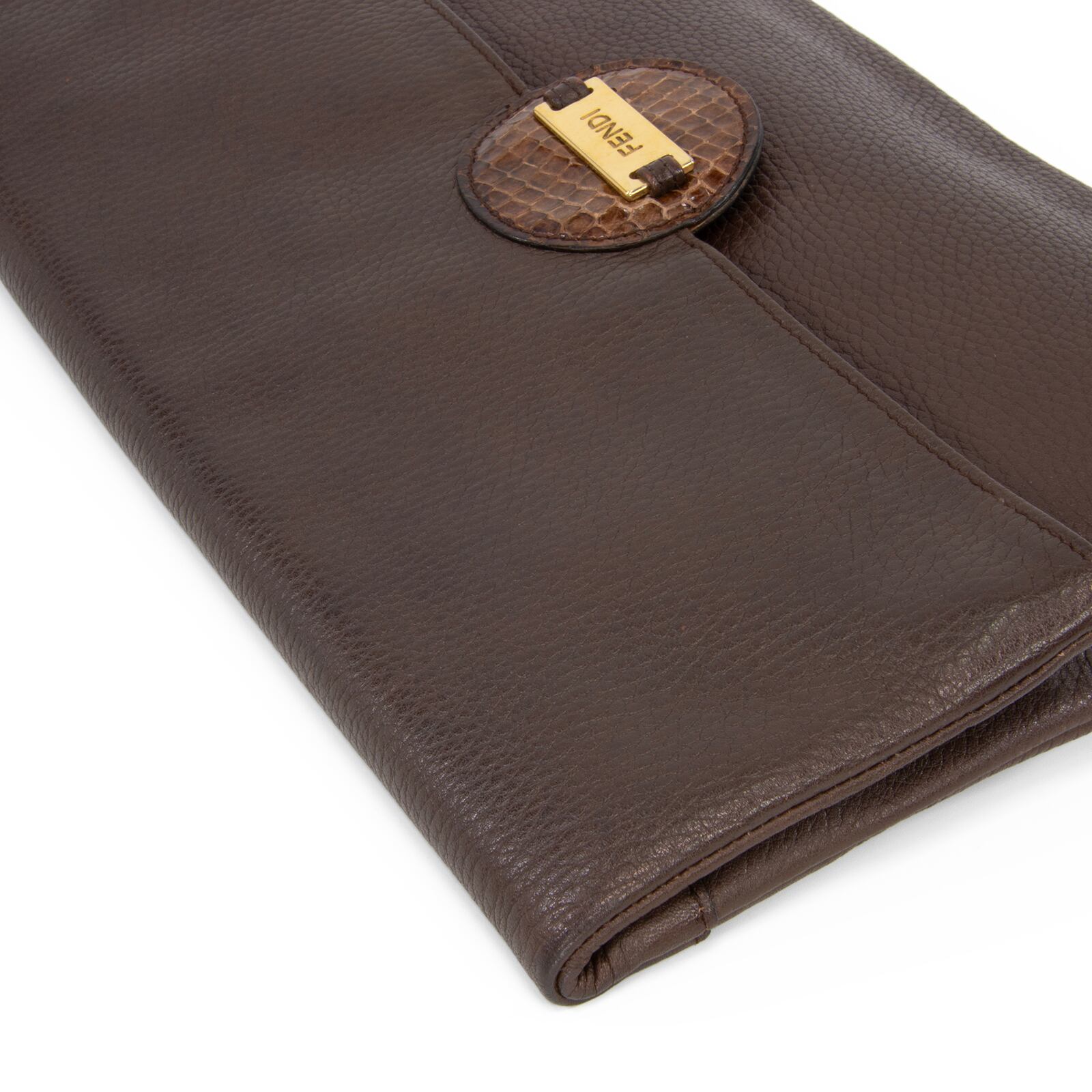 本物 送料無料 フェンディ クラッチバッグ セカンドバッグ メンズ レディース パイソン カーフスキン 茶色 本革 ロゴ 綺麗 鞄 バック B269