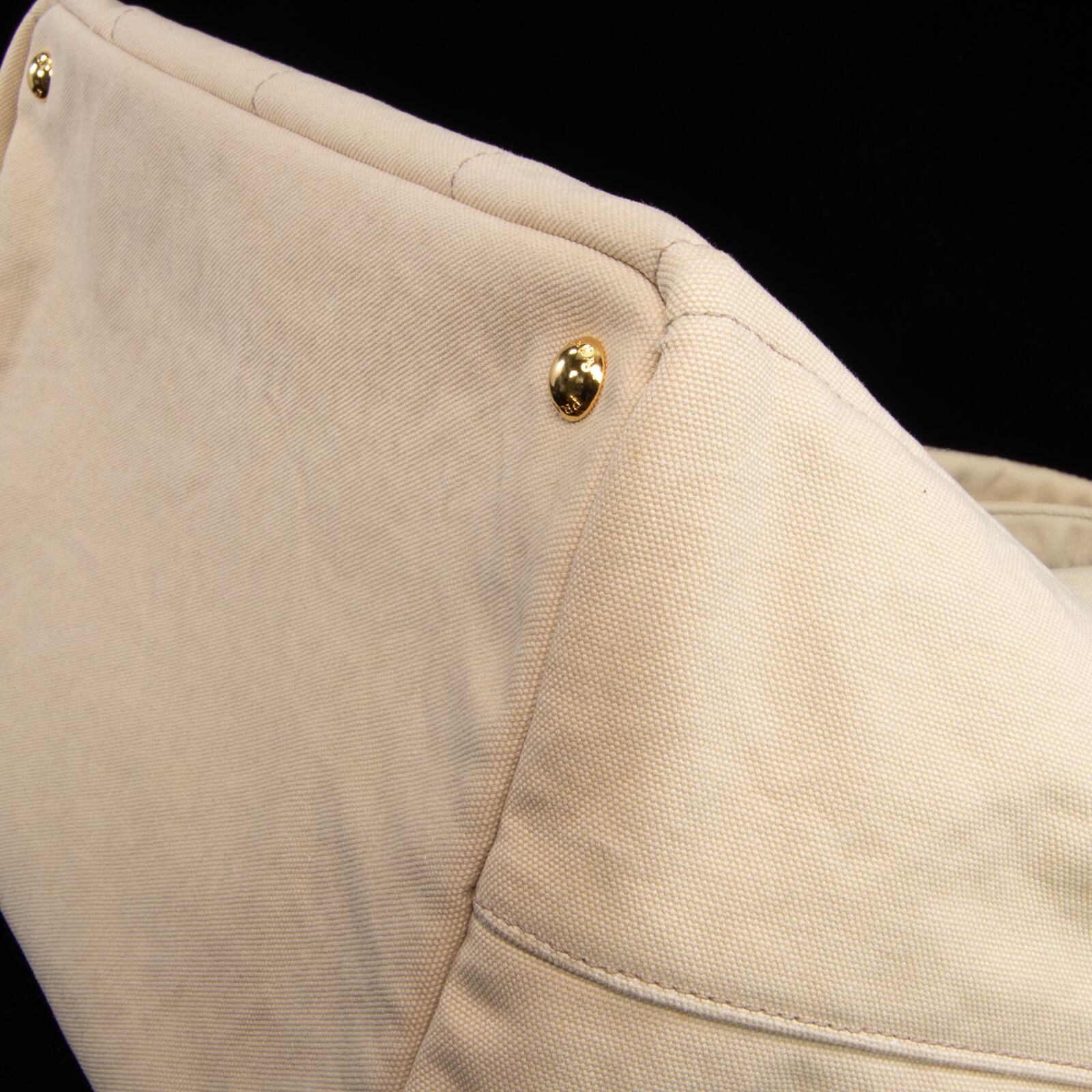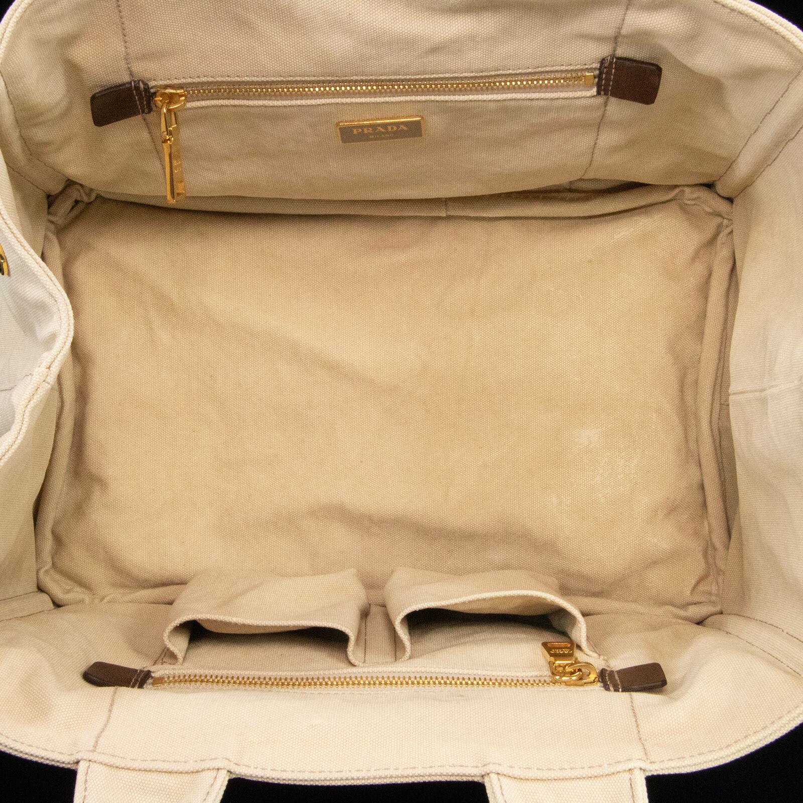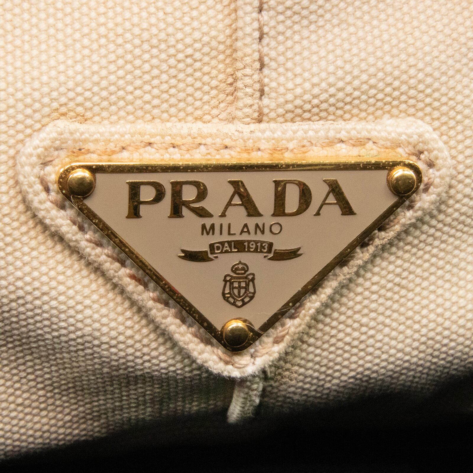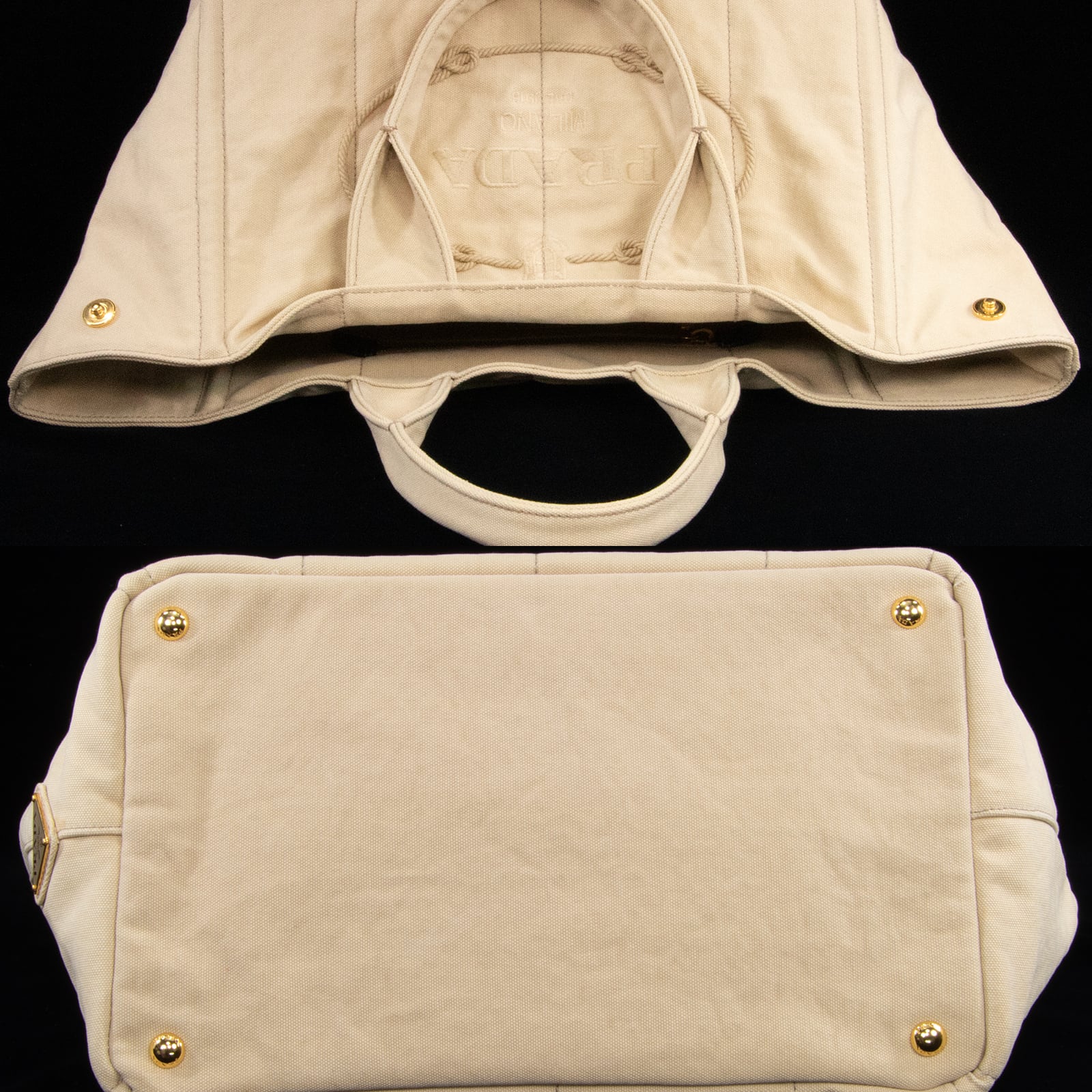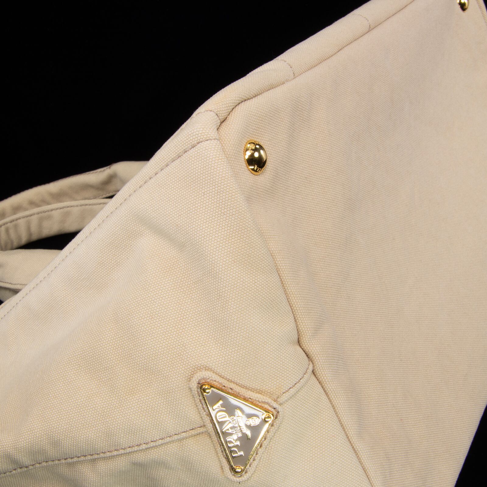本物 送料無料 プラダ ハンドバッグ トートバッグ レディース カナパMサイズ ベージュ 珍しい 刺繍 三角ロゴ マーク 綺麗 鞄 バック L170