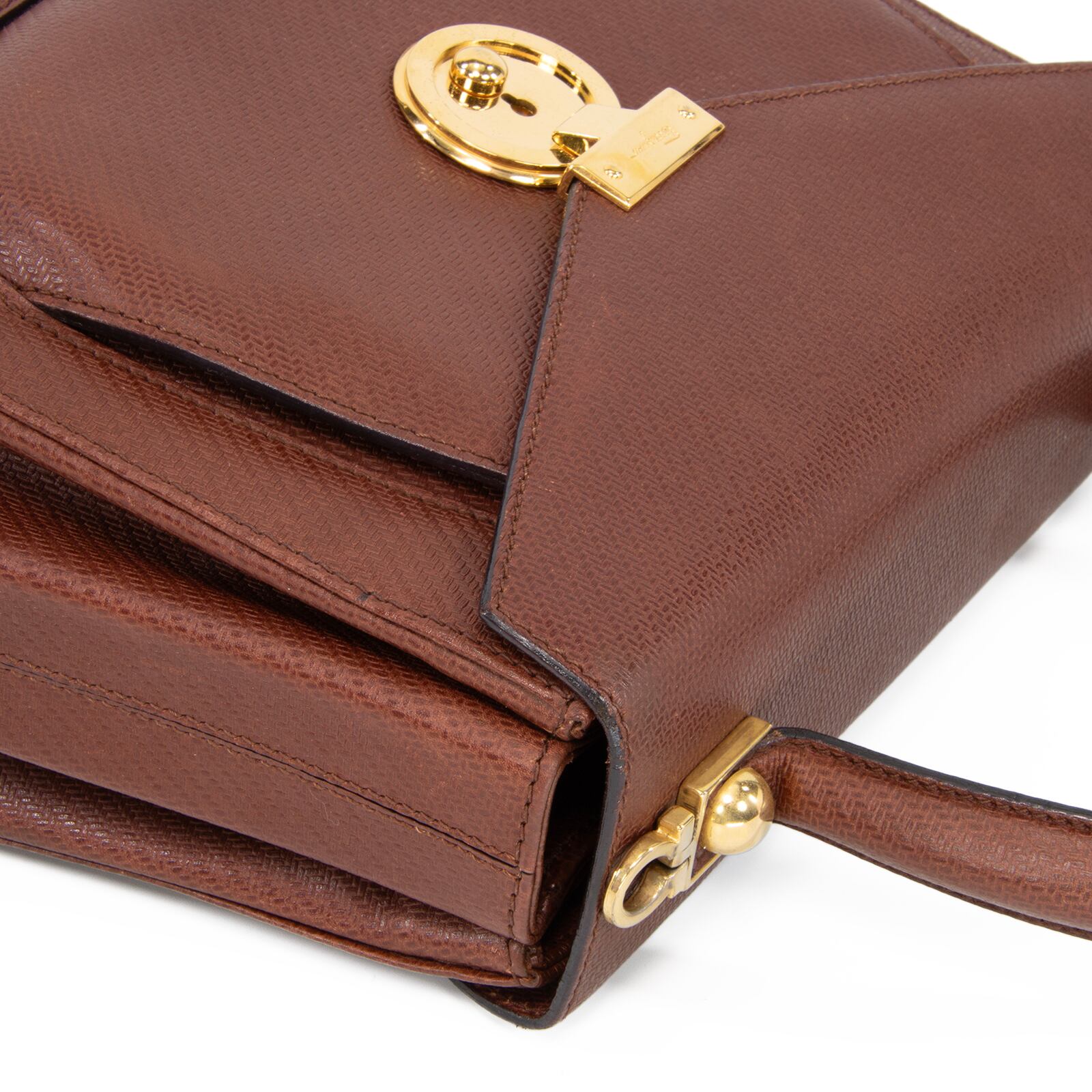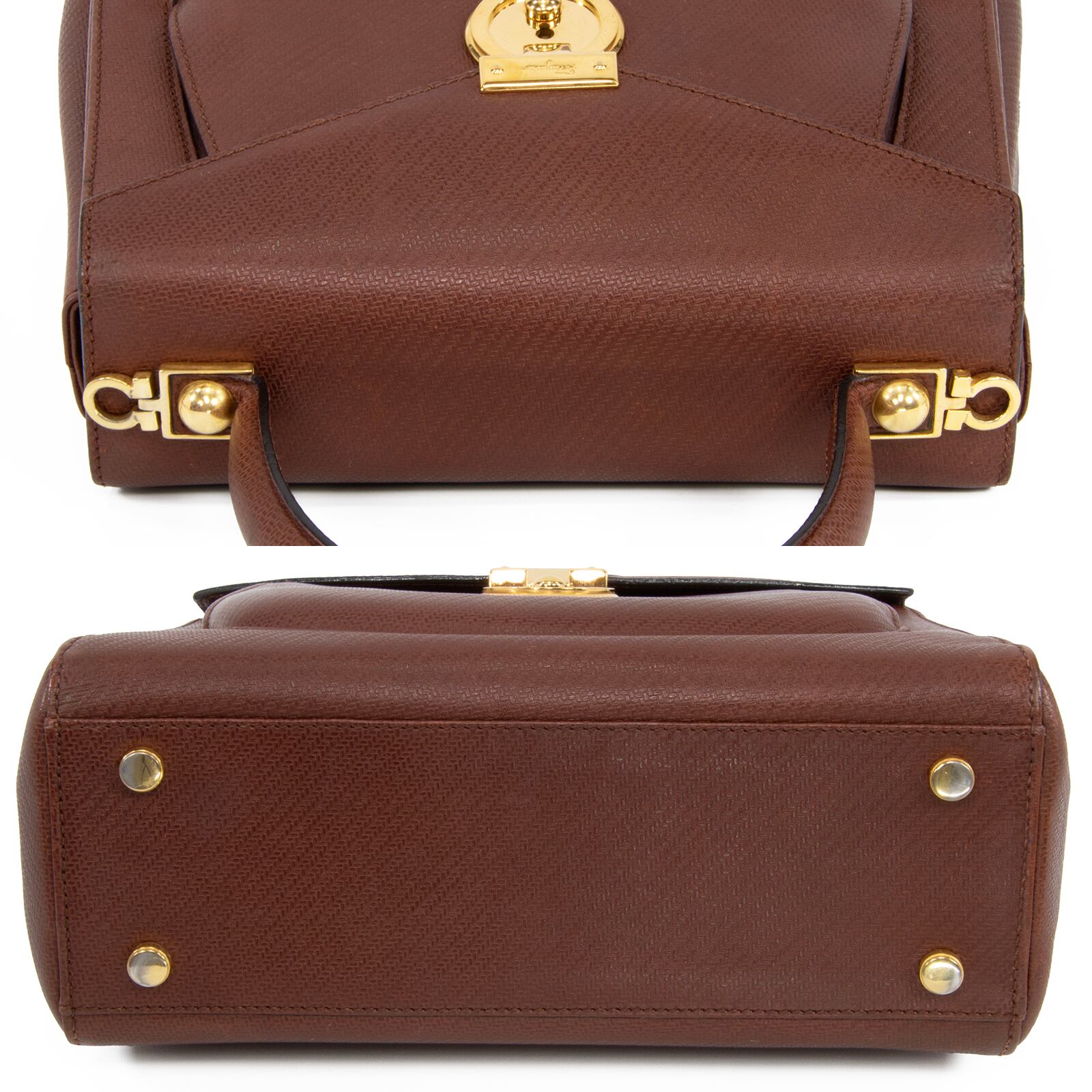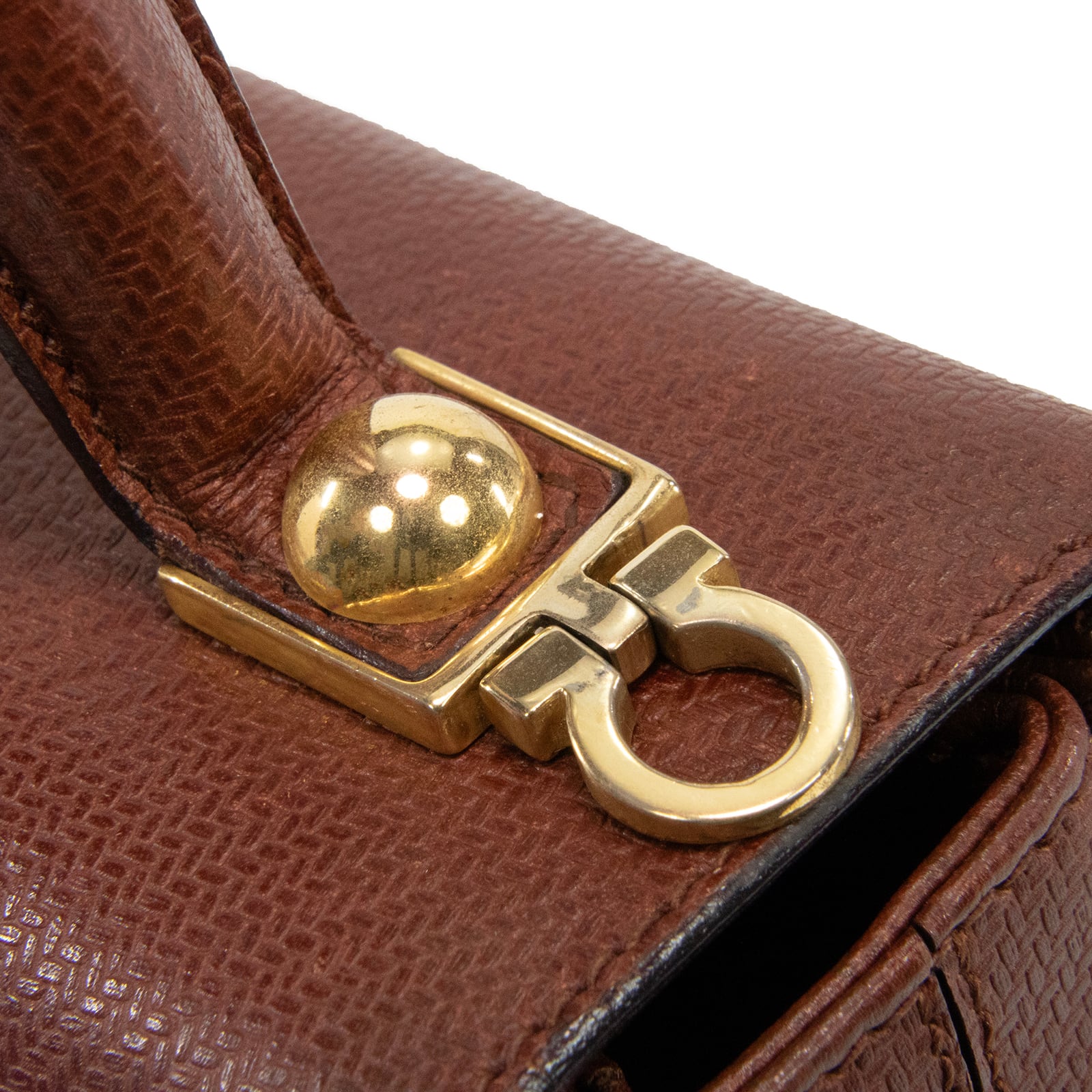 本物 送料無料 フェラガモ ハンドバッグ レディース 茶色 珍しい ロゴ マーク ガンチーニ 台形 本革 レザー ゴールド金具 鞄 バック L171