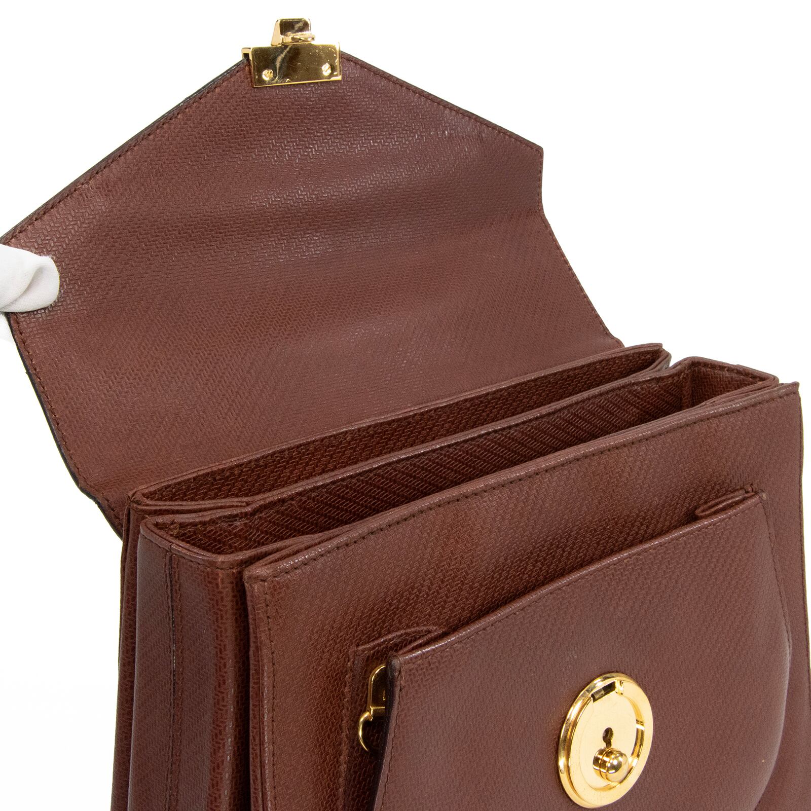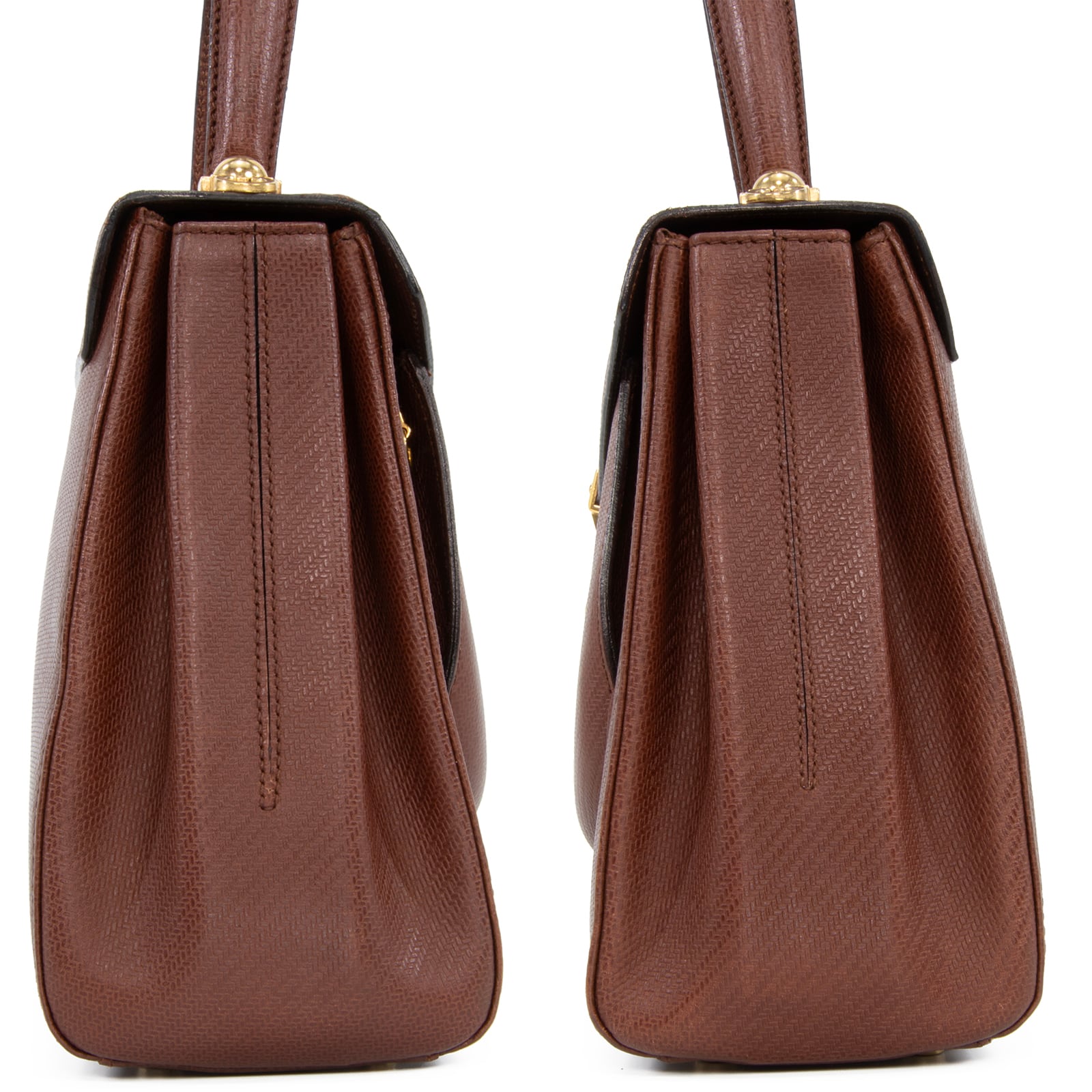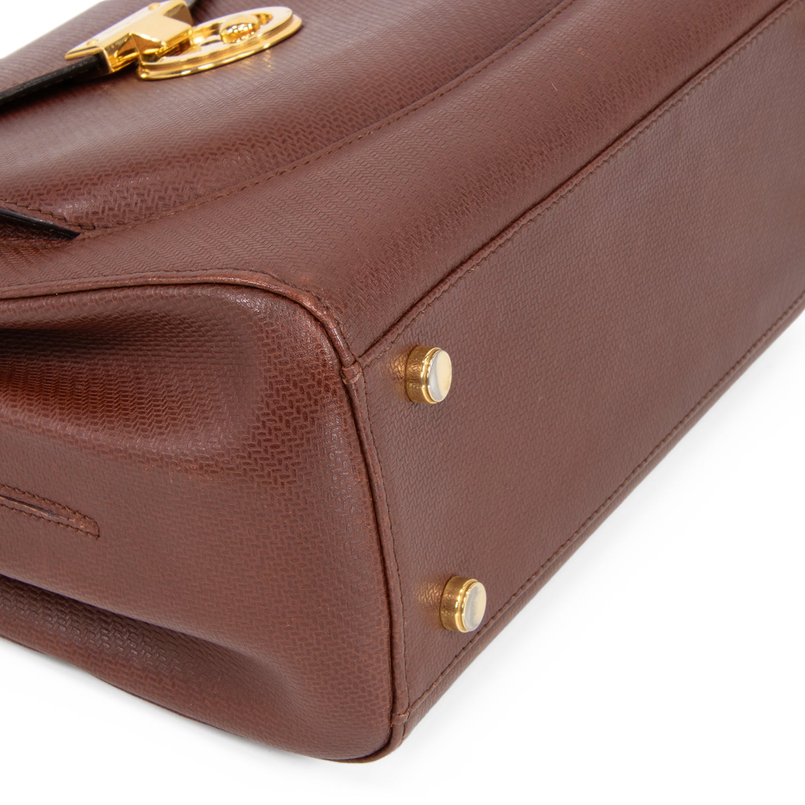 本物 送料無料 フェラガモ ハンドバッグ レディース 茶色 珍しい ロゴ マーク ガンチーニ 台形 本革 レザー ゴールド金具 鞄 バック L171