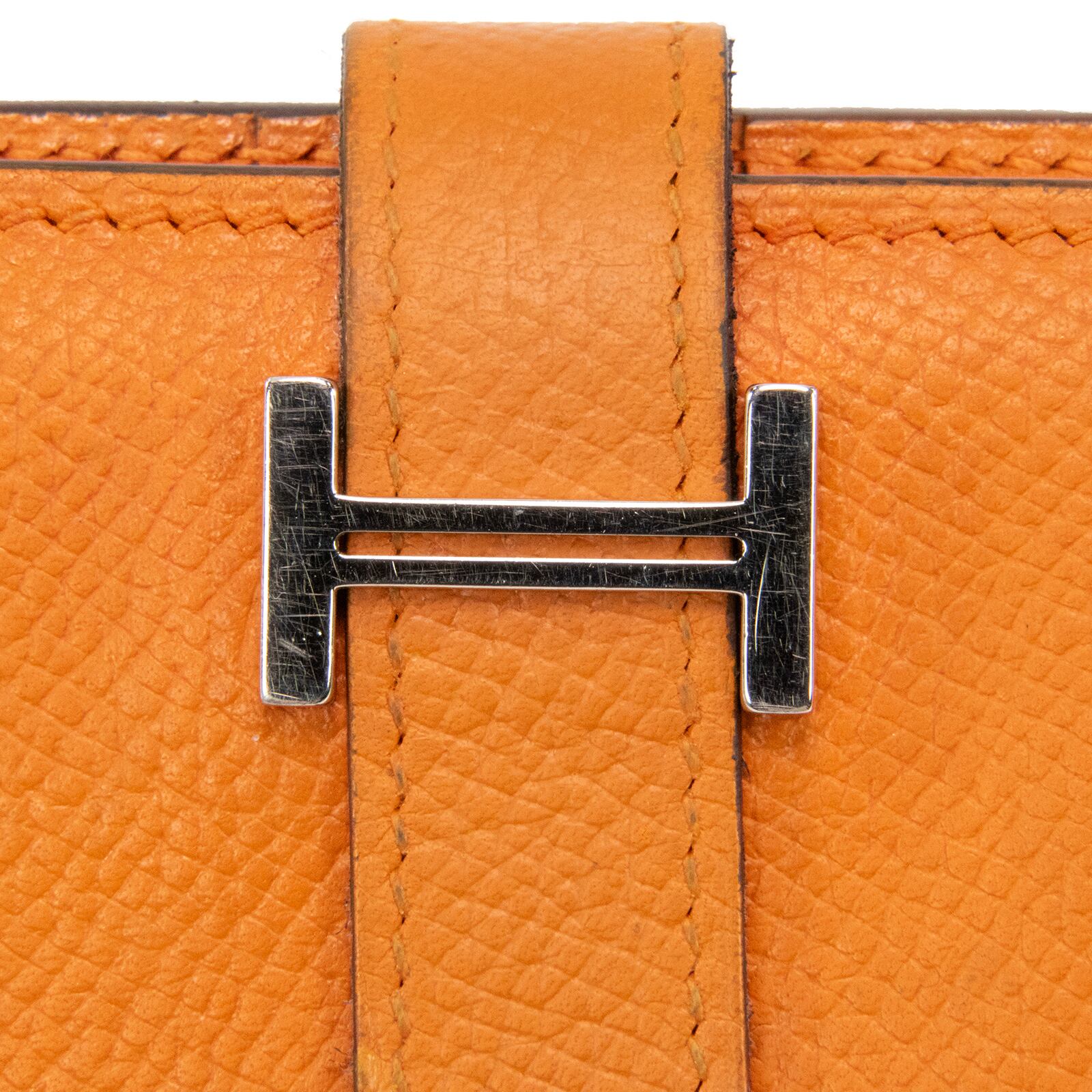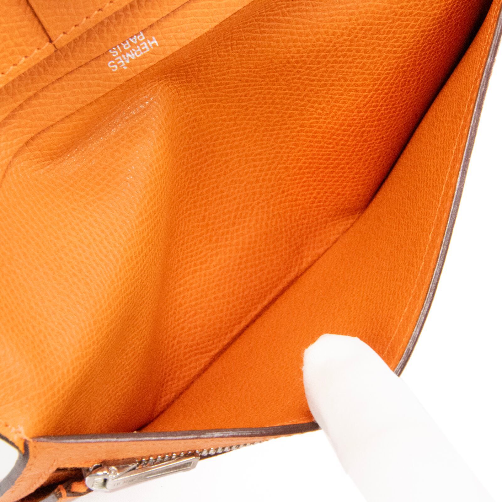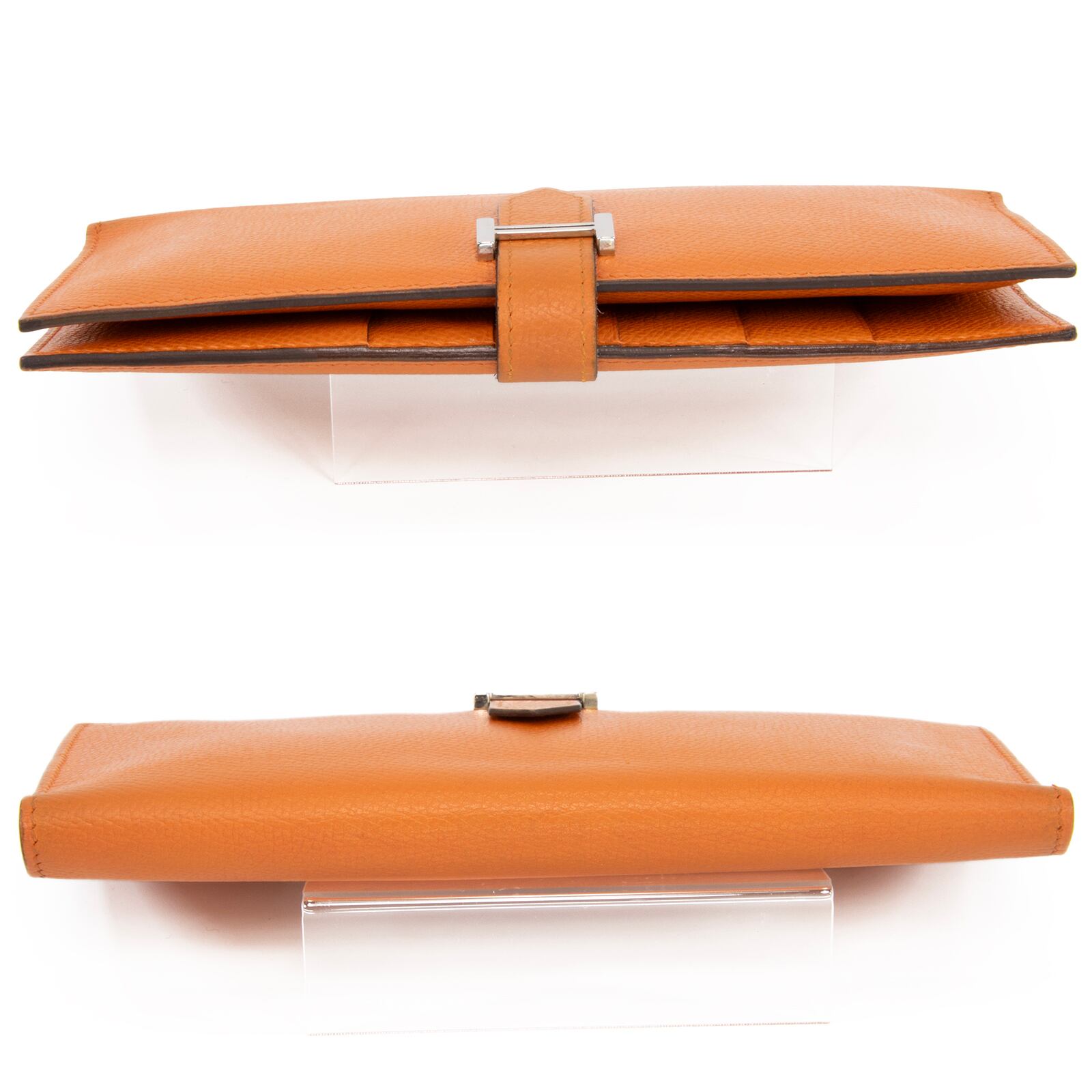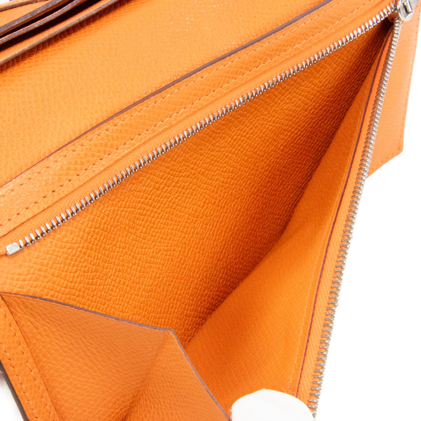 本物 送料無料 エルメス 長財布 二つ折り財布 レディース ヴォーエプソン ベアン クラシック 橙 オレンジ レアカラー Hシルバー金具 T051