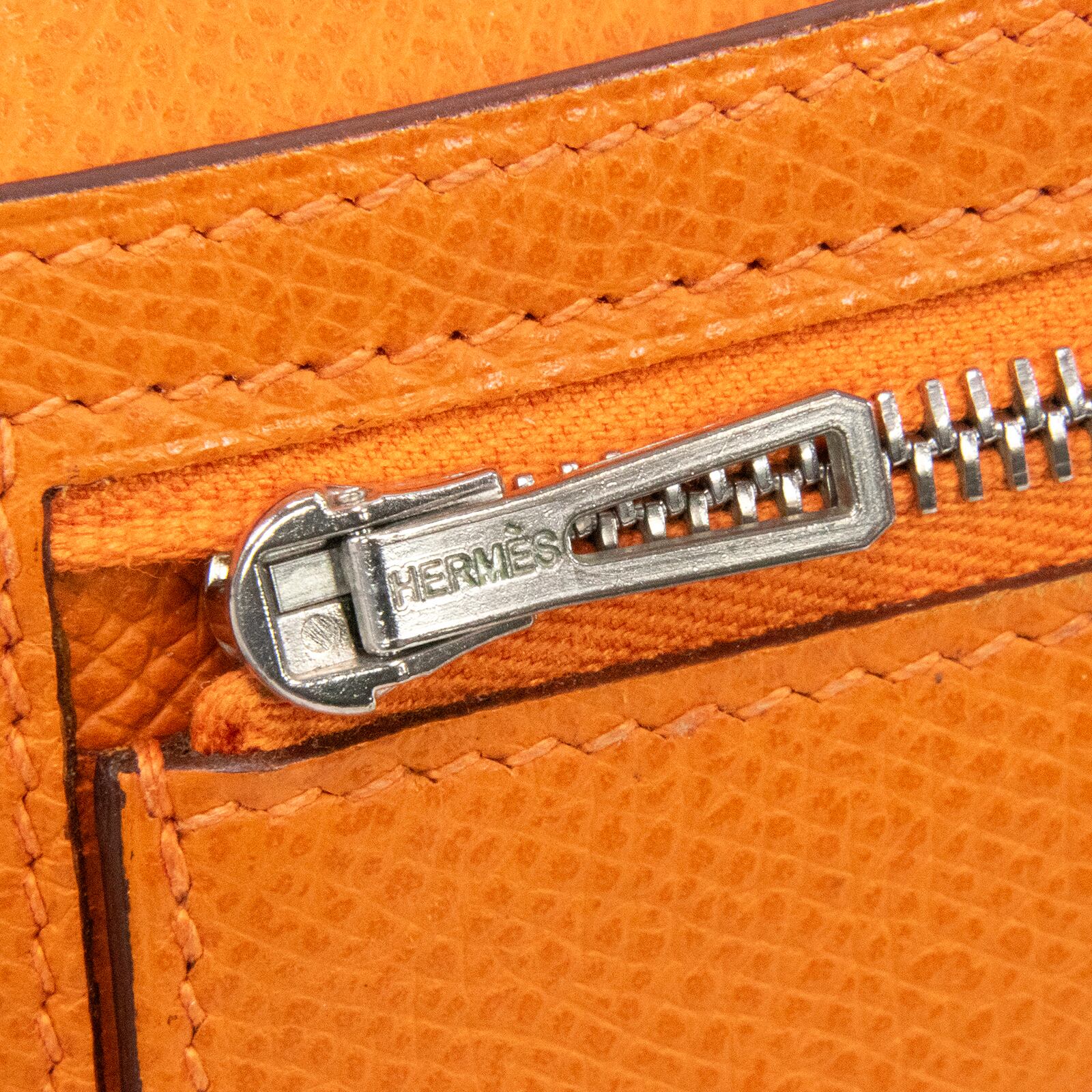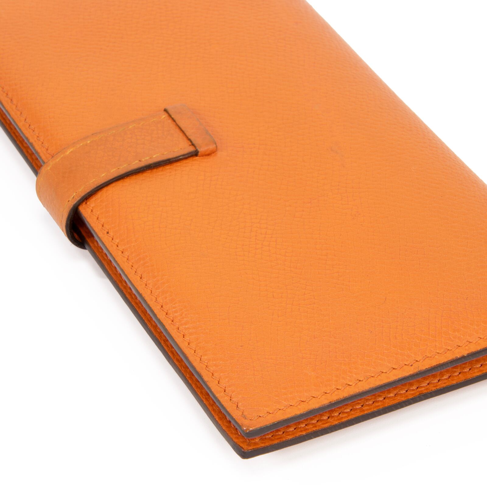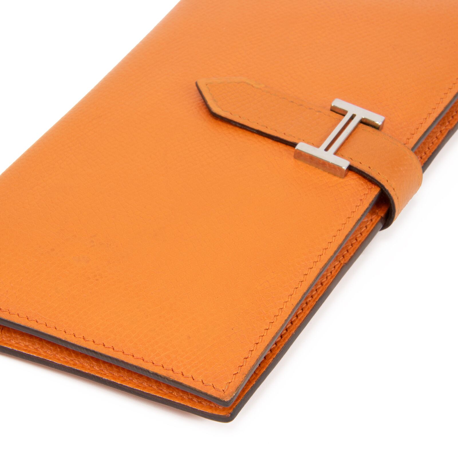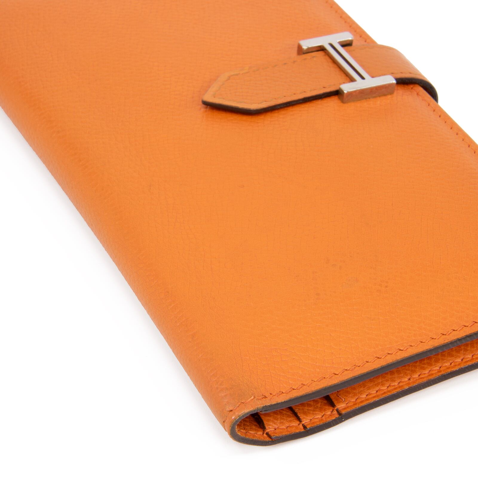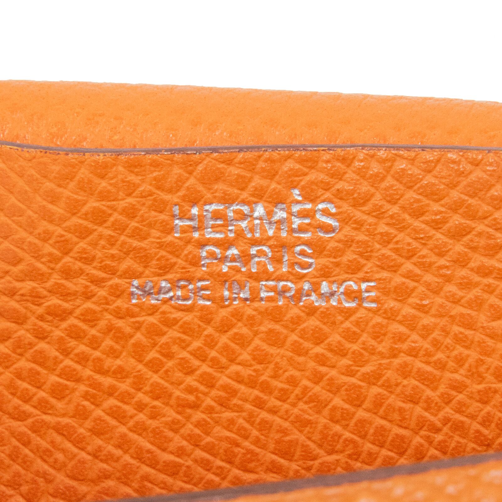 本物 送料無料 エルメス 長財布 二つ折り財布 レディース ヴォーエプソン ベアン クラシック 橙 オレンジ レアカラー Hシルバー金具 T051
