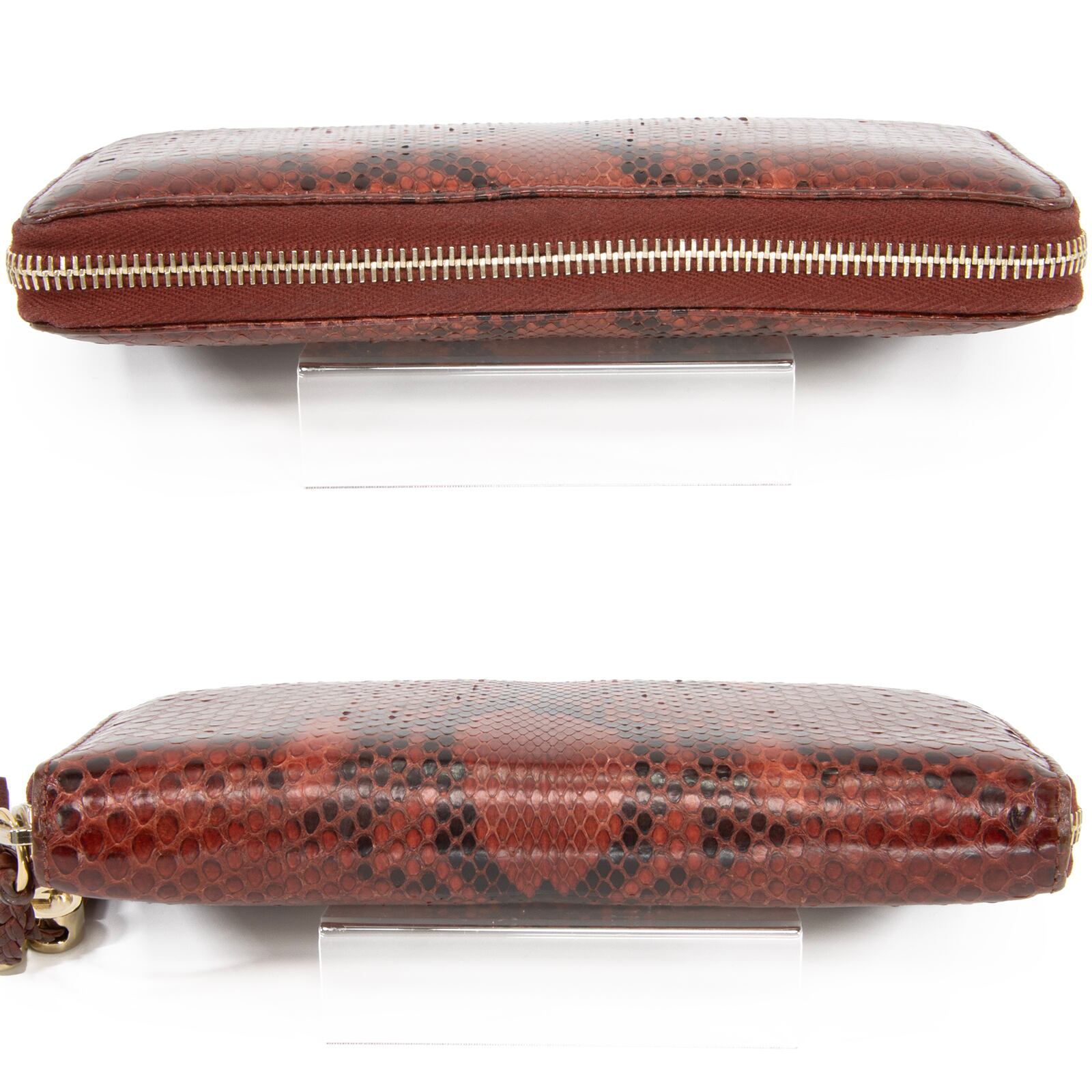 本物 送料無料 グッチ 長財布 ラウンドファスナー レディース パイソン 茶色 最高級 GGロゴ マーク 本革 フリンジ ゴールド金具 綺麗 G090