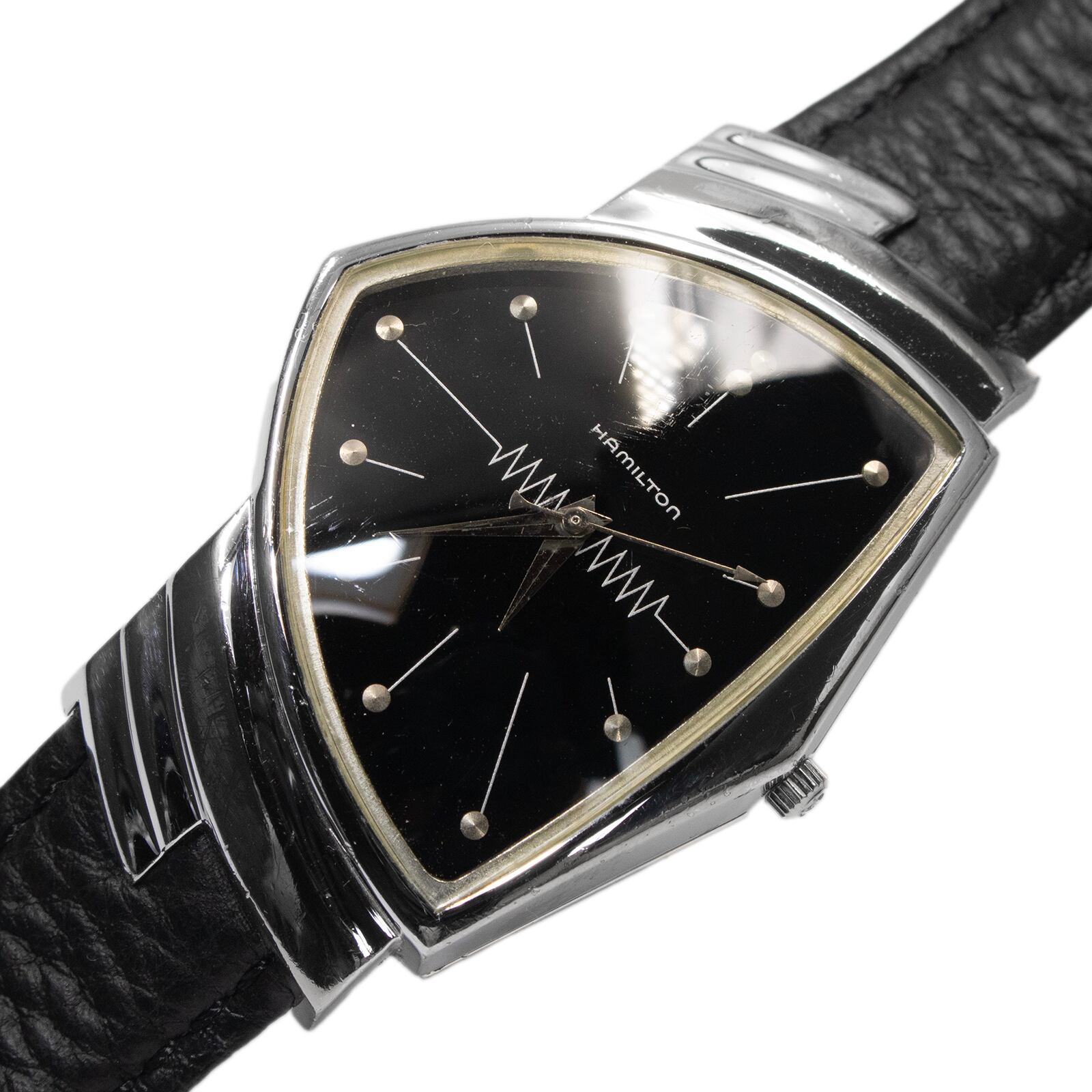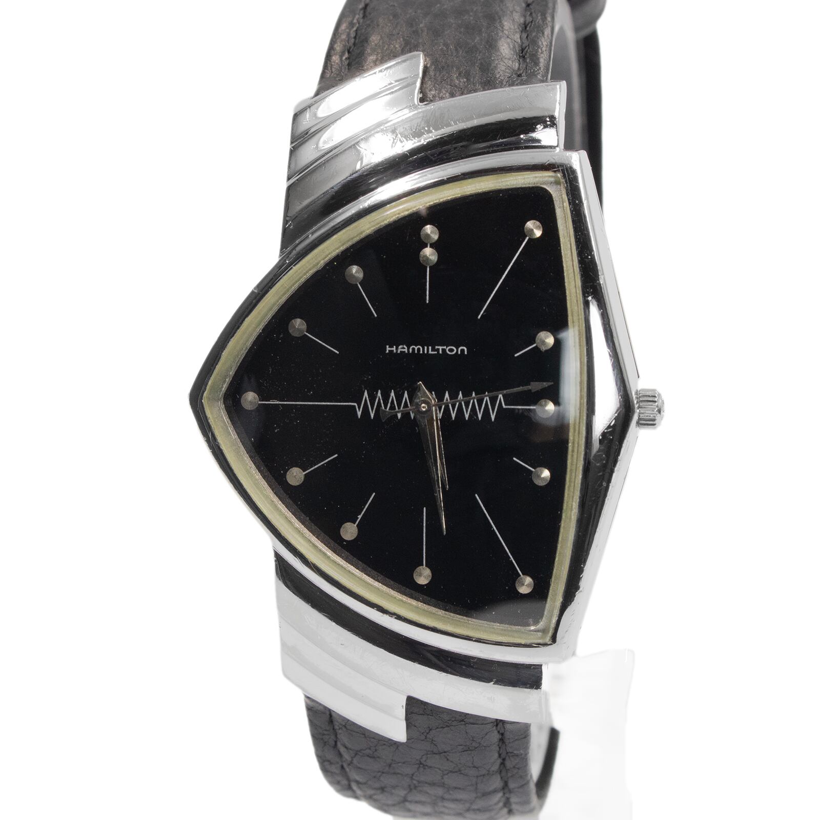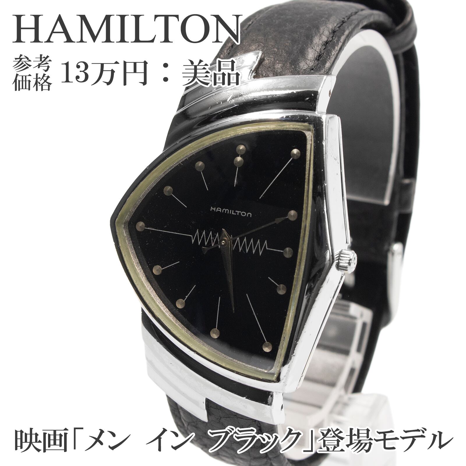 送料無料 ハミルトン 腕時計 メンズ クォーツ Ventura ベンチュラ 黒 人気 目立つ 三角 トライアングル ロゴ 本革 レザー ブランド Q079