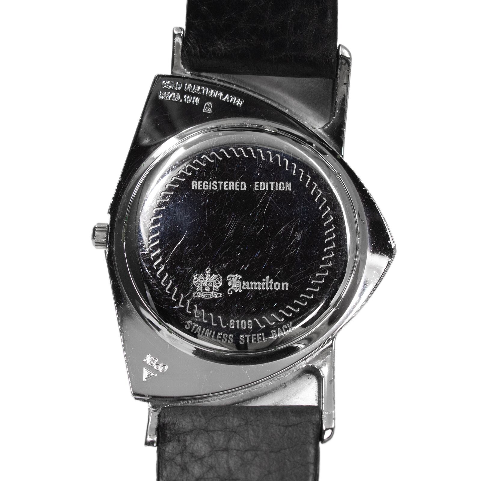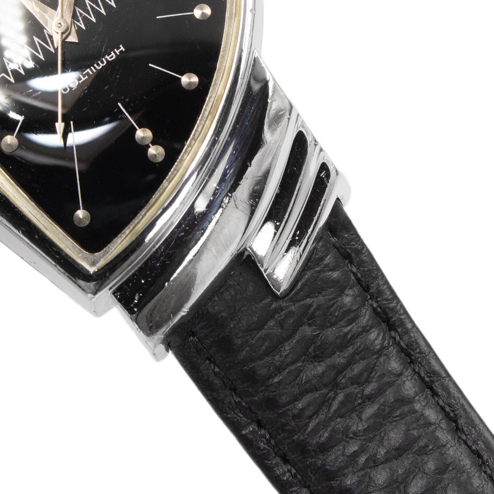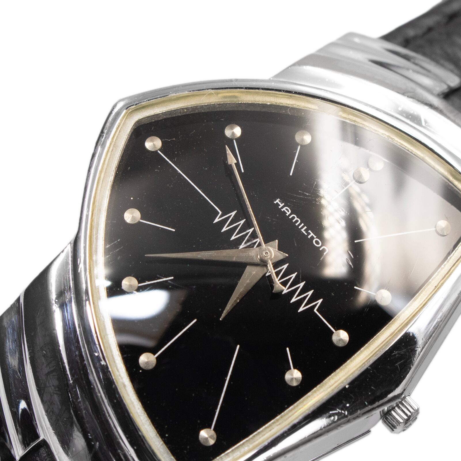 送料無料 ハミルトン 腕時計 メンズ クォーツ Ventura ベンチュラ 黒 人気 目立つ 三角 トライアングル ロゴ 本革 レザー ブランド Q079