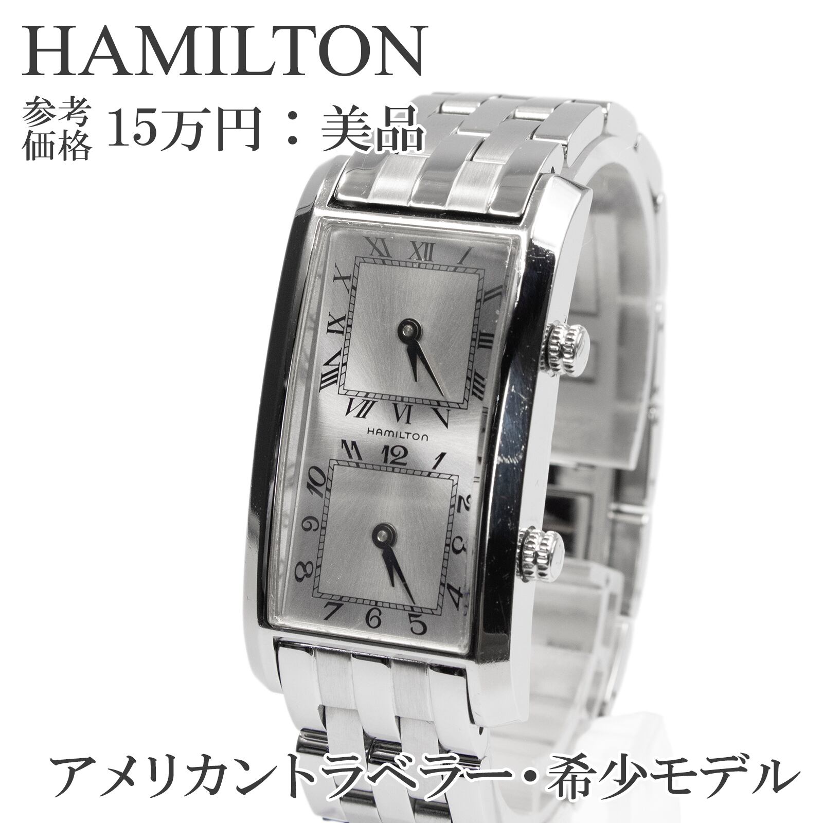 送料無料 ハミルトン 腕時計 メンズ アメリカントラベラー デュアルタイム 珍しい 目立つ 四角 レクタンギュラー ロゴ ブランド 綺麗 Q080