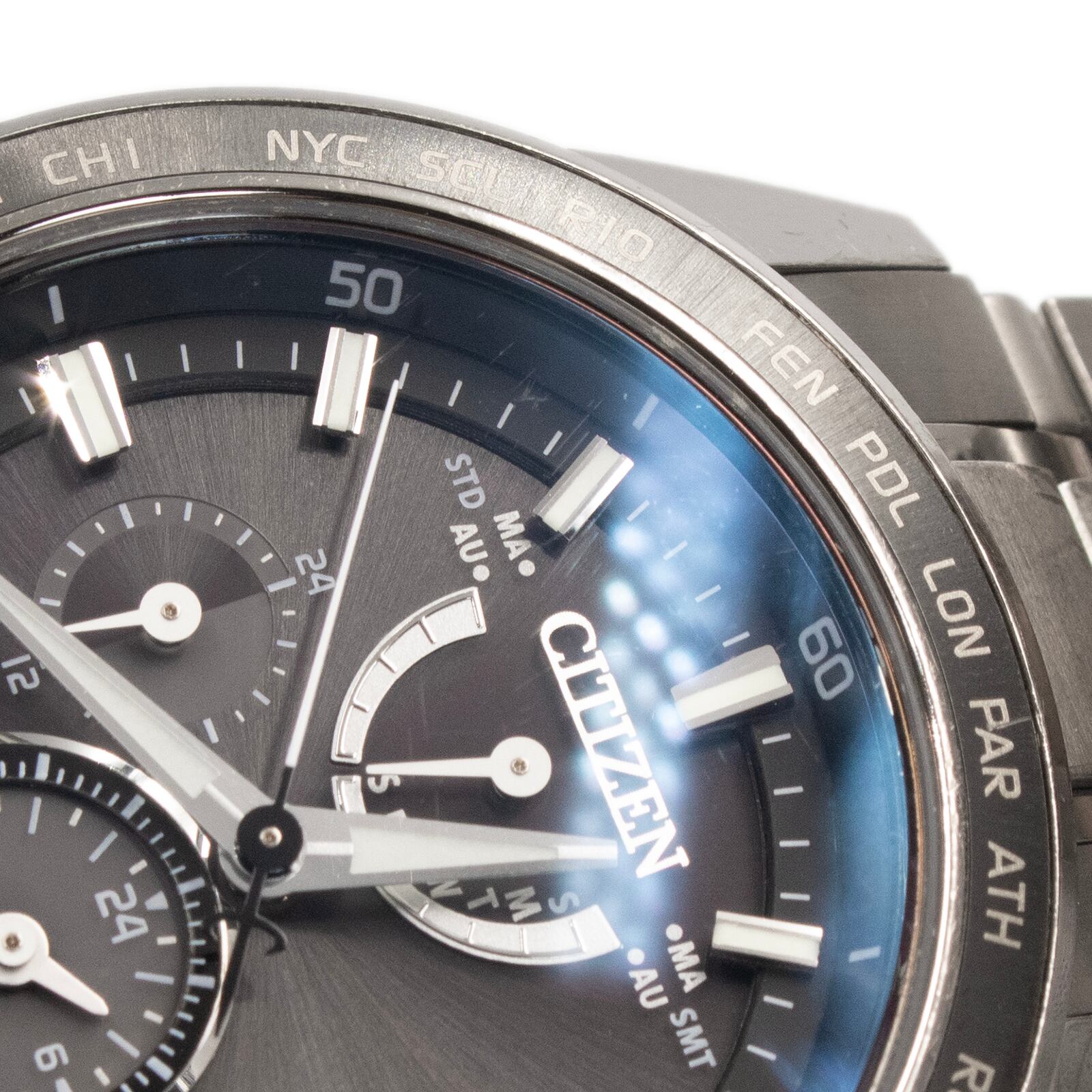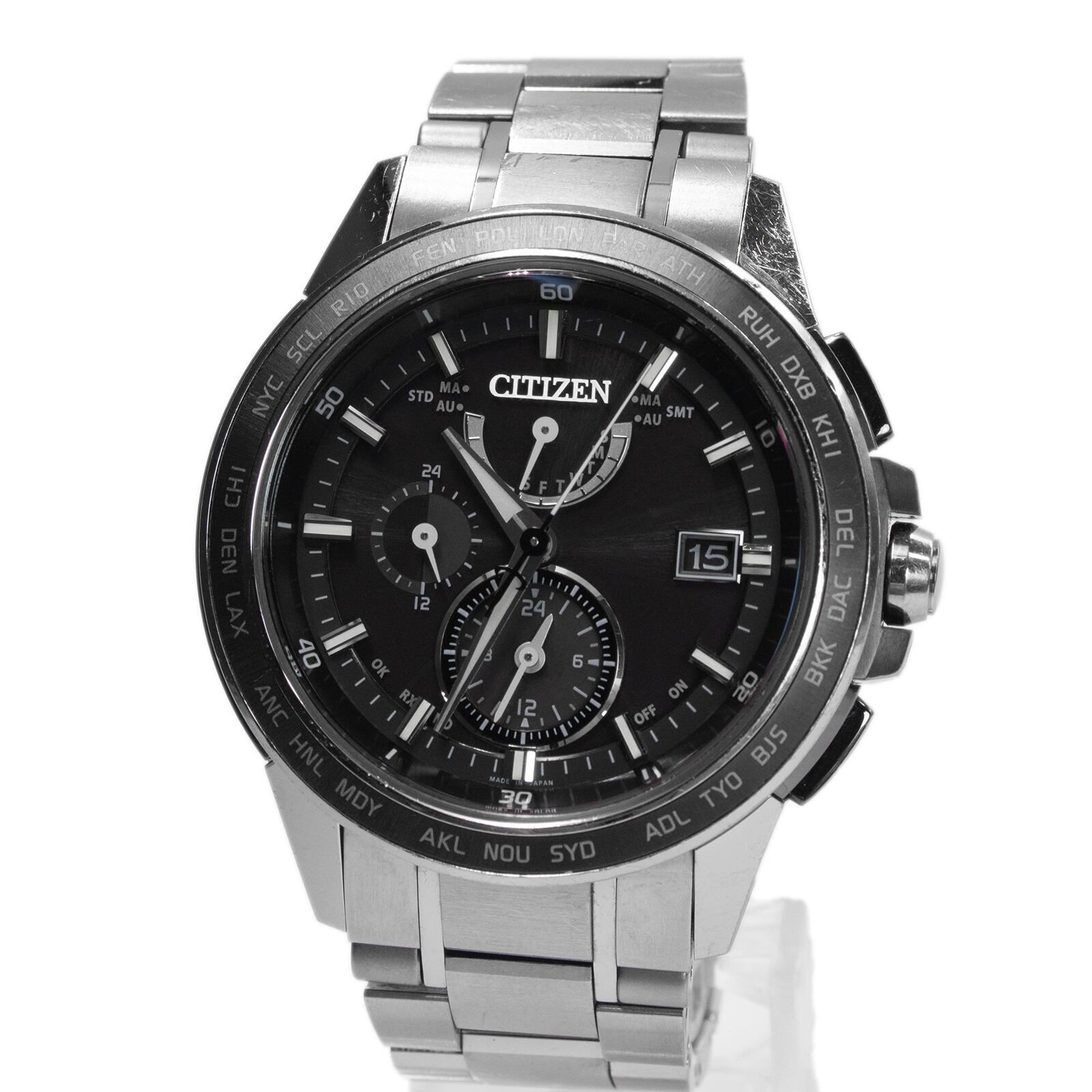 送料無料 シチズン 腕時計 ソーラー電波 メンズ アテッサ ダイレクトフライト 黒 ブラック エコドライブ ロゴ ブランド おしゃれ 綺麗 Q082