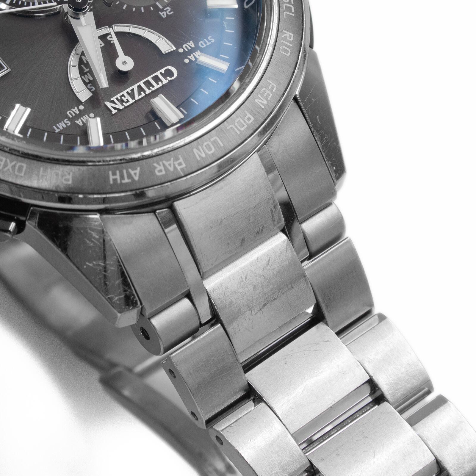 チタンブレス・ケースに薄擦れ(中)、風防に薄擦れ(小)、使用感(中)
