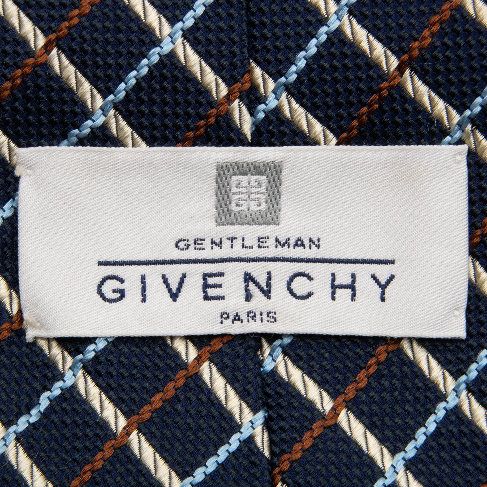 送料無料 ジバンシー ネクタイ ジャガードタイ 青 ネイビーブルー 水色 茶色 白 珍しい チェック 紐 ロープ おしゃれ イタリア製 綺麗 N306
