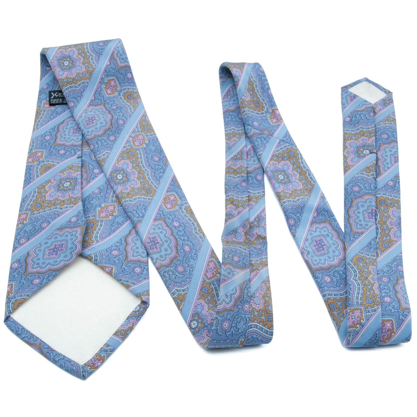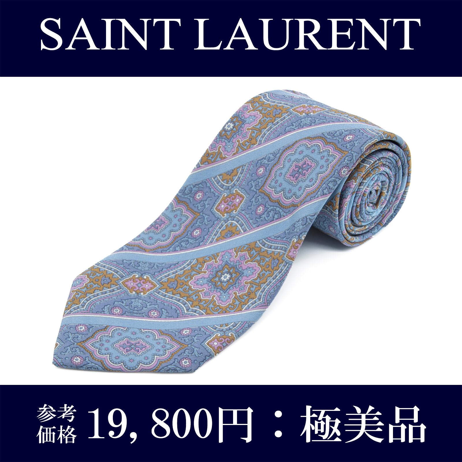 送料無料 サンローラン ネクタイ シルク 水色 オーカー 赤紫 パープル ビジネス パターンストライプ 紋様 ブランド イタリア製 綺麗 N318