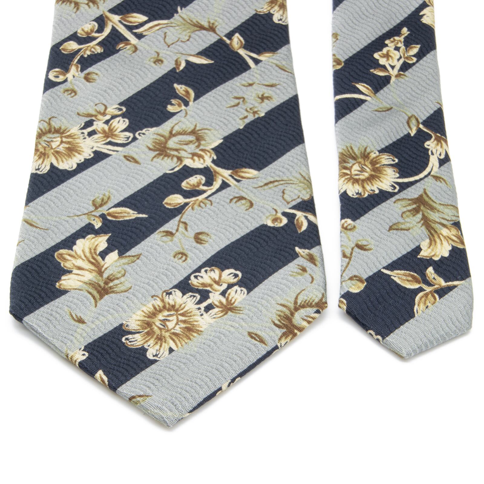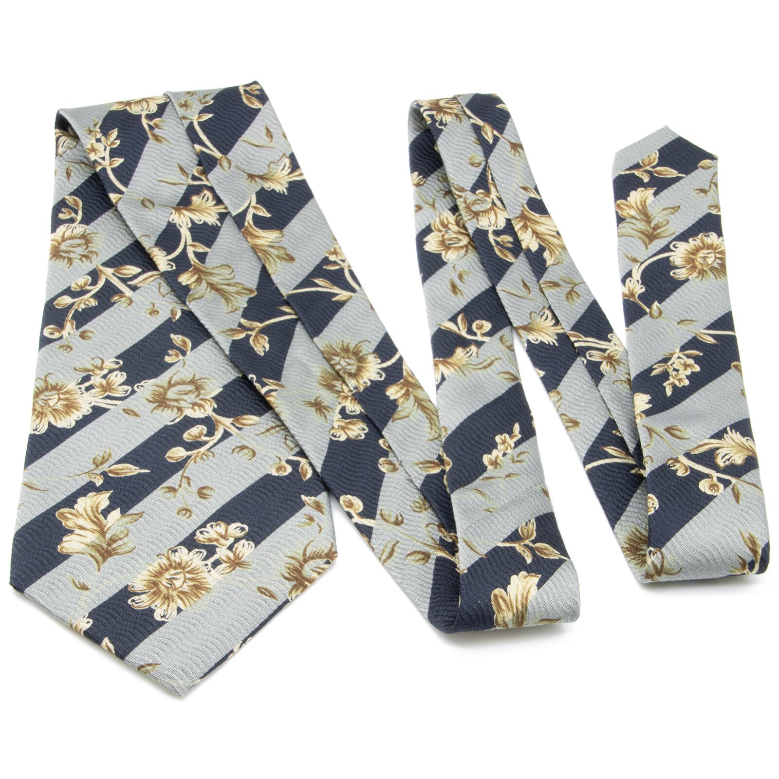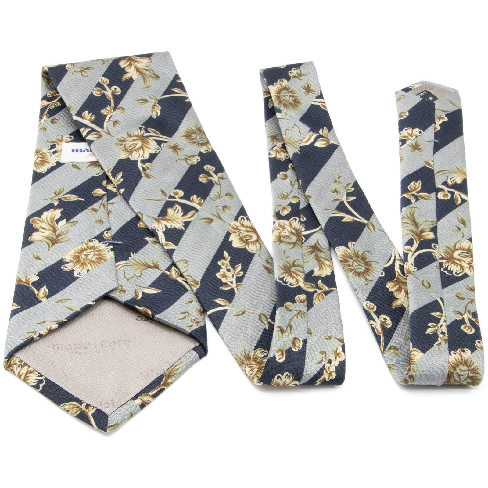 送料無料 マリクレール ネクタイ ジャガードタイ 新品同様 青 ネイビーブルー 水色 アイボリー 茶色 ブランド ストライプ 花 フラワー N340