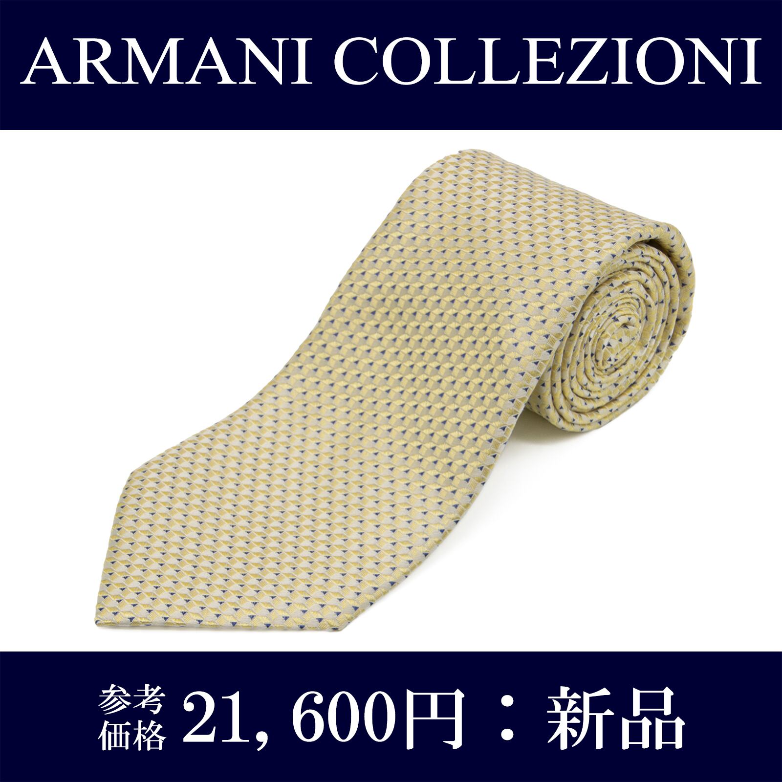 送料無料 アルマーニコレツィオーニ ネクタイ ジャガードタイ 新品 黄色 白 青 ブルー 四角 ひし形 ブランド 珍しい イタリア製 綺麗 N369