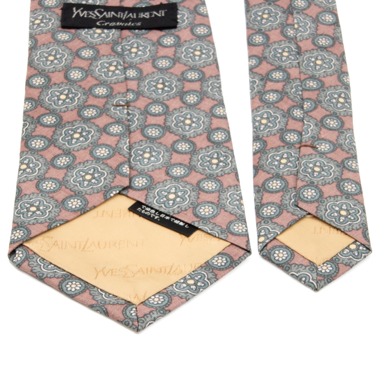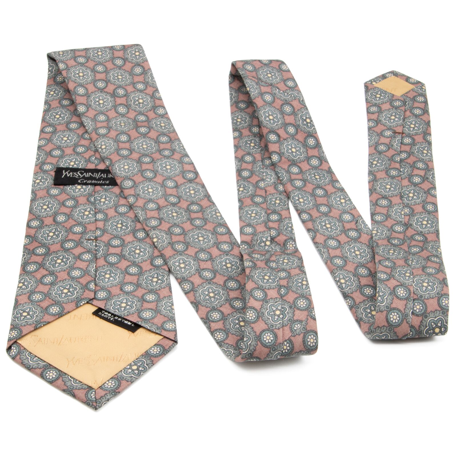 送料無料 サンローラン ネクタイ シルク 赤紫色 ライラック 緑 グリーン 黄色 イエロー 珍しい 花 フラワー ブランド おしゃれ 綺麗 N373
