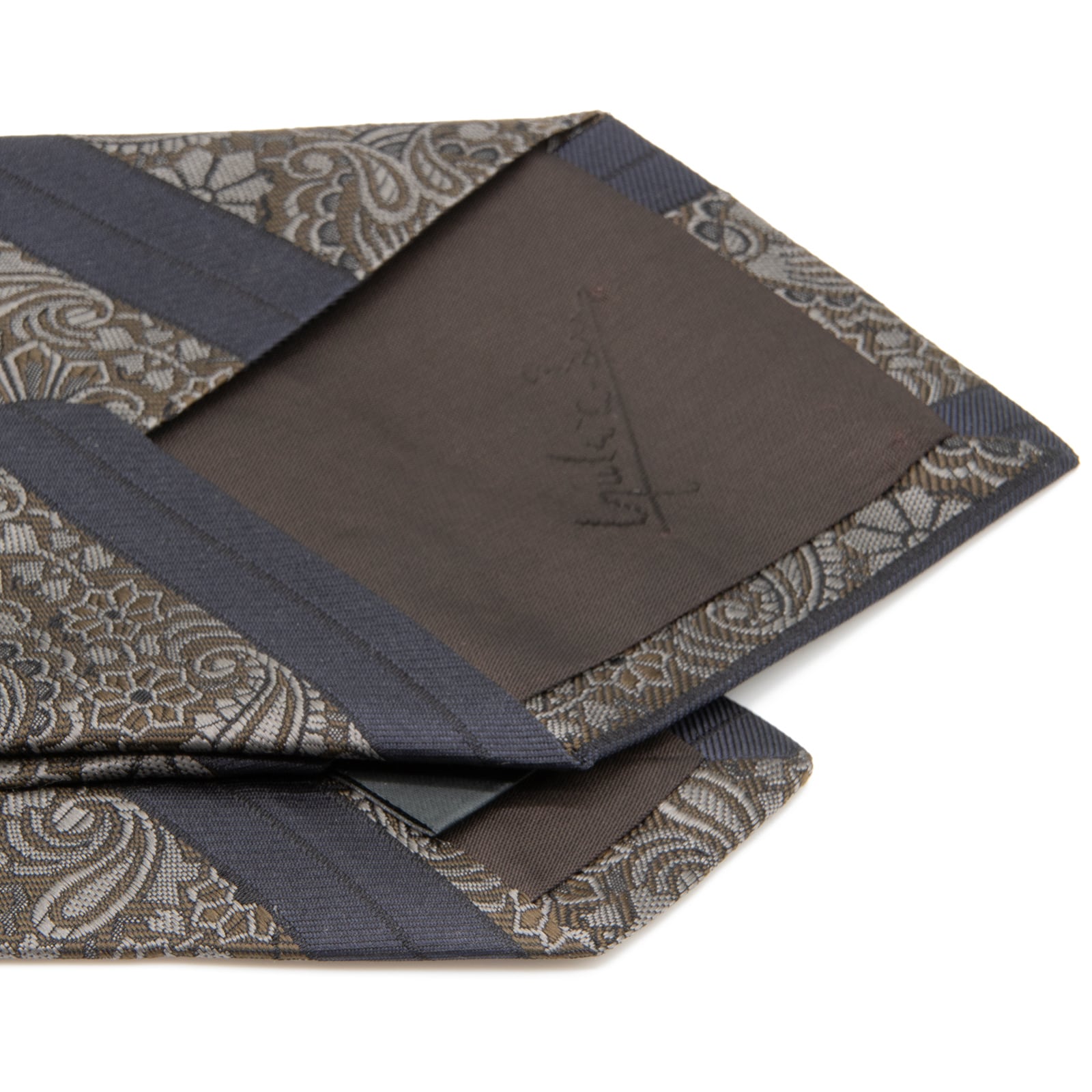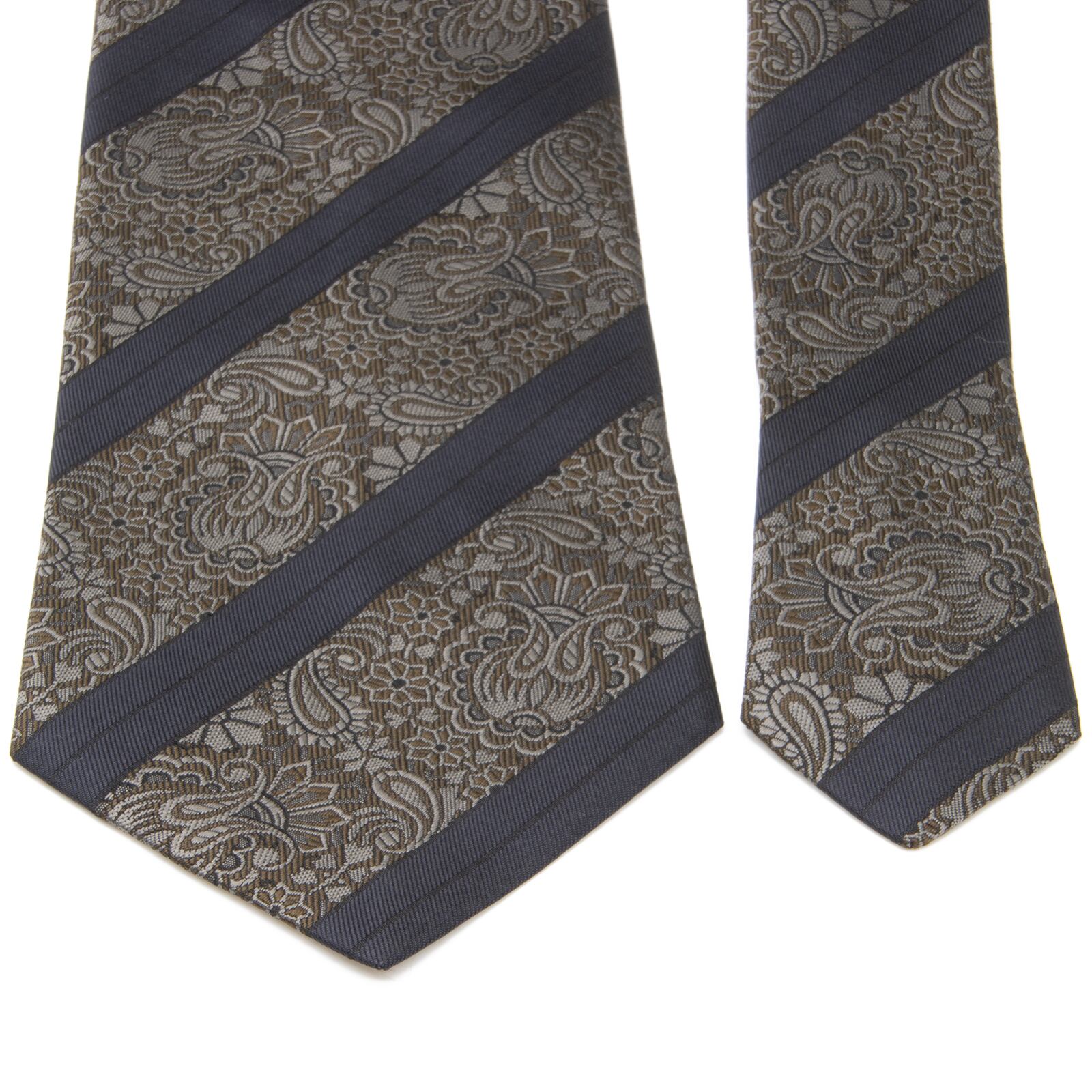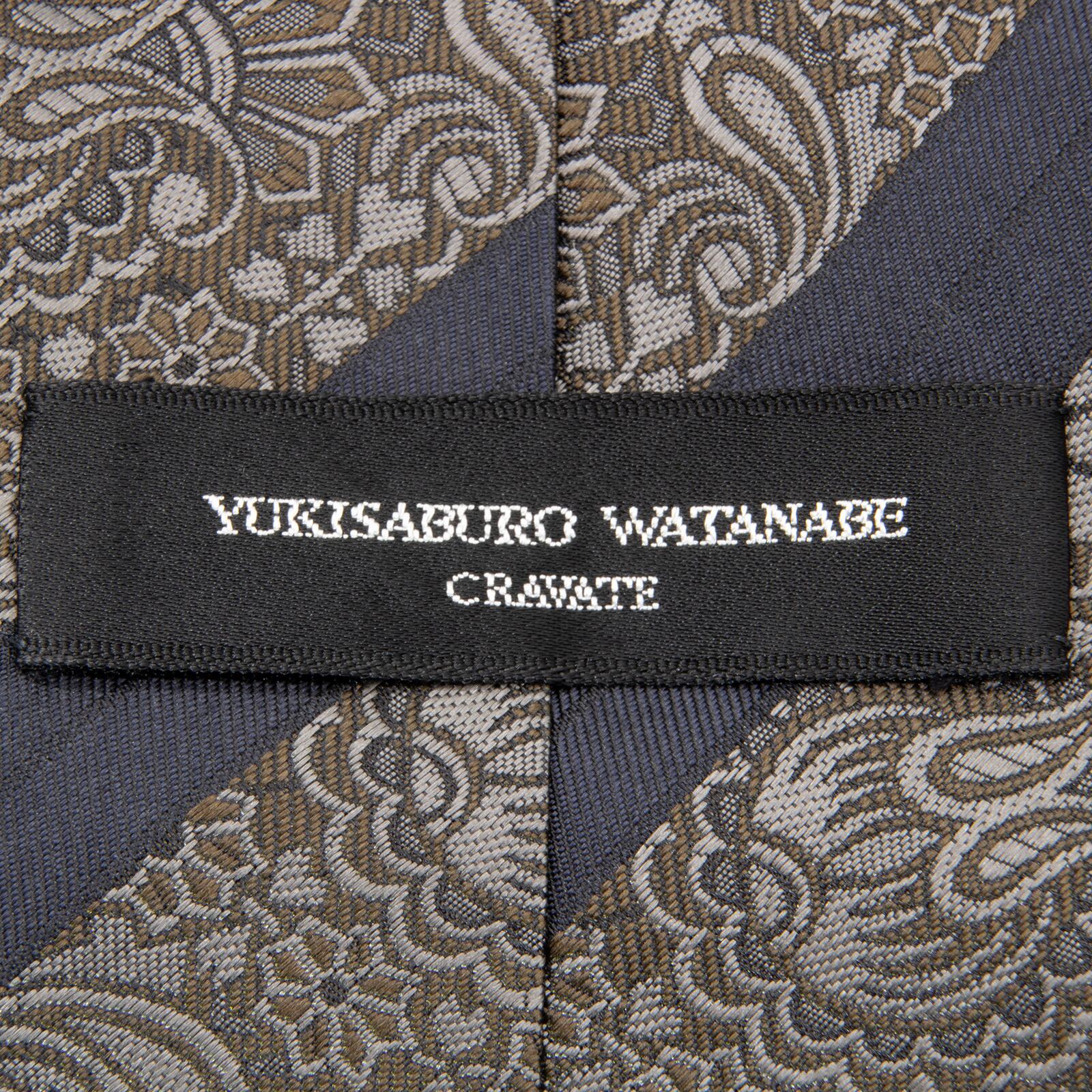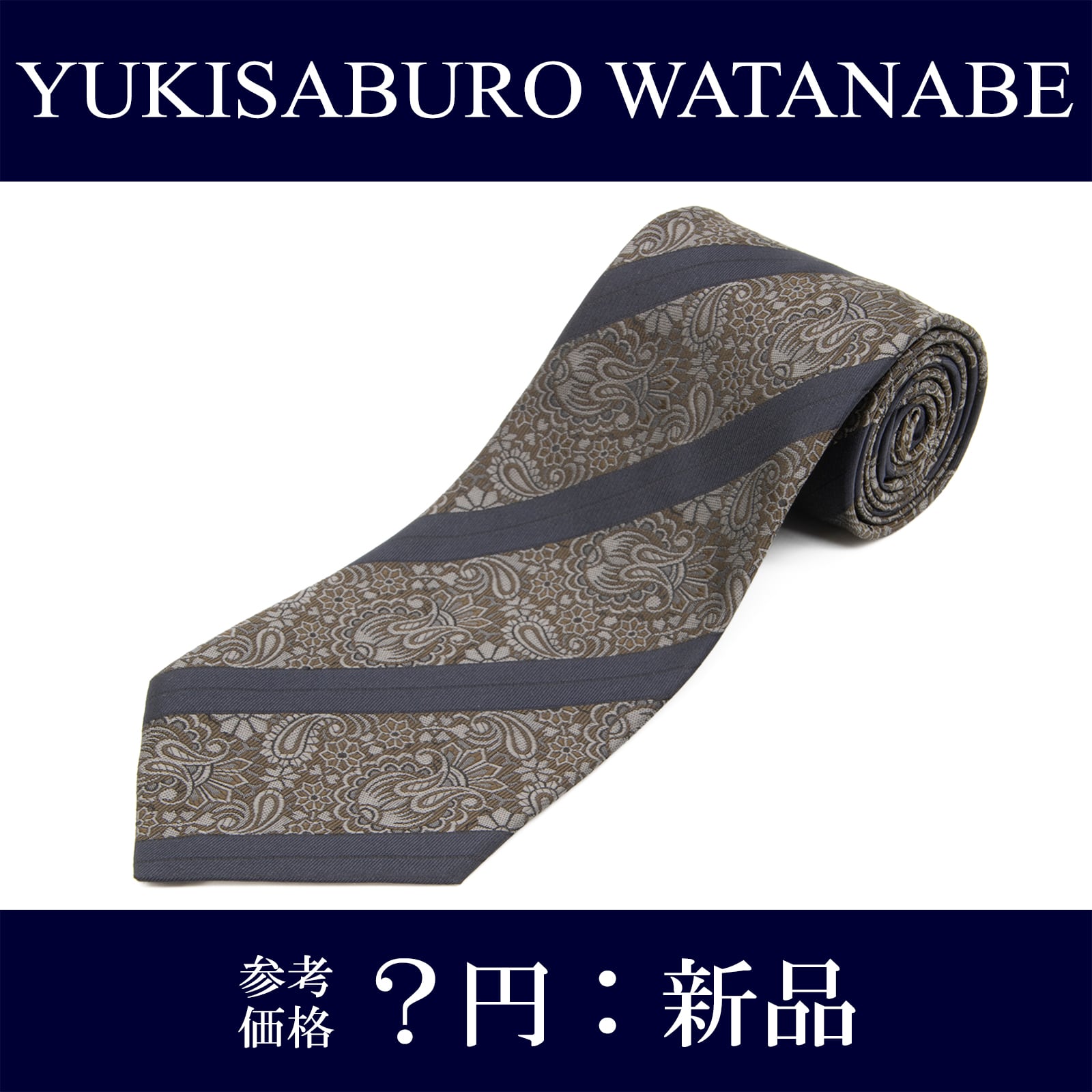 送料無料 ユキサブロウワタナベ ネクタイ ジャガードタイ 新品 グレー 青 ネイビーブルー ブランド ストライプ ペイズリー 光沢 綺麗 N432