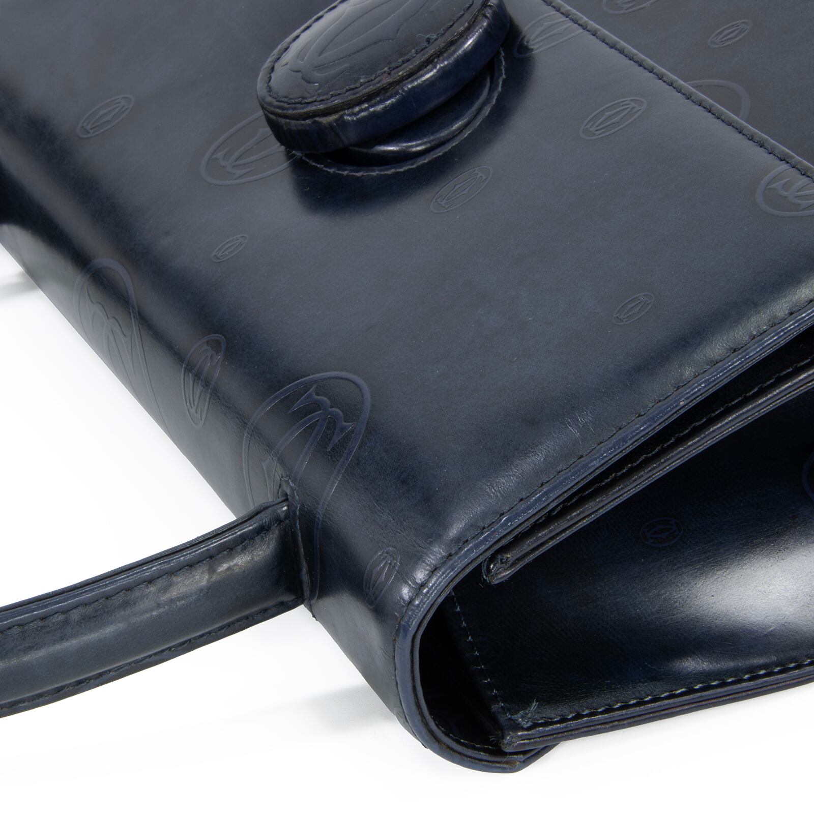 本物 送料無料 カルティエ ハンドバッグ レディース ハッピーバースデー 青 ネイビーブルー ロゴ マーク 本革 レザー 綺麗 鞄 バック A822