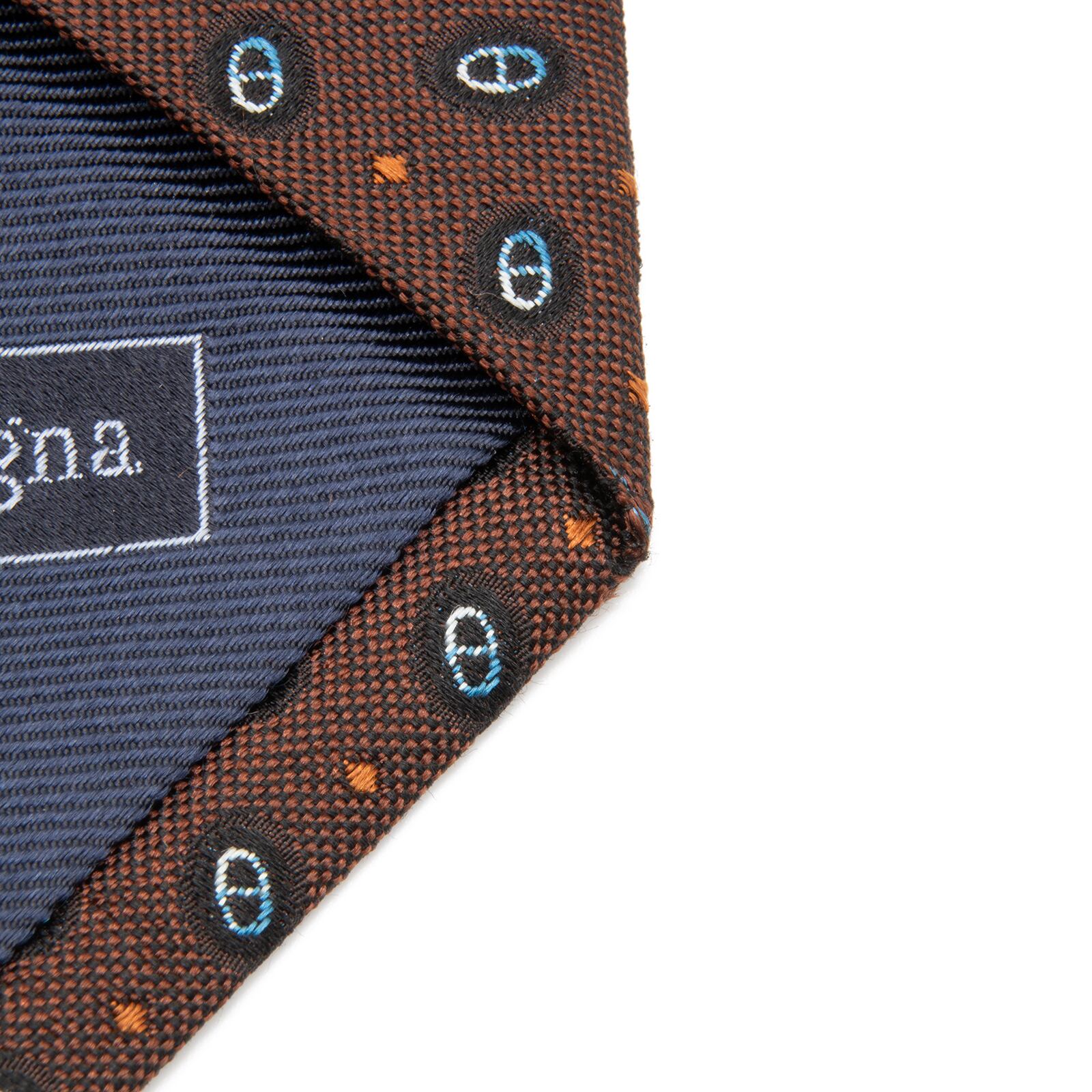 送料無料 ゼニア ネクタイ ジャガードタイ シルク 茶色 ブラウン 黒 水色 ビジネス 珍しい 錨鎖 点 ドット ブランド イタリア製 綺麗 N502