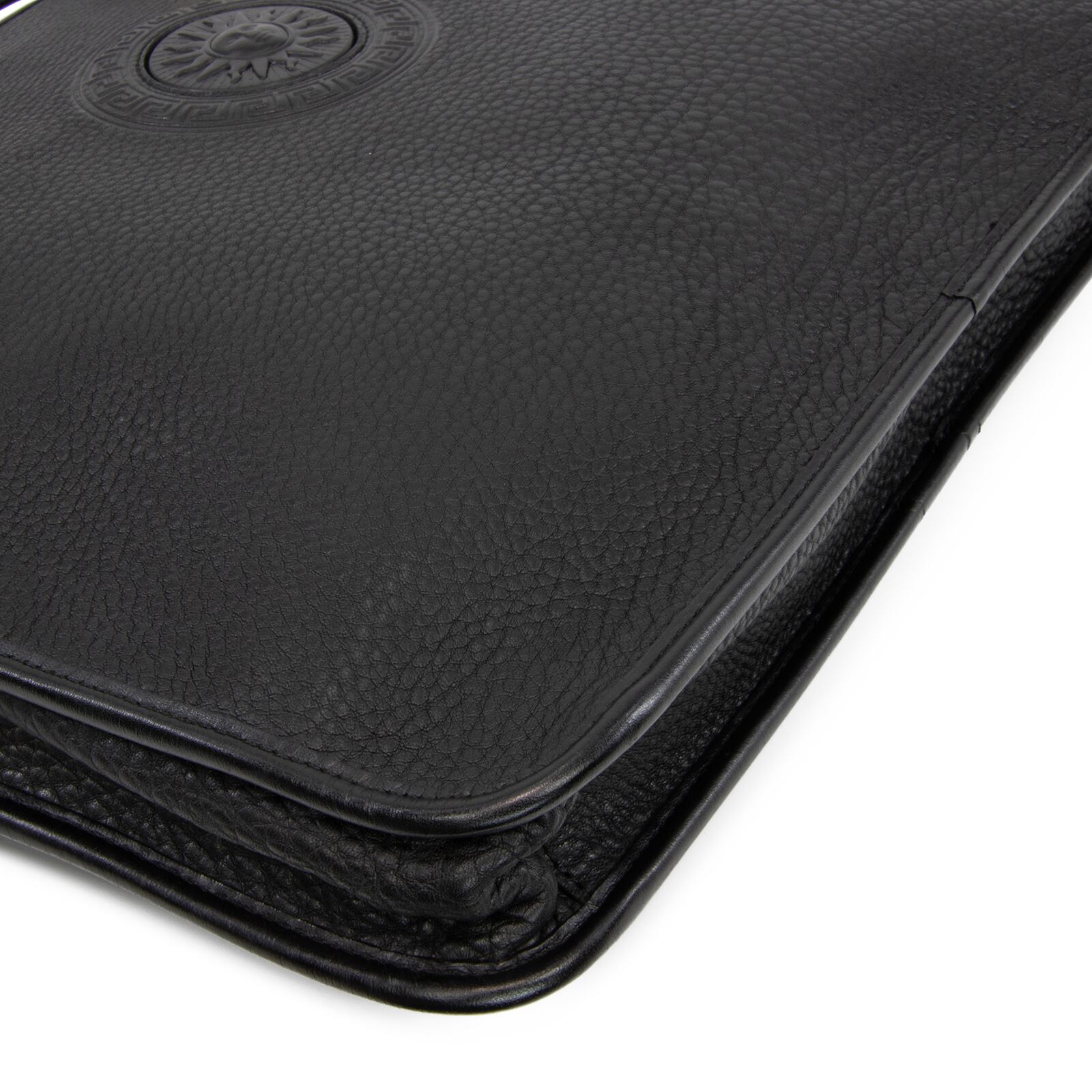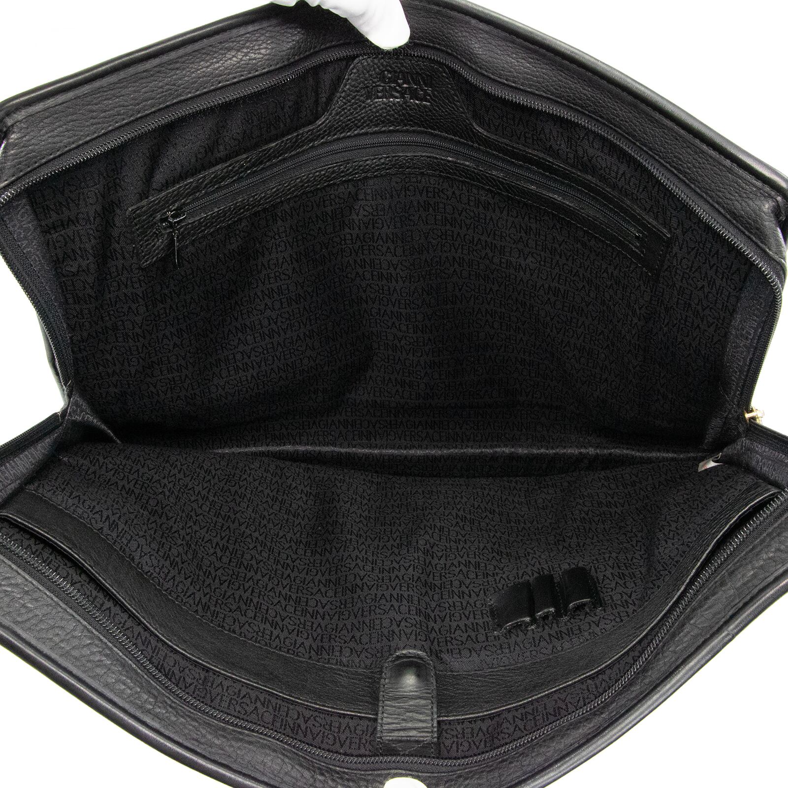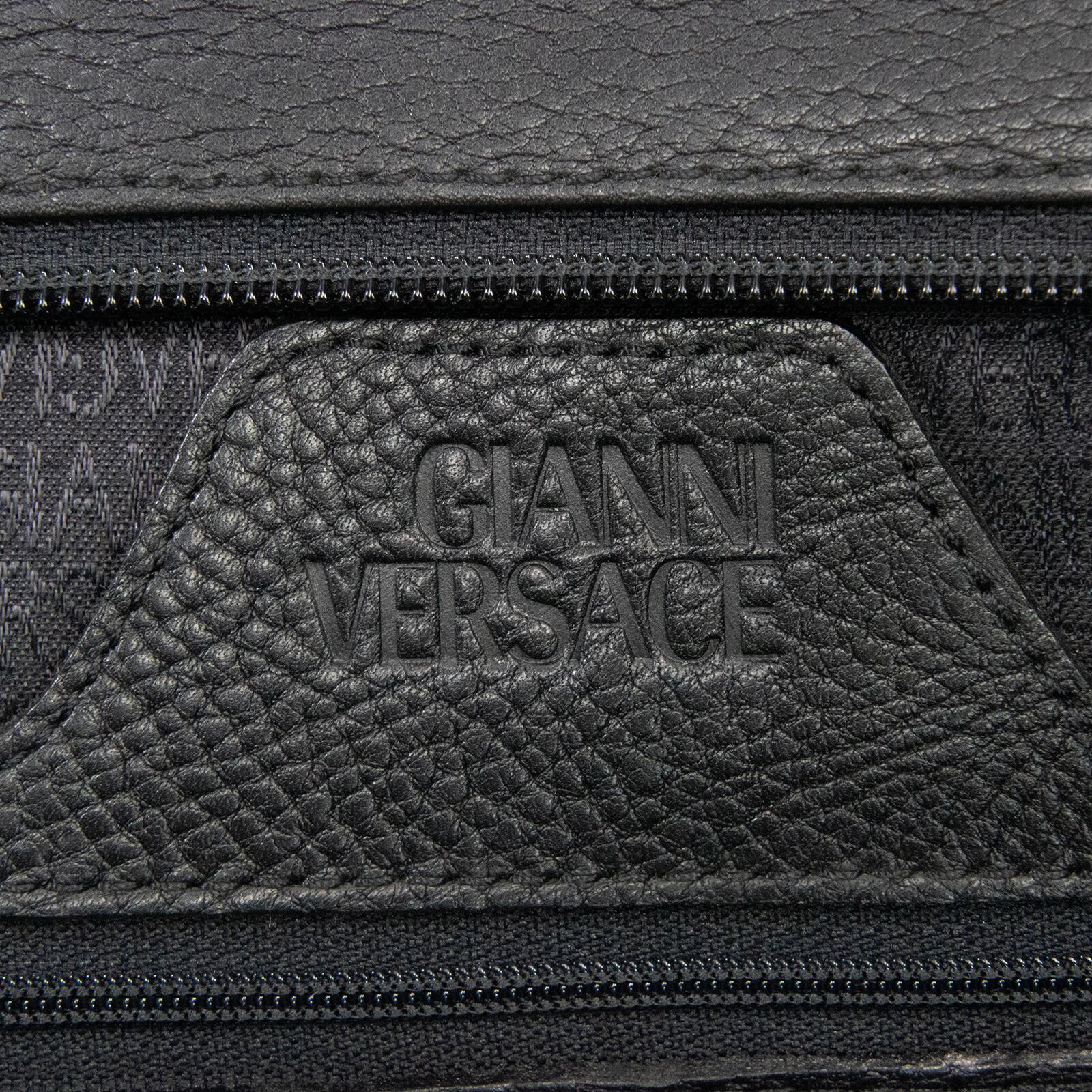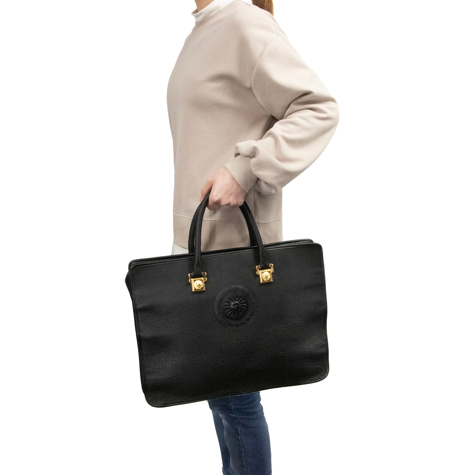 本物 送料無料 ジャンニヴェルサーチェ ハンドバッグ メンズ サンバースト 黒 A4対応 ヴィンテージ 太陽 マーク 本革 綺麗 鞄 バック A828