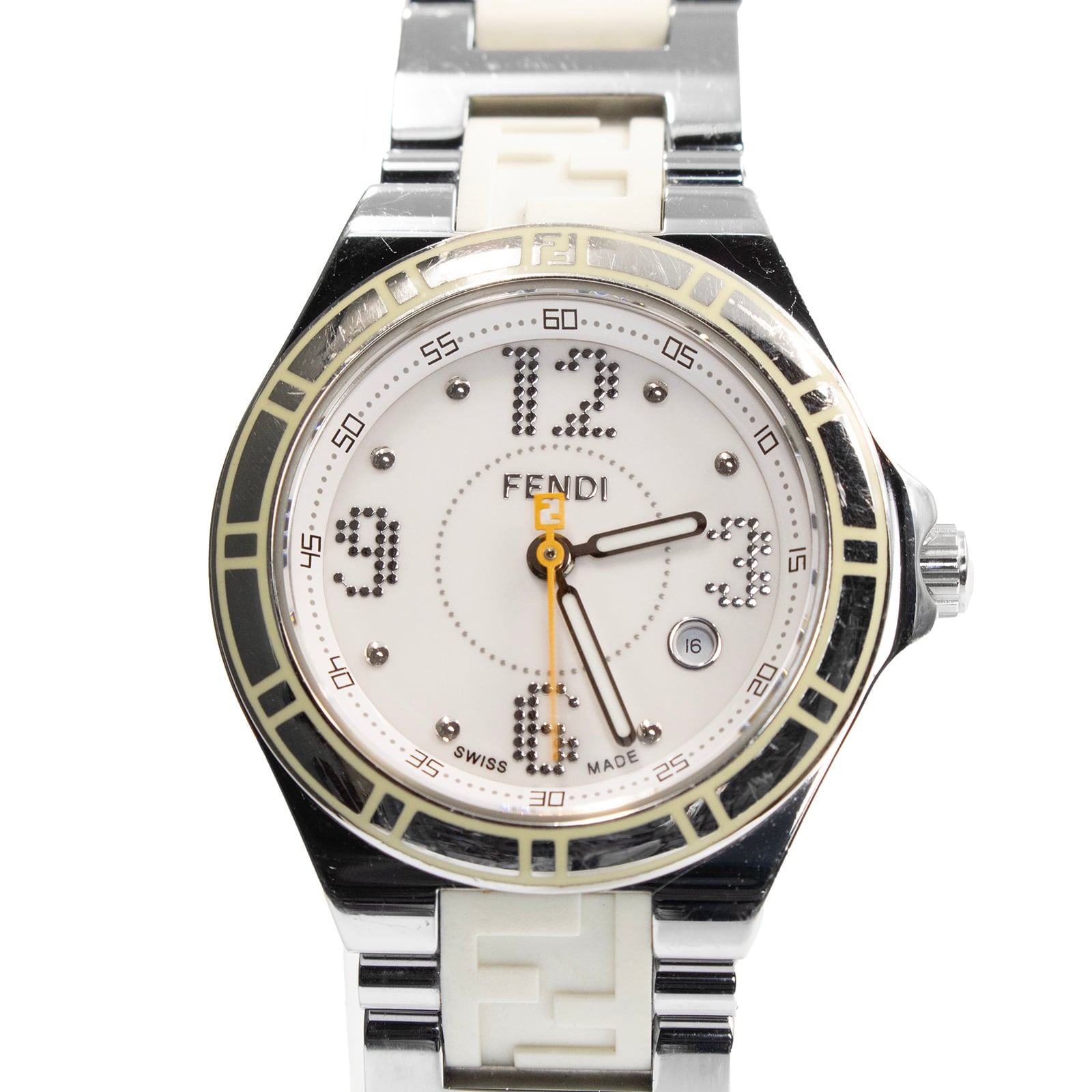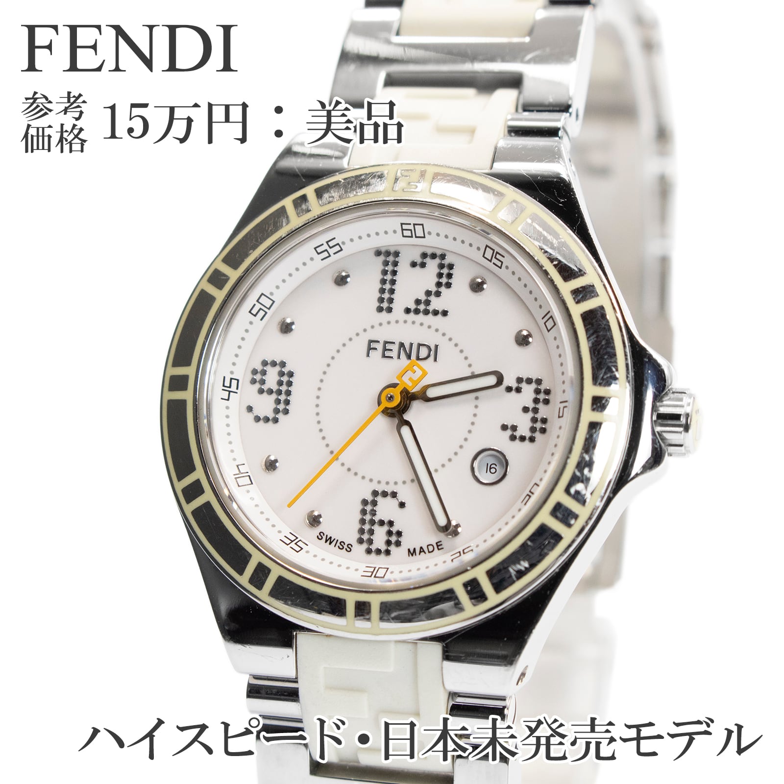 送料無料 フェンディ 腕時計 クォーツ レディース ハイスピード 4600L 白 アイボリー クロノグラフ 珍しい 目立つ FFロゴ マーク 綺麗 X154