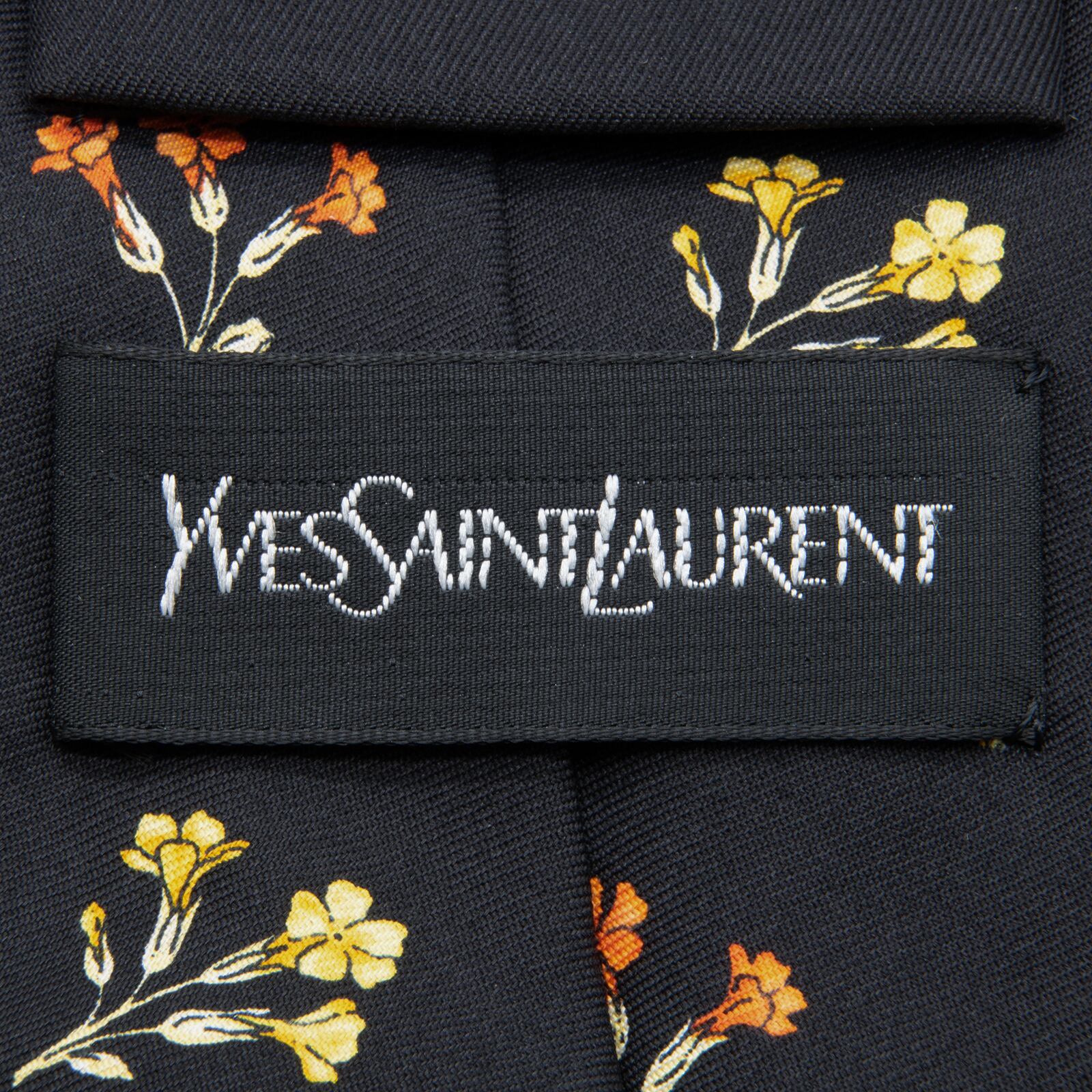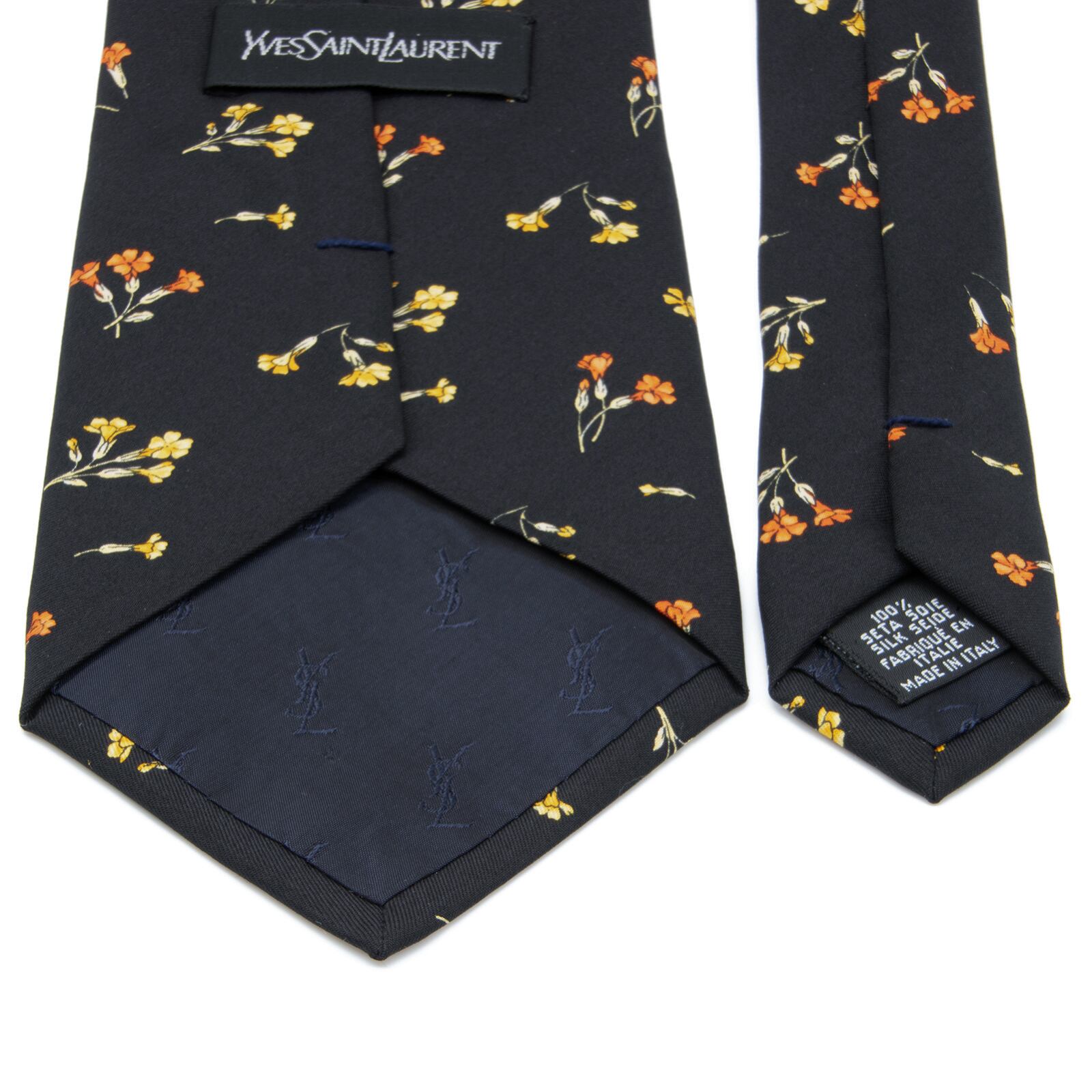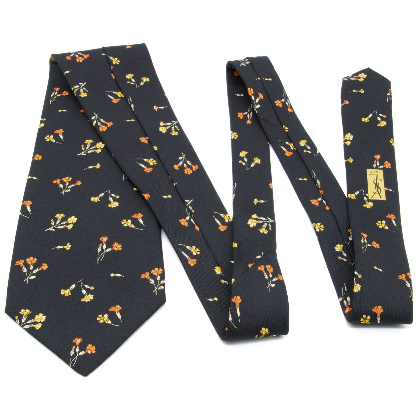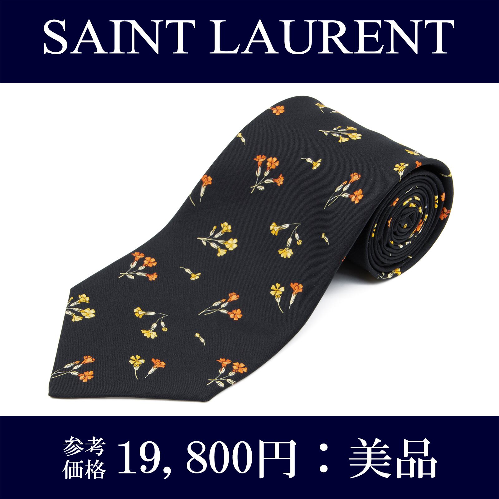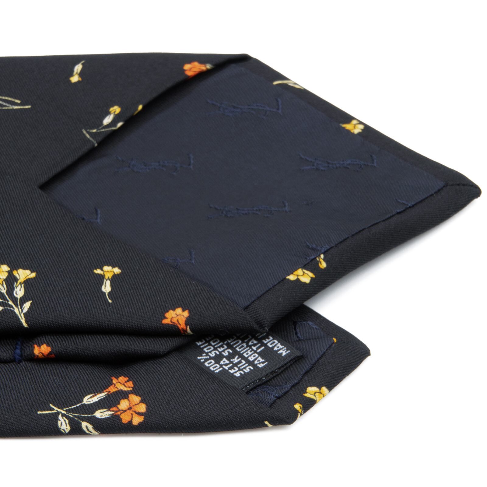 送料無料 サンローラン ネクタイ シルク 黒 ブラック 黄色 橙 ビジネス 人気 花 フラワー シンプル ブランド 珍しい イタリア製 綺麗 N353