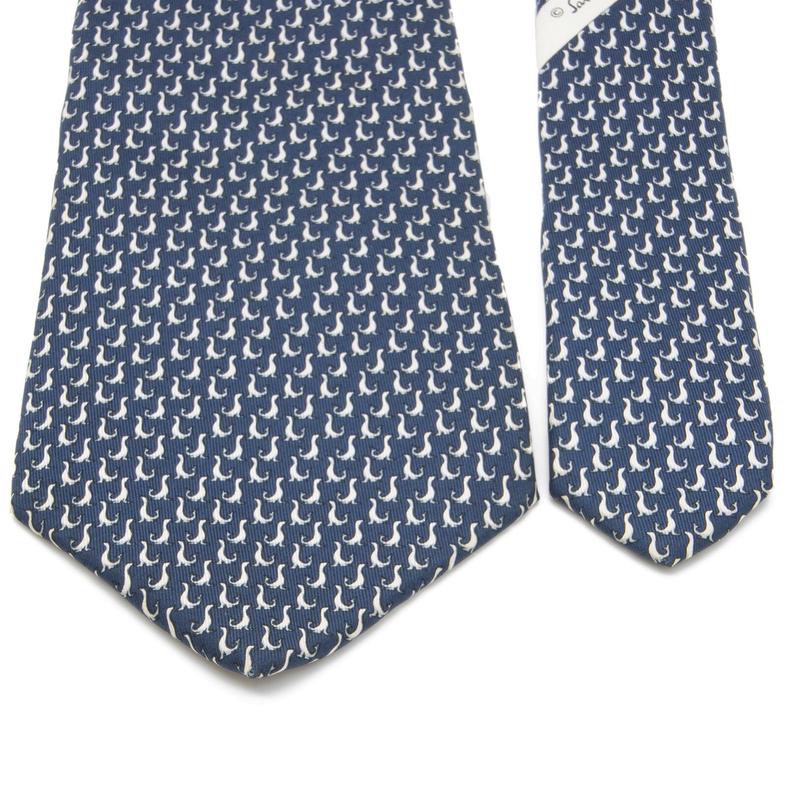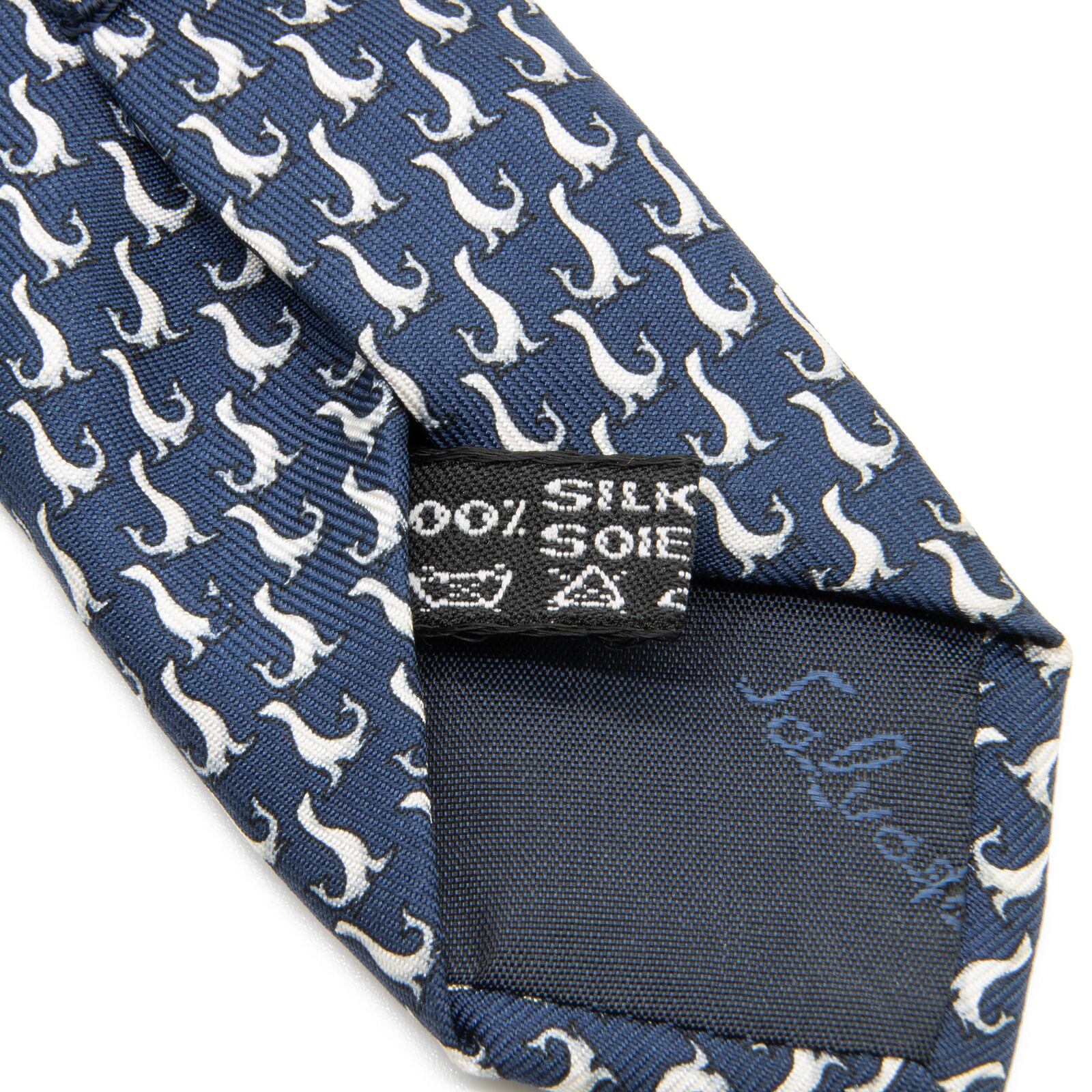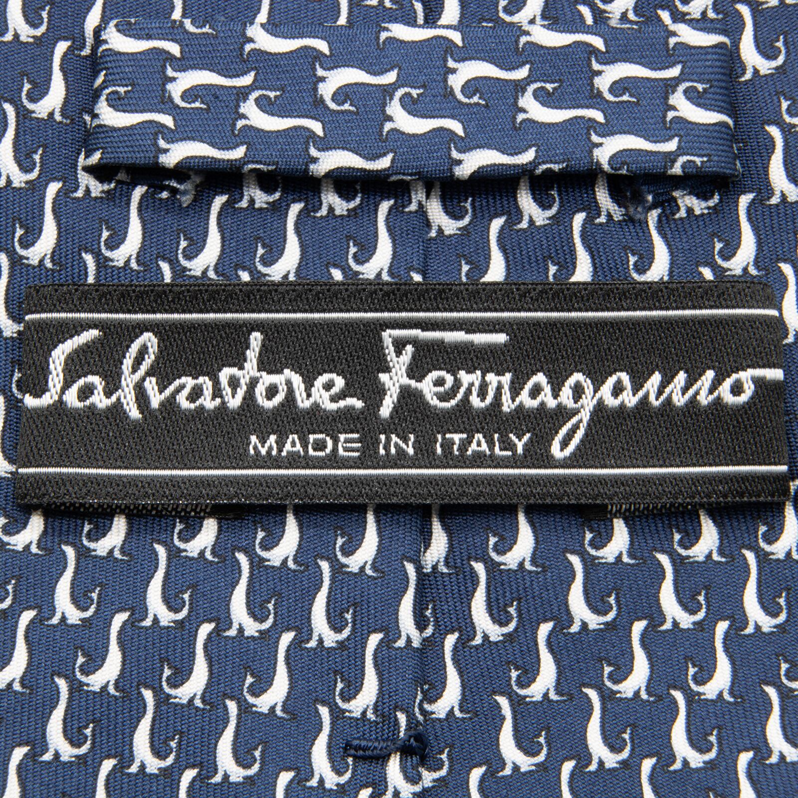 送料無料 フェラガモ ネクタイ シルク 青 ネイビーブルー 白 珍しい 動物 アニマル アシカ 総柄 かわいい ブランド イタリア製 綺麗 N370