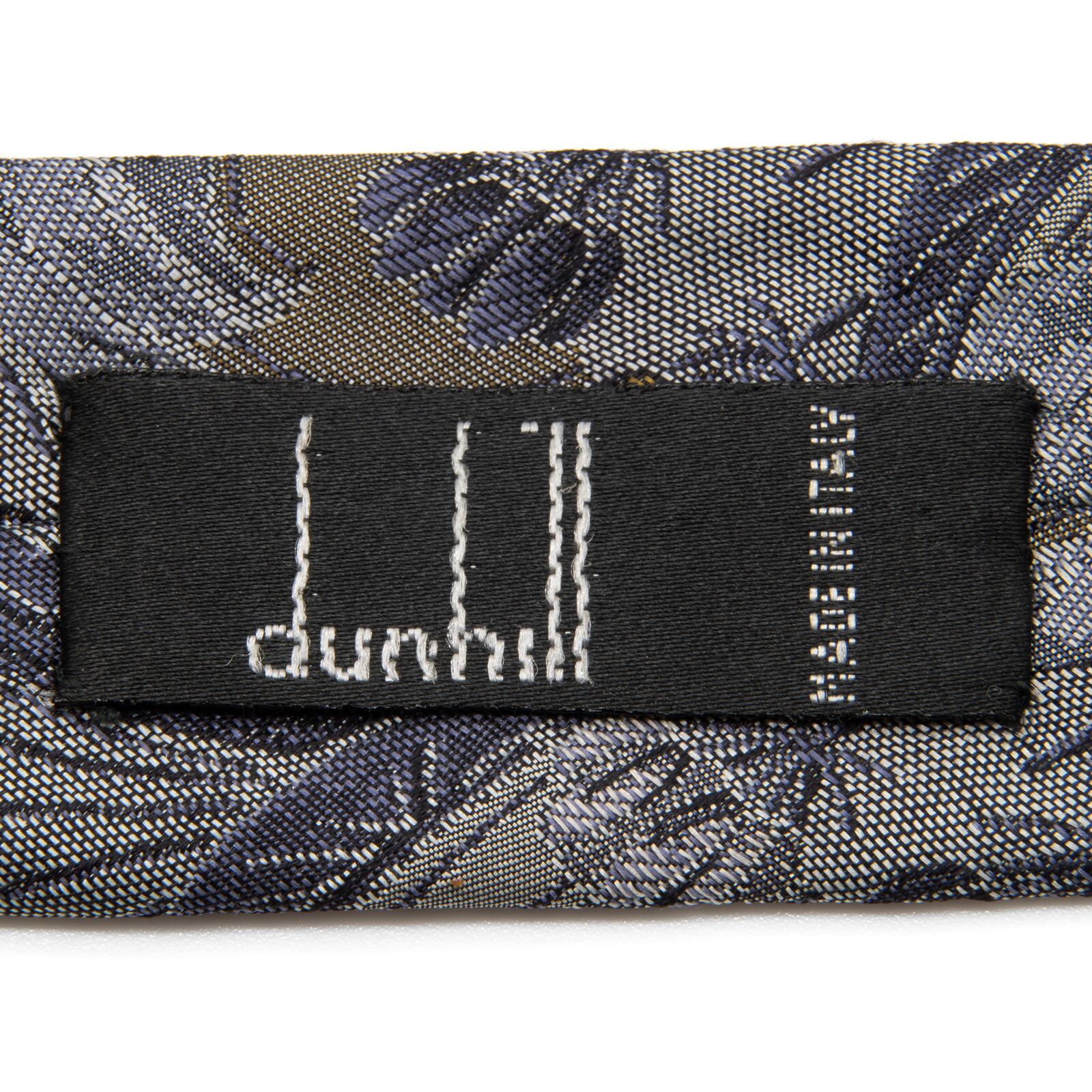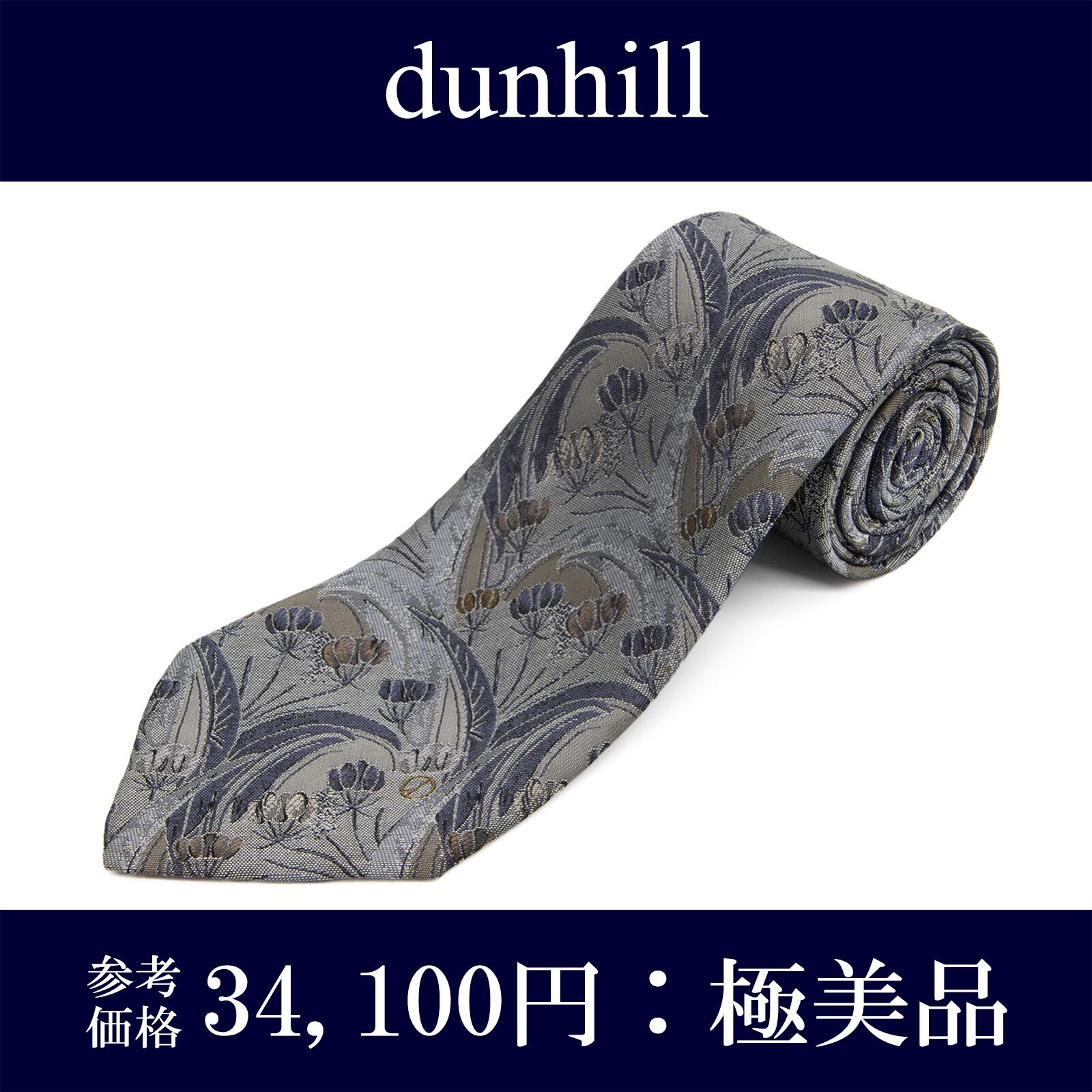 送料無料 ダンヒル ネクタイ レギュラータイ ジャガードタイ シルク グレー 青 茶色 花 草 フラワー ロゴ マーク ブランド イタリア製 N522