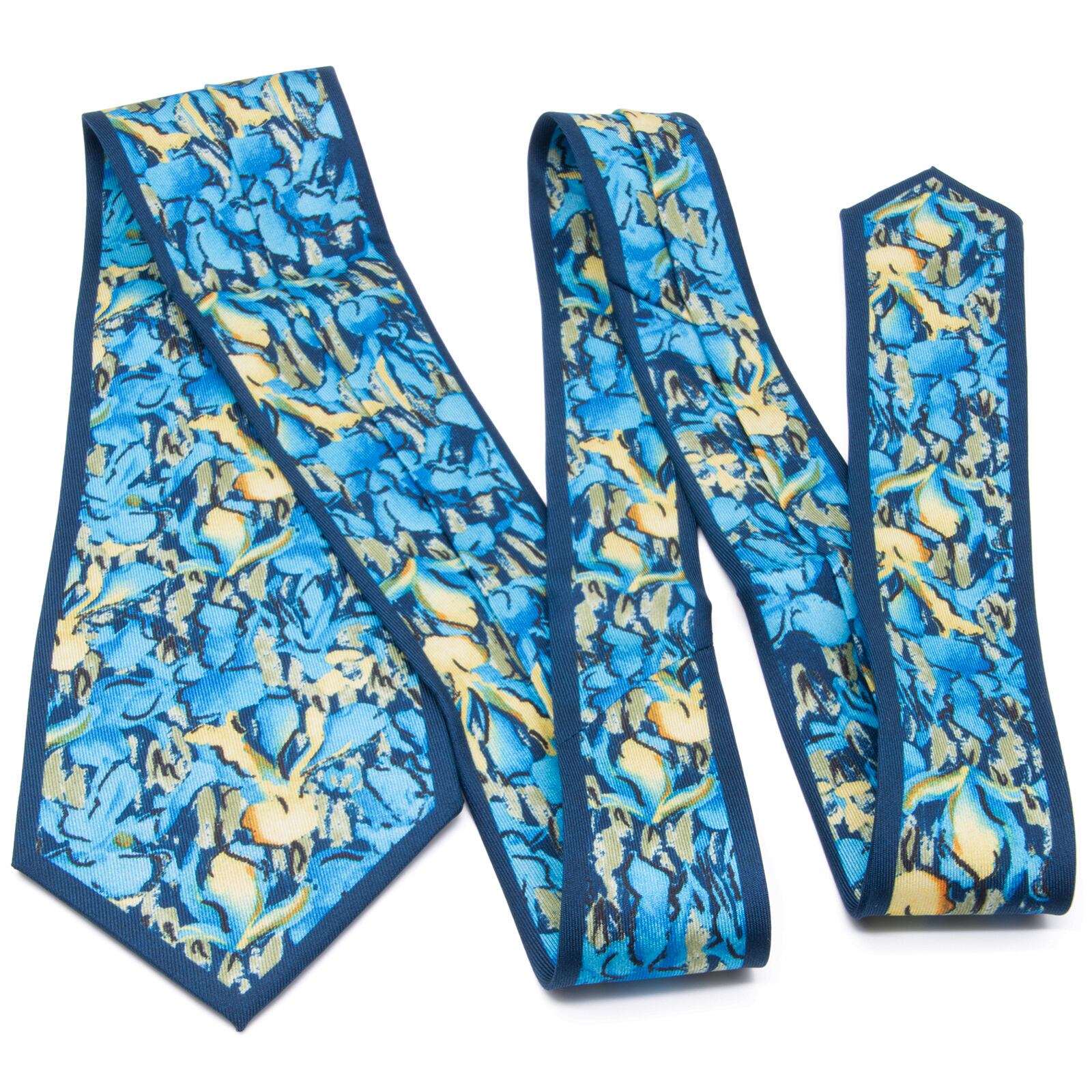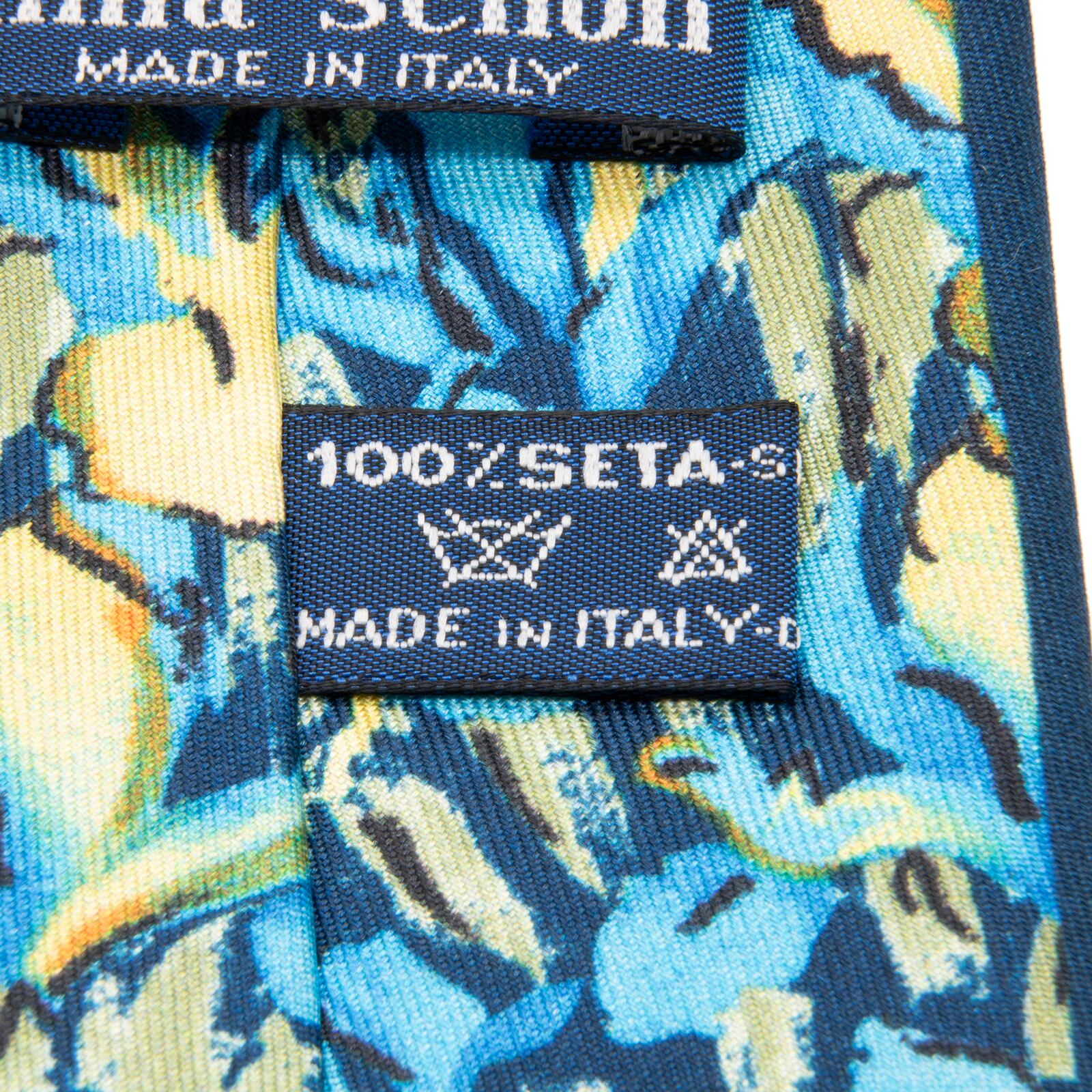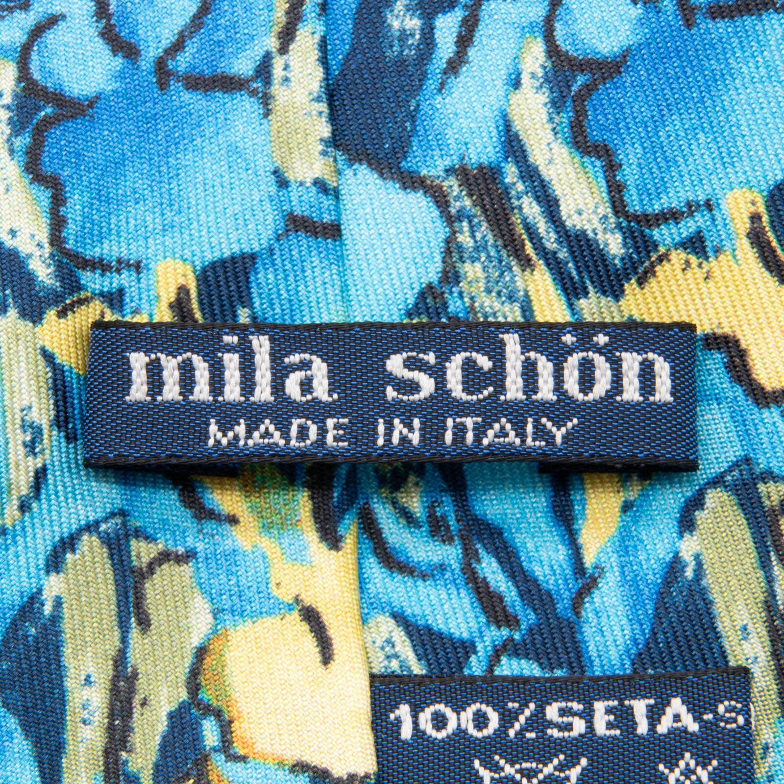 送料無料 ミラショーン ネクタイ 新品 シルク 青 ネイビーブルー 水色 黄色 ブランド 珍しい 花 フラワー おしゃれ イタリア製 綺麗 N535