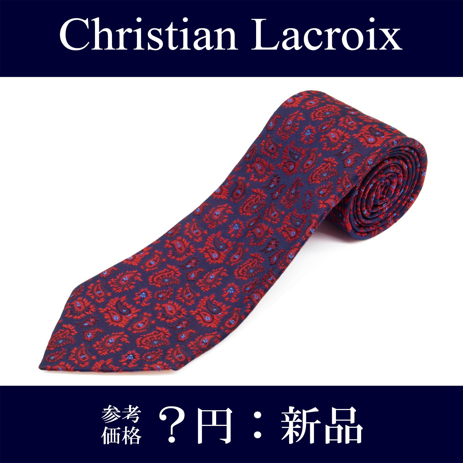 送料無料 クリスチャンラクロワ ネクタイ ジャガードタイ 新品 青 ネイビーブルー 赤 派手 目立つ ペイズリー ブランド イタリア製 N548