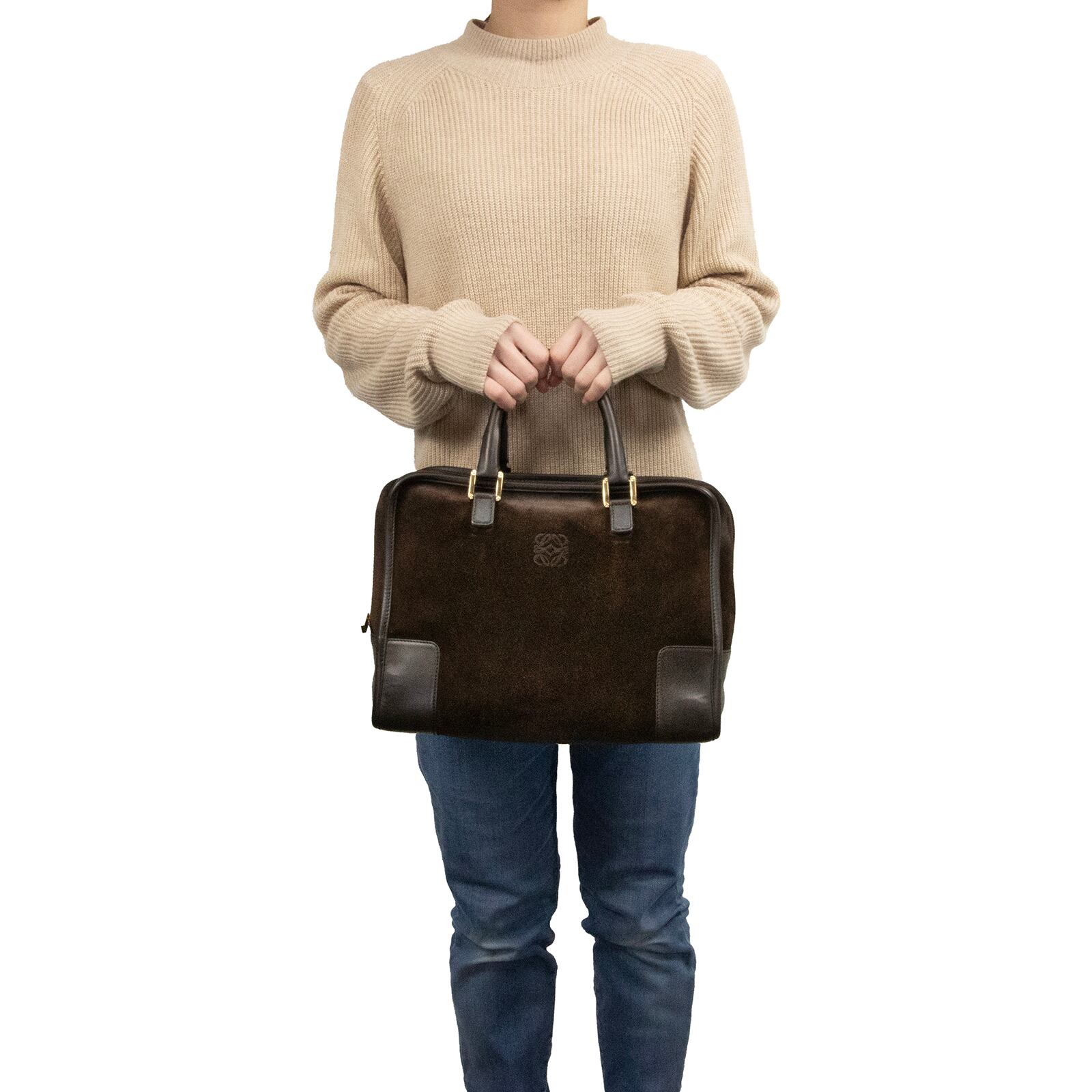 本物 送料無料 ロエベ ハンドバッグ ミニボストンバッグ メンズ レディース アマソナ32 焦げ茶色 ダークブラウン 人気 ロゴ 鞄 バック L175