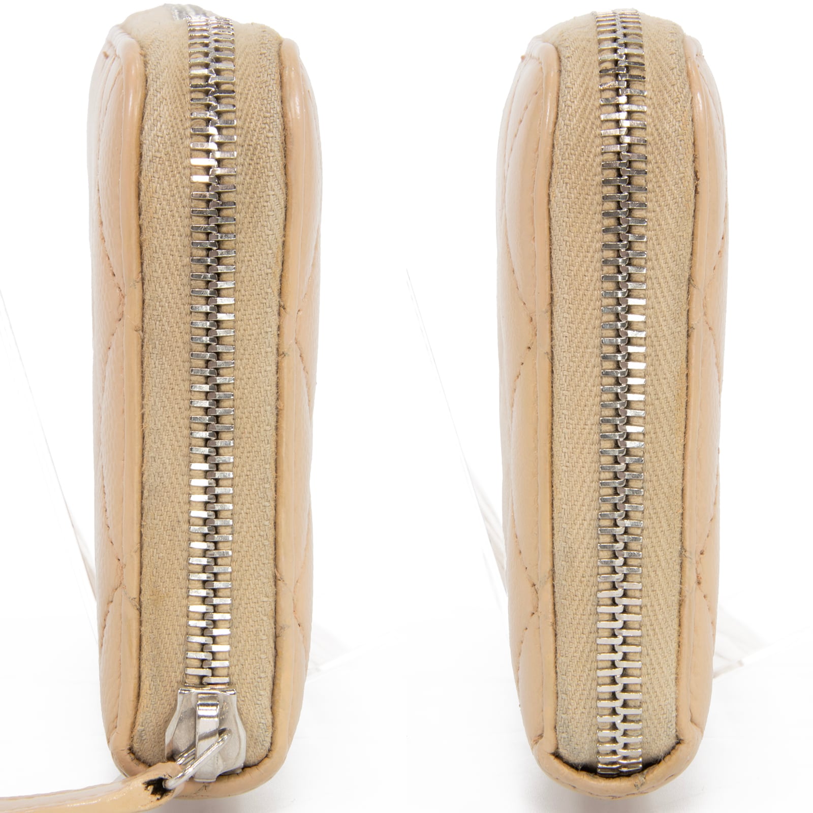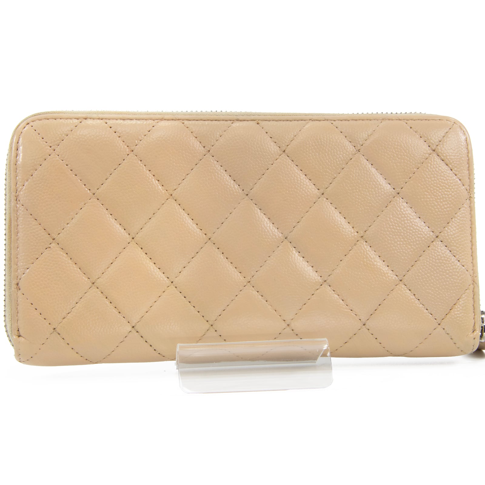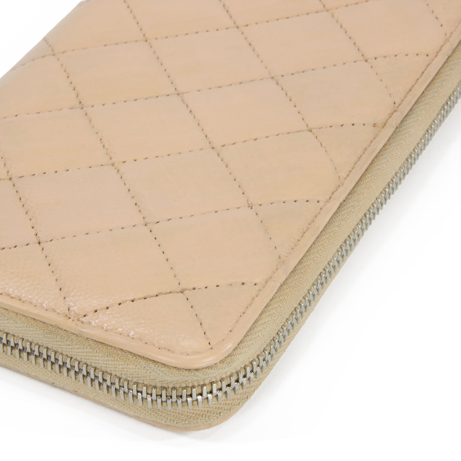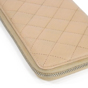 本物 送料無料 シャネル 長財布 ラウンドファスナー レディース キャビアスキン マトラッセ 肌色 珍しい CCロゴ マーク 本革 レザー T059