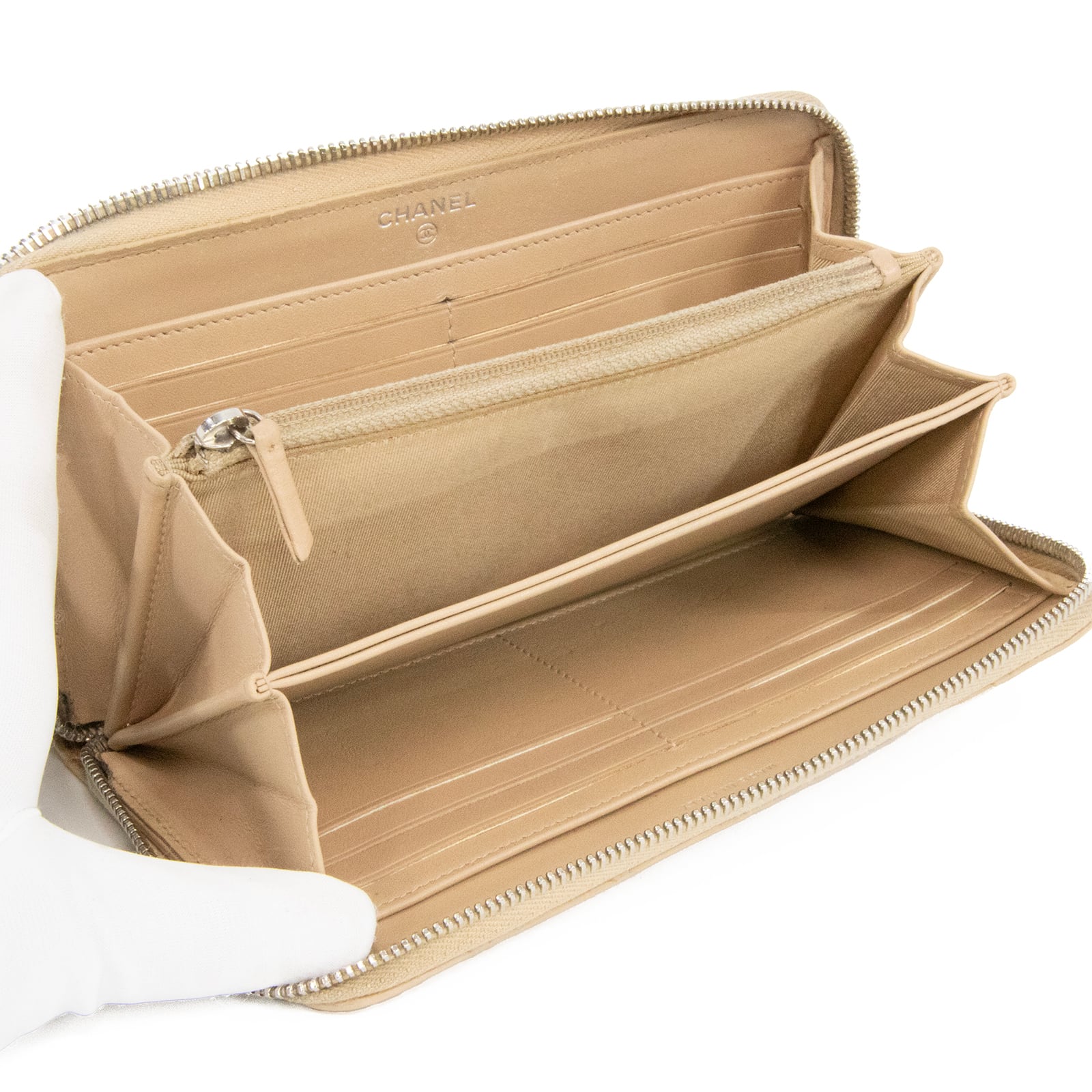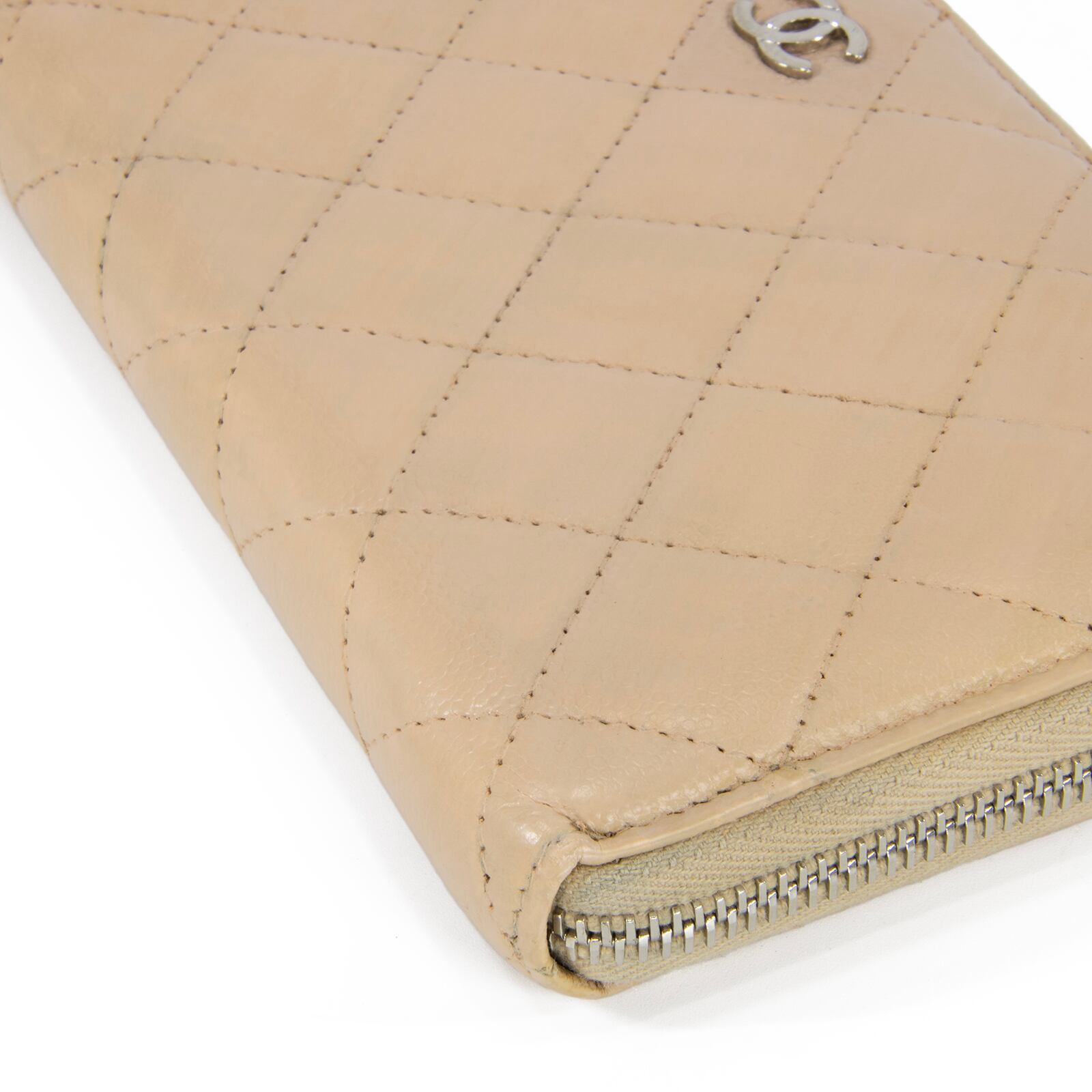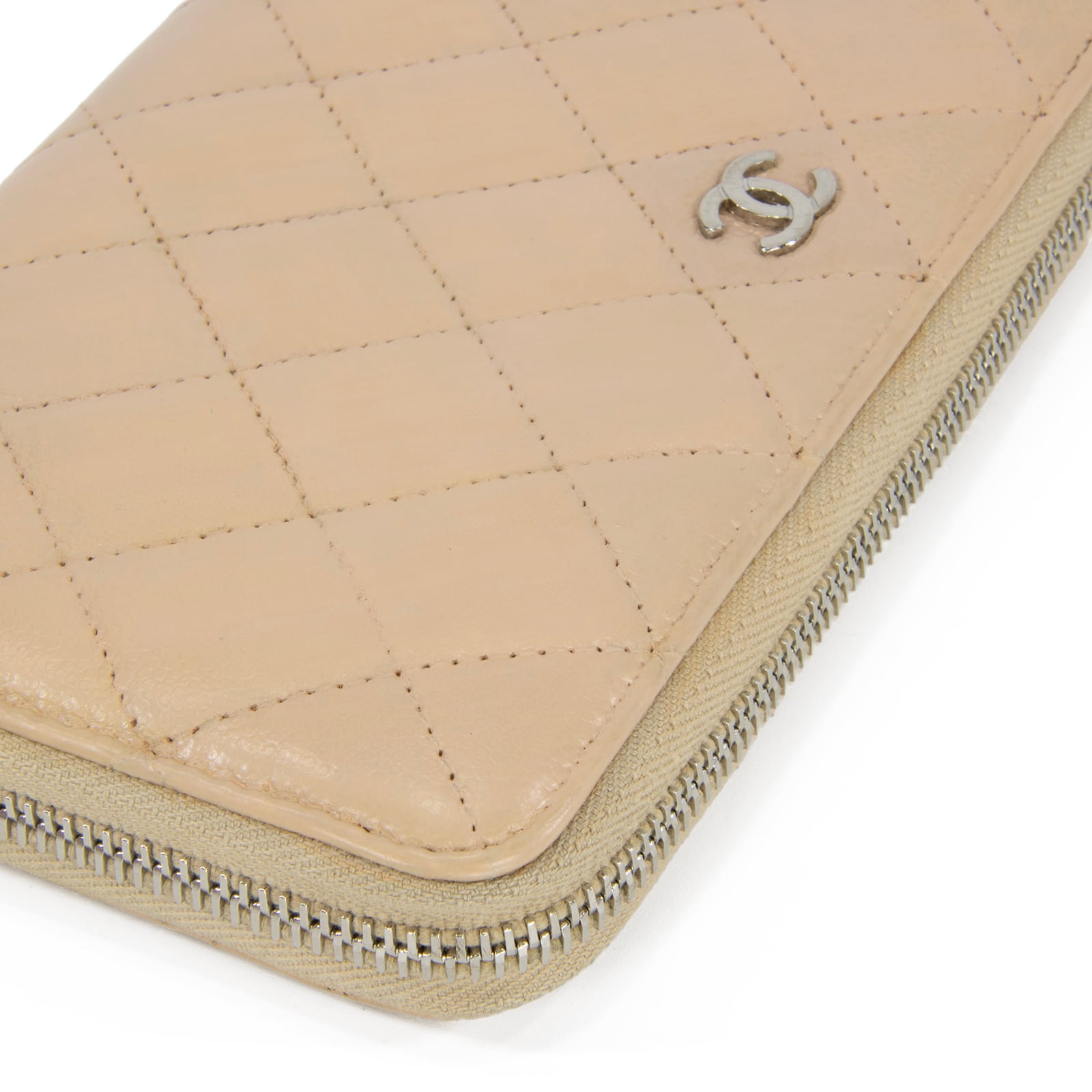 本物 送料無料 シャネル 長財布 ラウンドファスナー レディース キャビアスキン マトラッセ 肌色 珍しい CCロゴ マーク 本革 レザー T059