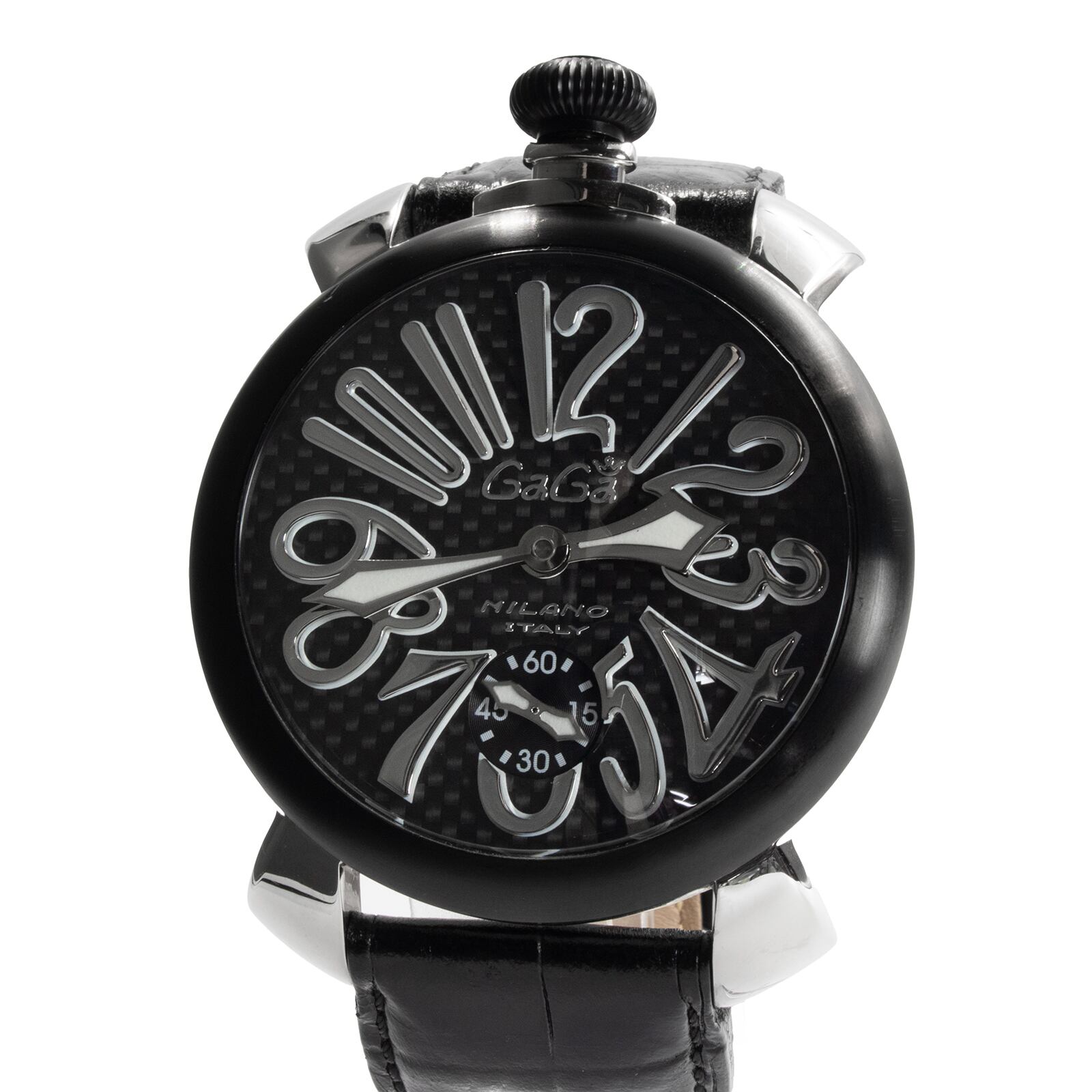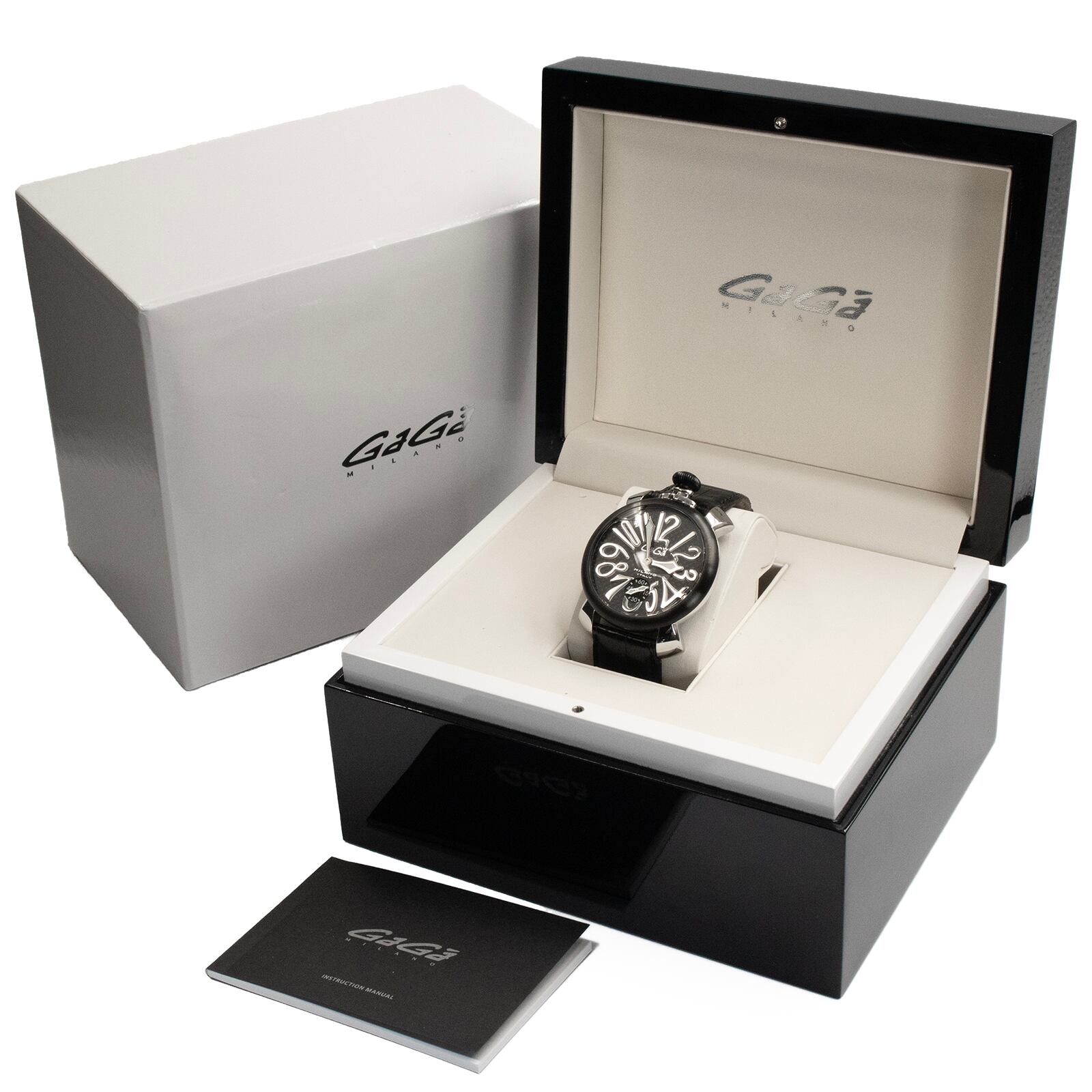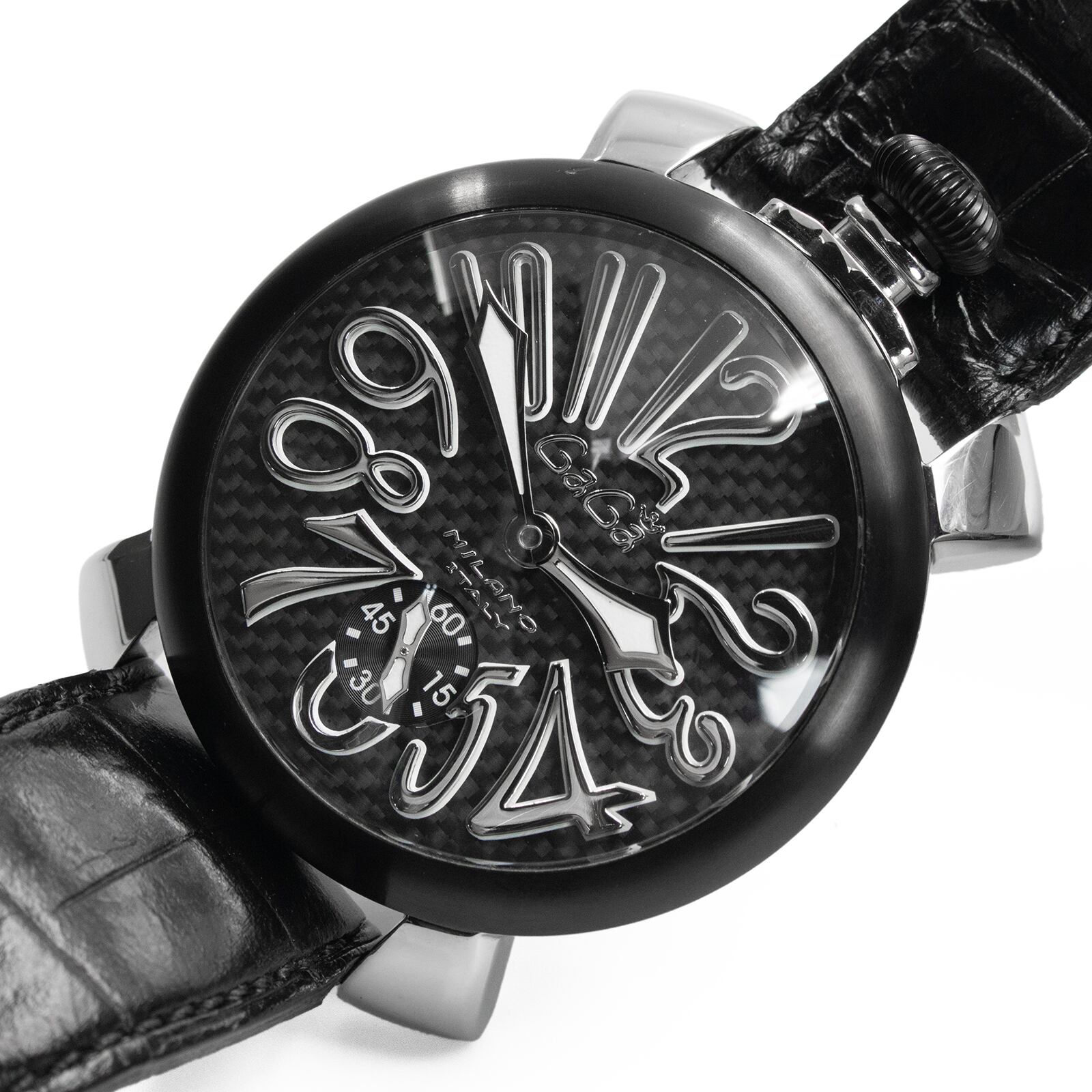 送料無料 ガガミラノ 腕時計 手巻き式 メンズ マヌアーレ48mm 5013.01S 黒 白 派手 目立つ 裏スケルトン ロゴ 革ベルト レザー 珍しい X166